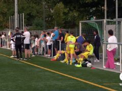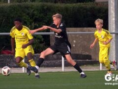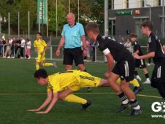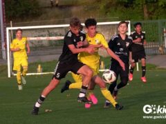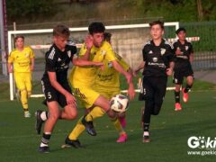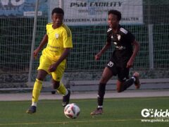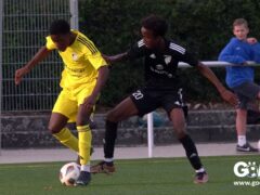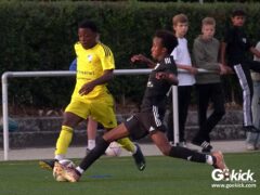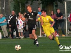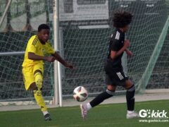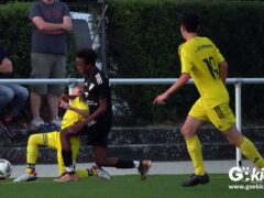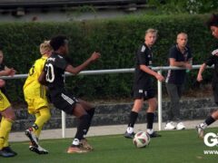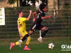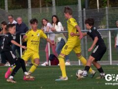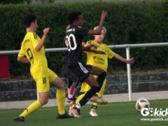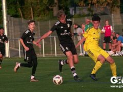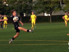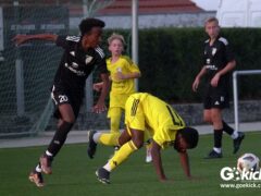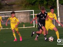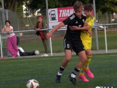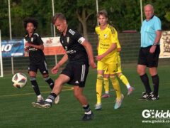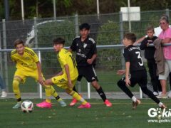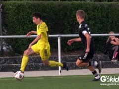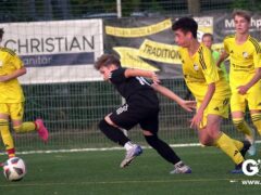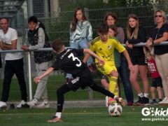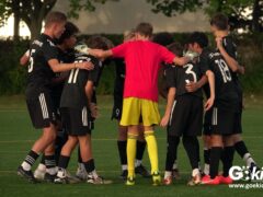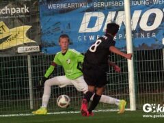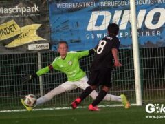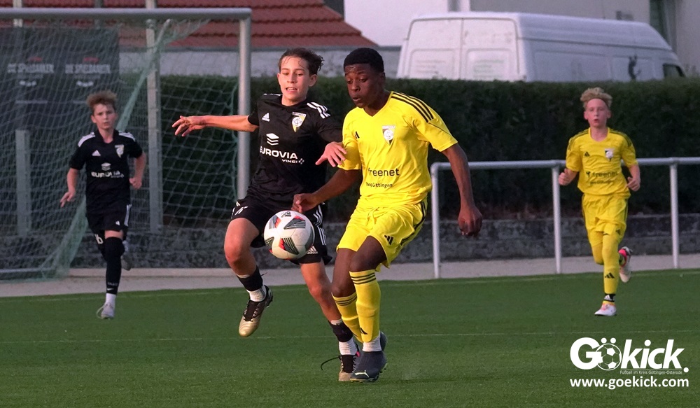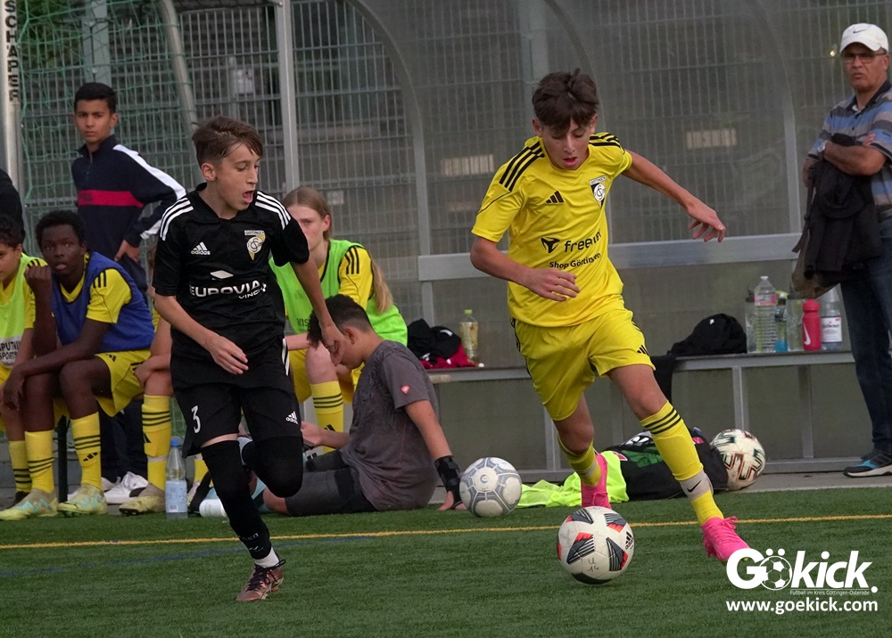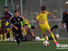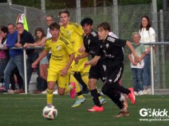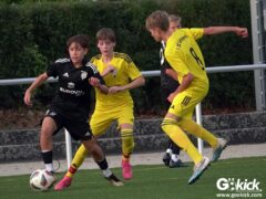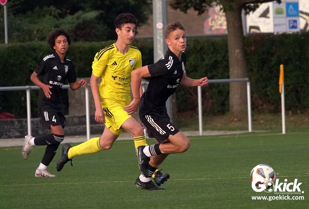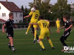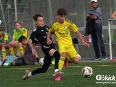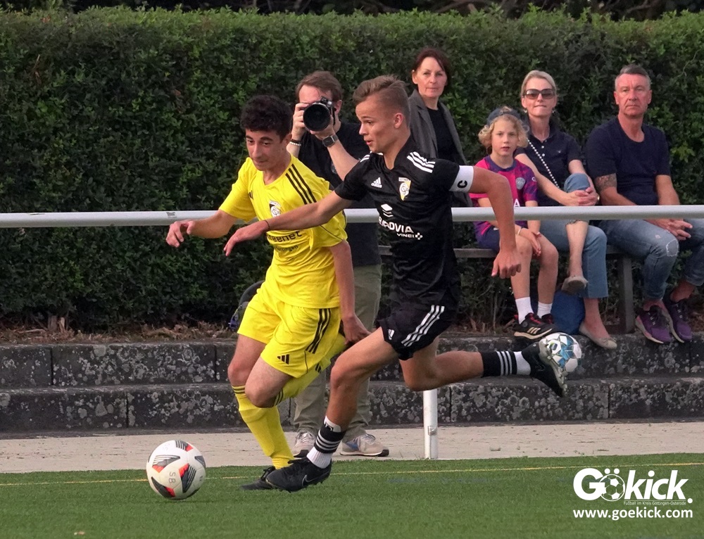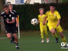 So deutlich das Ergebnis am Ende ausfiel, so kurios war der Verlauf der Partie. Mit dem ersten Angriff erzielte der Regionalliga-Absteiger auch gleich die Führung durch Tom Leonhard Kunze (1.). Anschließend entwickelte sich ein Spiel, in dem der Außenseiter den Favoriten mehr ärgerte, als erwartet. Obwohl die U15 naturgemäß das Spiel bestimmte, war der jüngere Jahrgang vom Trainerduo Dimitrios Avdoulidis und Luca Uhlendorff mit seinen Kontern immer wieder gefährlich. Nach 16 Minuten traf die U14 sogar den Pfosten des Tores der U15. Doch praktisch mit dem Halbzeitpfiff musste der „Gastgeber“ das 0:2 durch Philipp Overkamp schlucken (35.).