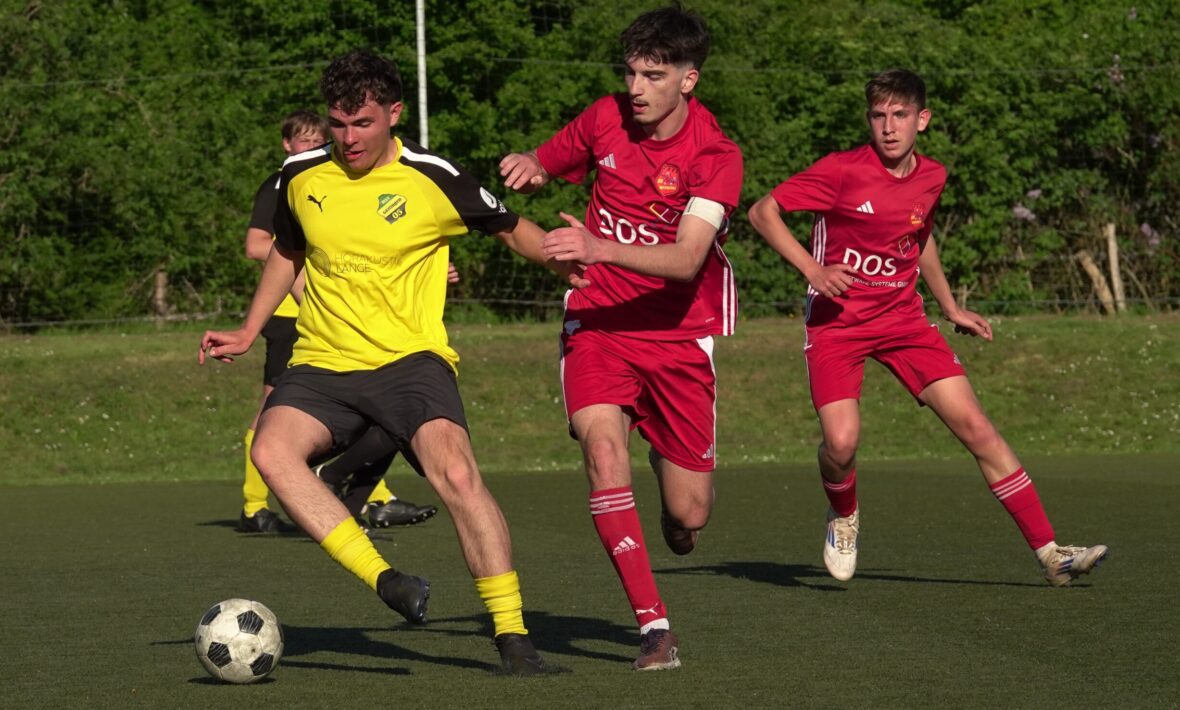 In der A-Jugend-Kreisliga empfing am vergangenen Samstag die JSG SVG/RSV/SCH, ein Zusammenschluss der drei Göttinger Südstadt-Vereine SVG Göttingen, RSV Geismar und SC Hainberg, die SG Werratal zum Punktspiel auf dem Kunstrasenplatz des KRÜGERPARKs am Sandweg. Der Gast war aufgrund der bisherigen Ergebnisse favorisiert. Und er erwies sich auch als das bessere Team und gewann am Ende mit 6:1 (3:0). Die Hausherren bleiben mit 13 Punkten Fünfter der Kreisliga, der Gast bleibt mit acht Punkten mehr auf dem Konto Dritter.