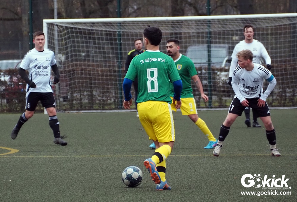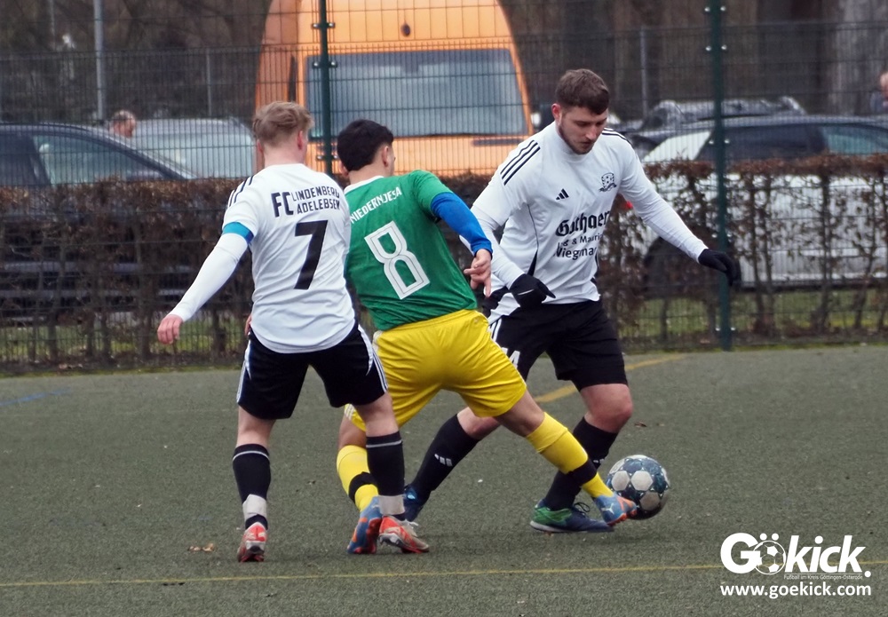 Das dürfte geschmerzt haben! Der verlustpunktfreie Spitzenreiter der 3. Kreisklasse D, die zweite Mannschaft der SG Niedernjesa, kam in einem ersten Testspiel in Vorbereitung auf die Rückrunde arg unter die Räder. Allerdings spielt der Gegner, der FC Lindenberg Adelebsen, gleich zwei Spielklassen höher. Auf dem Kunstrasenplatz des Göttinger Jahnsportparks gewann der FCLA mit 9:4 (7:2). Mann des Tages war in diesem Testspiel der Adelebser Adrian-Seven Scherbarth, dem gleich sechs Treffer für das Team von Trainer Florian Wagenknecht gelangen.