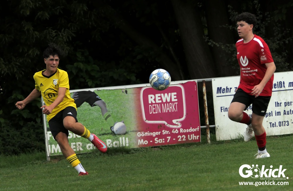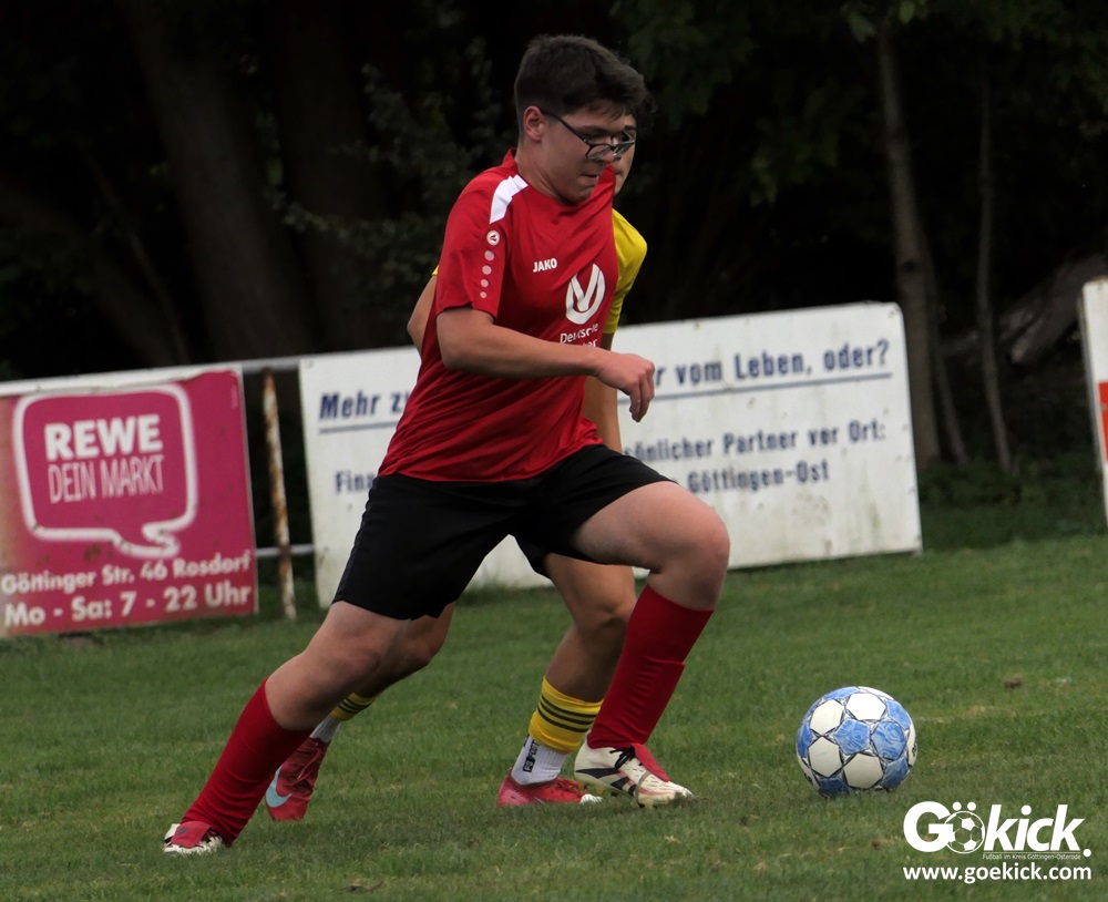 Die Hausherren von Trainer Thomas Binkowski hielten die Partie in der Anfangsphase noch offen. Doch bereits in der 15. Minute brachte Cristiano Romeo Wieclawek die Gäste in Führung. Kurz vor der Pause erhöhte Taylan Danaoglu auf 2:0 und gab der Mannschaft von Trainer Carsten Ilse, der zugleich Vorstandssprecher des SC Rosdorf ist, zusätzliche Sicherheit.