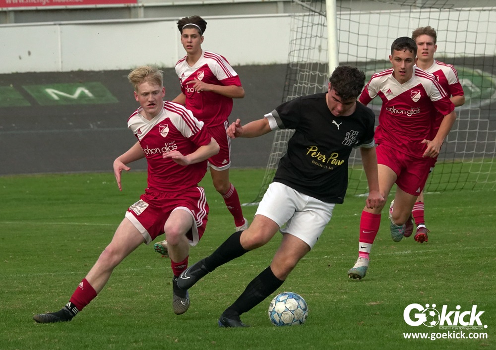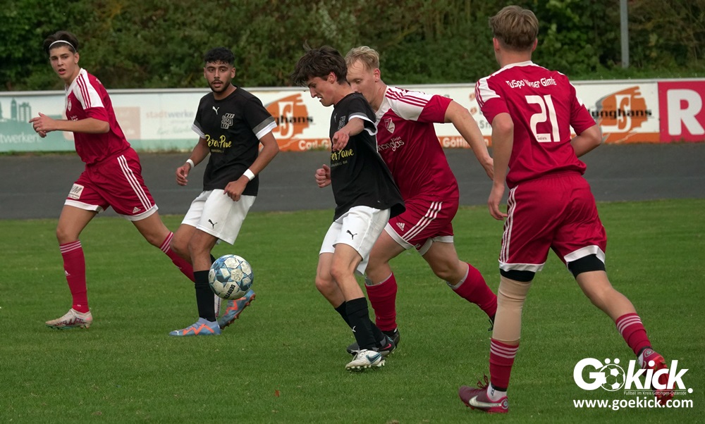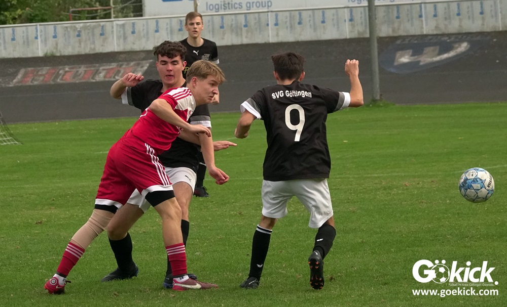 Neben dem gemeinsamen JFV 37 Göttingen betreiben die Vereine SVG Göttingen und RSV Göttingen 05 eine gemeinsame Jugendspielgemeinschaft in der A-Jugend. Diese spielt in der Kreisliga und traf am vergangenen Samstag im KRÜGERPARK am Sandweg auf den noch ungeschlagenen TuSpo Weser Gimte. Im Kreispokal im September standen sich die beiden Team im Kreispokal am Rattwerder in Hann. Münden gegenüber. Damals siegte der TuSpo mit 3:1. Im Punktspiel in Göttingen siegte das Team von Trainer Timm Schrader ebenfalls – diesmal sogar mit 8:2 (4:2). Die JSG SVG/RSV steht nach dem Rückzug der A-Jugend von Sparta Göttingen nach vier Spielen noch ohne einen einzigen Punkt da, während der TuSpo mit 13 Punkten aus fünf Spielen aktuell den zweiten Platz belegt.