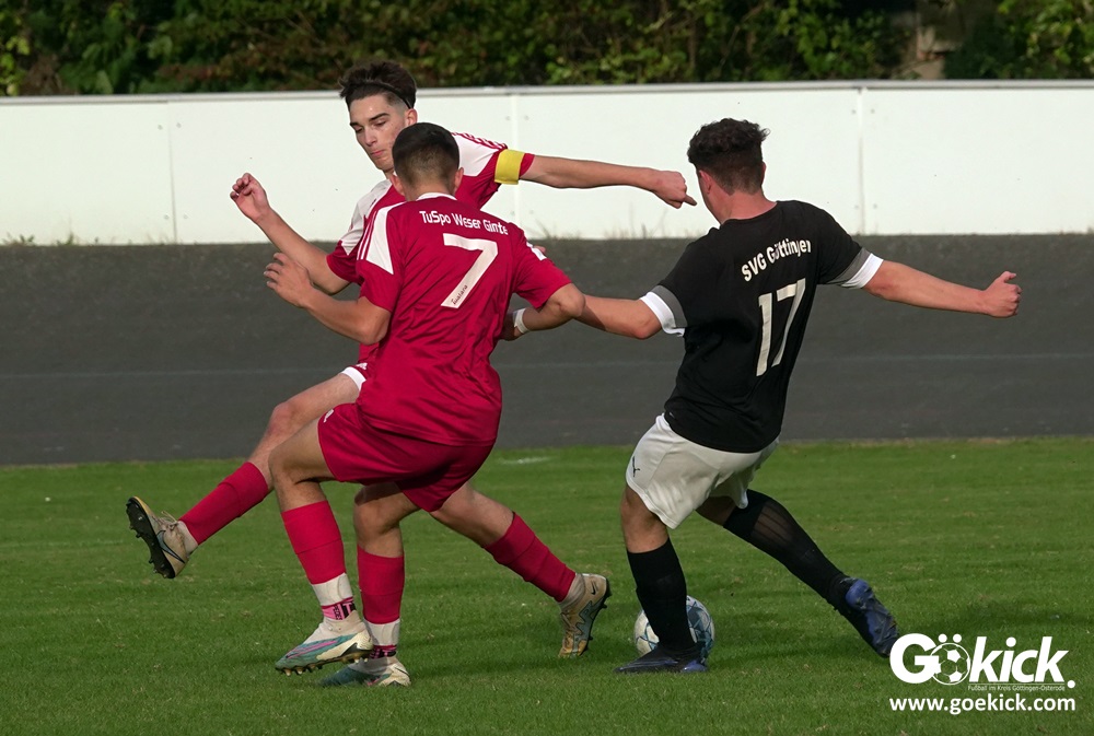 Für den TuSpo Weser Gimte geht es am 28. Oktober mit dem Kreispokalspiel auf eigenem Platz gegen die JSG Eintracht HöhBernSee II weiter. In der Kreisliga kommt es am 4. November auf dem Rattwerder zum Spitzenspiel gegen den Tabellenführer JFV 37 Göttingen II.