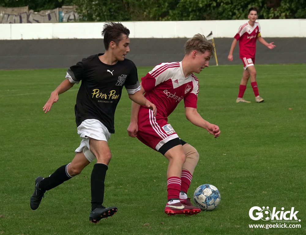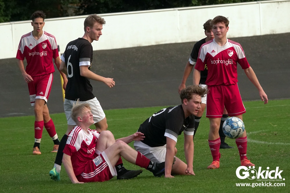 Überraschend ging auf dem Rasen des Sandweg-Stadions aber der Gastgeber in Führung – Tim Niklas Borrmann traf nach sechs Minuten. Doch nur drei Minuten später glich der TuSpo durch Lennart Moor aus. Erstmals in Führung brachte Jason Alexander das Team aus dem Süden der Region in Minute 20. Eine Minute nach der Führung erhöhte Darko Pivac auf 3:1 für den TuSpo. Tim Niklas Borrmann brachte die JSG mit seinem zweiten Treffer in der 41. Minute auf 2:3 heran, doch im Gegenzug musste sein Team das 2:4 durch Benedikt Reichenheim schlucken. Damit ging es in die Halbzeitpause.
