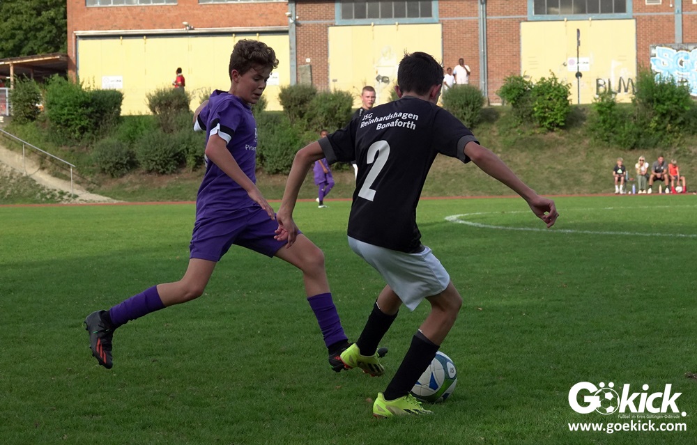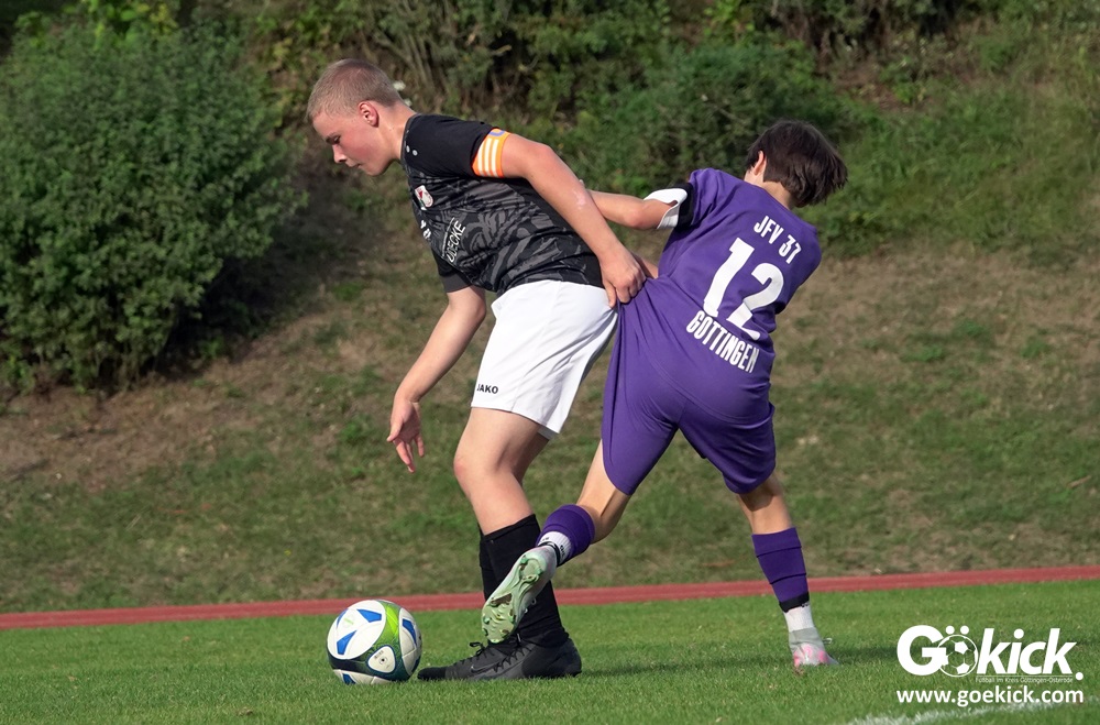 Mit breiter Brust aus dem 3:2-Auftakterfolg in Northeim gestartet, wollte die U14 des JFV 37 Göttingen am Samstag auf den Zietenterrassen nachlegen. Gegner war die JSG Reinhardshagen/Bonaforth, die als frischgebackener Kreismeister und Aufsteiger antrat. Zwar hatte es im Pokal Anfang September an gleicher Stelle ein deutliches 10:0 gegeben, doch diesmal zeigte sich die Mannschaft von Trainer Mario Träbing mit deutlich mehr Personal und Widerstandskraft.