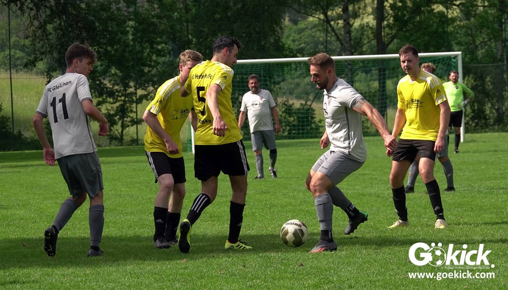 Im zweiten Abschnitt wechselte der Gast, der mit Alt-Herren-Spieler Uwe Fladung als Libero antrat, mit Pauline Frank und Jil Mönkmöller erneut zwei Spielerinnen seiner Kreisliga-Frauen-Mannschaft ein. Doch sie mussten mit zusehen, wie Maximilian Witting in der 55. Minute das 2:0 für den Gastgeber erzielte. Nur zwei Minuten später schaffte Janis Neumann mit dem 3:0 eine Vorentscheidung. Lasse Eberwien gelang nach74 Minuten das 4:0. Ted-Frank Hoffmann war in der 78. Minute der Schütze des 5:0. Einen besonderen Leckerbissen hielt die Partie dann noch bereit: Der in Herberhausen lebende und langjährige Spieler des TSV Herberhausen, Dirk Beuße, der inzwischen für die Alte-Herren-Mannschaft des FC Gleichen spielt, köpfte gegen seinen alten Verein das Ehrentor für die FC Gleichen-Reserve in der Nachspielzeit. Am Ende siegte die SG Herberhausen/Waake/Roringen verdient mit 5:1.