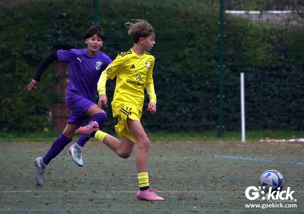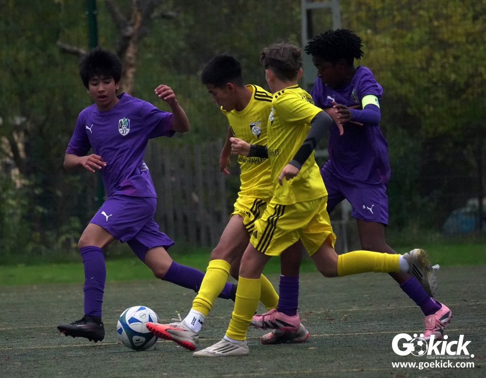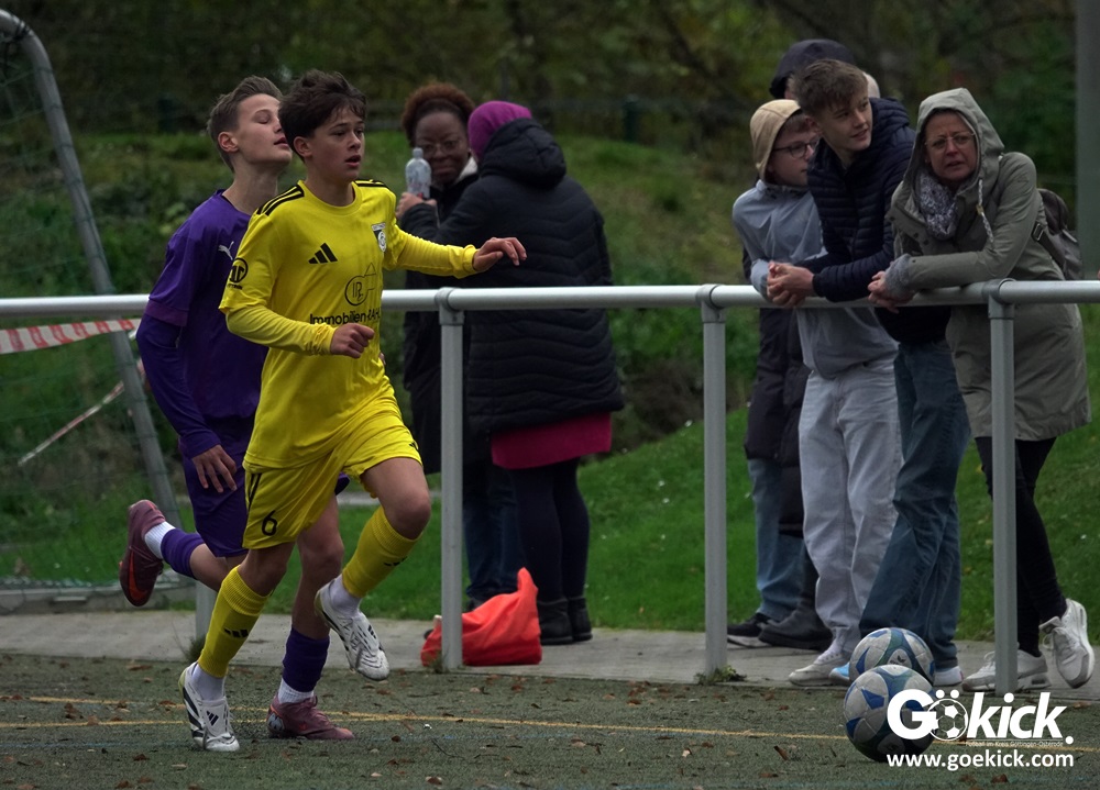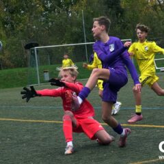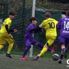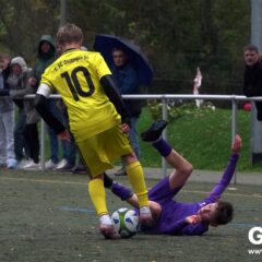 Die Reaktion der Mannschaft vom Trainerteam Pepe Huenges, André Kaufmann und Yannick Kallenberg ließ nicht lange auf sich warten. Der JFV 37 übernahm zunehmend die Kontrolle, kam über die Flügel zu mehreren gefährlichen Situationen und drängte auf den Ausgleich. Doch trotz eines leichten Chancenübergewichts blieb der erlösende Treffer bis zur Pause aus – der Gast nahm eine etwas glückliche 1:0-Führung mit in die Kabine.