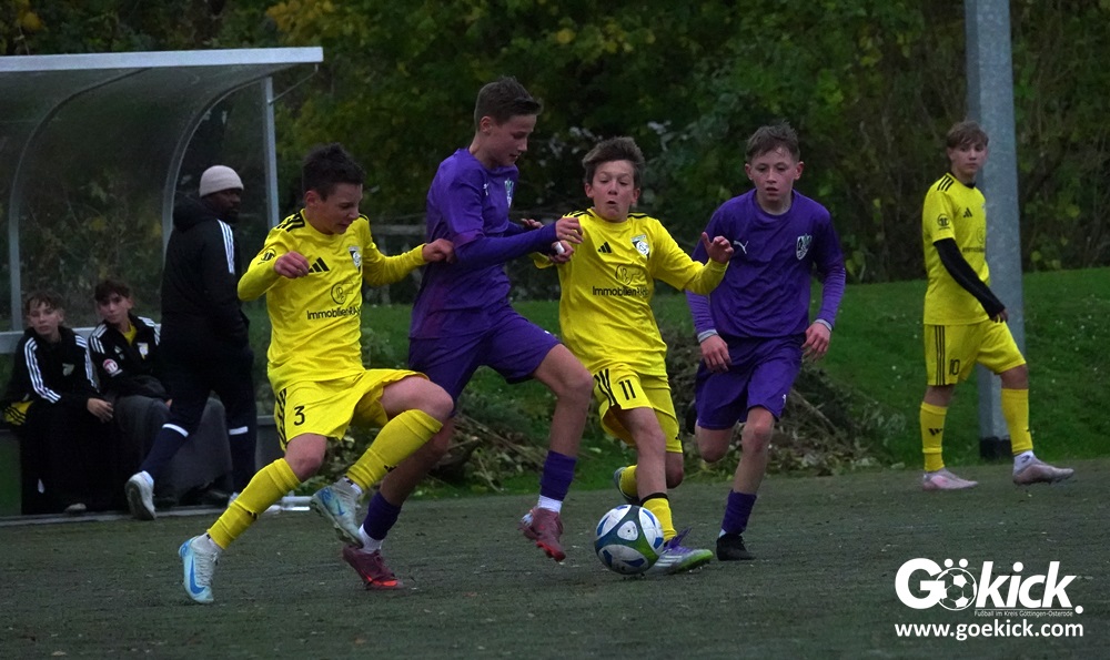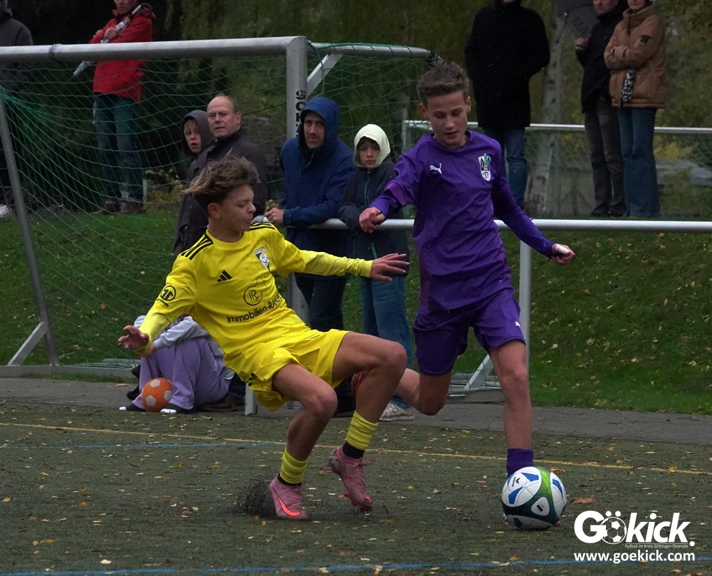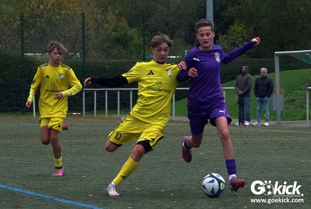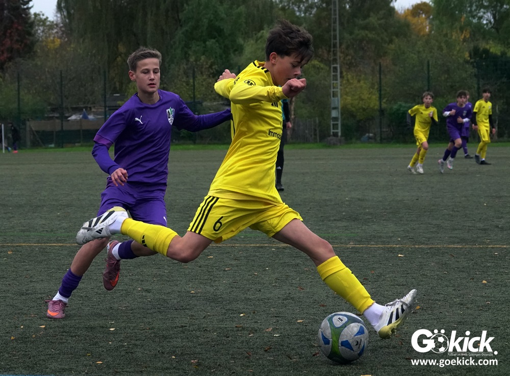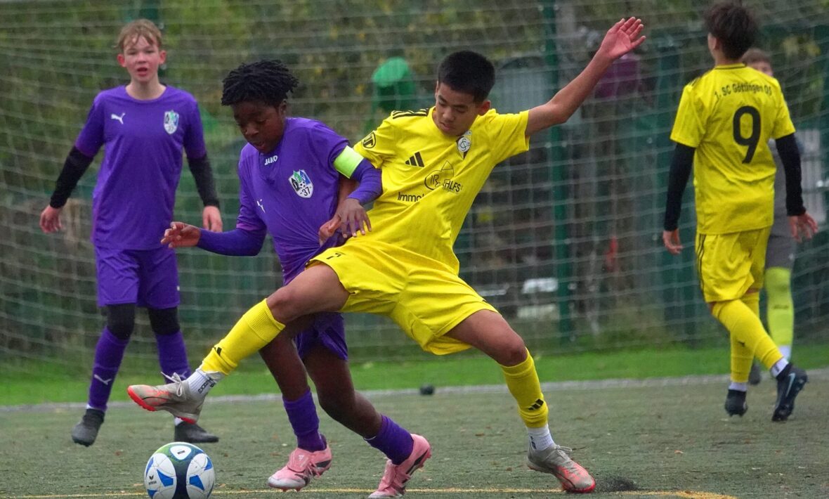 Wenn sich zwei gleichstarke Göttinger Nachwuchsmannschaften im direkten Duell begegnen, ist Spannung garantiert – und genau das bekamen die 55 Zuschauer am Sonnabend im KRÜGERPARK am Sandweg geboten. Im Aufeinandertreffen der beiden punktgleichen Spitzenteams setzte sich der 1. SC Göttingen 05 U14 mit 2:0 beim JFV 37 Göttingen U14 durch. Entscheidender Akteur war dabei Noah Noel Kiy, der beide Treffer für die Mannschaft von Trainer Serhat Yazici erzielte.