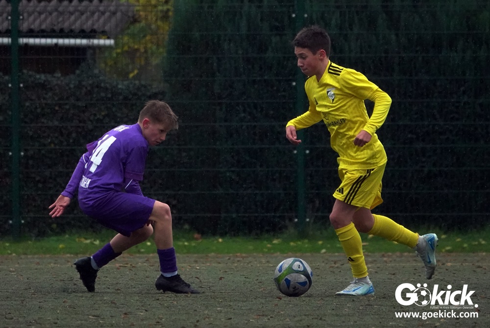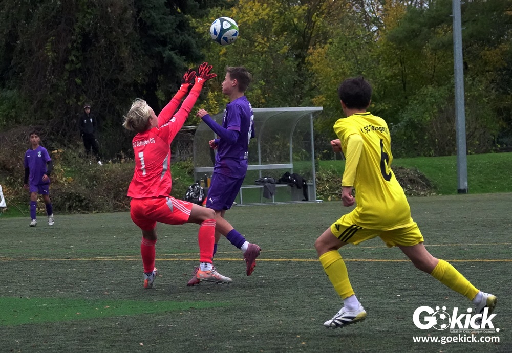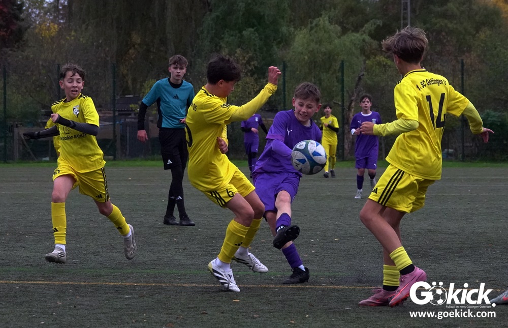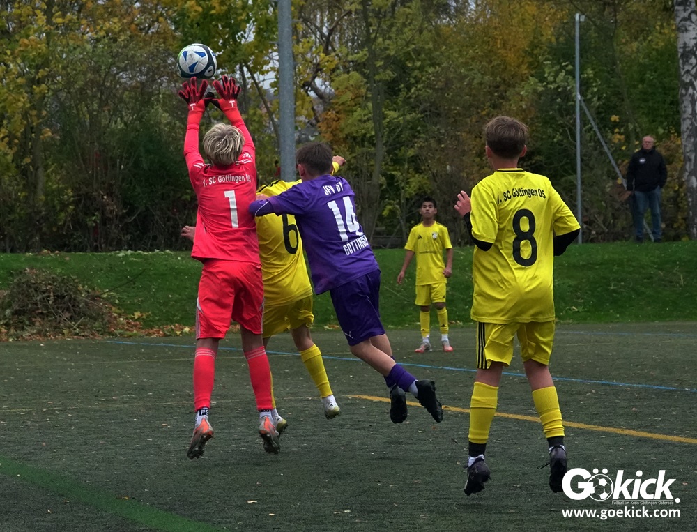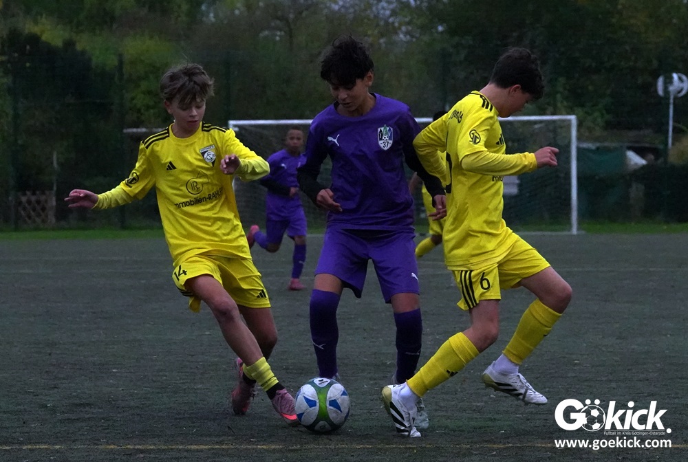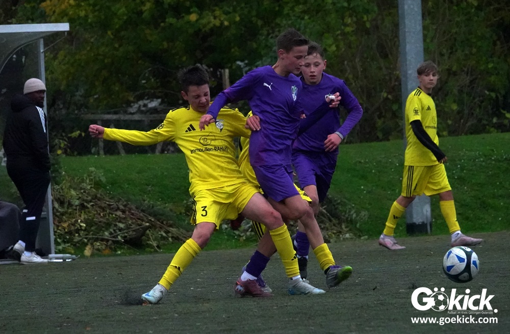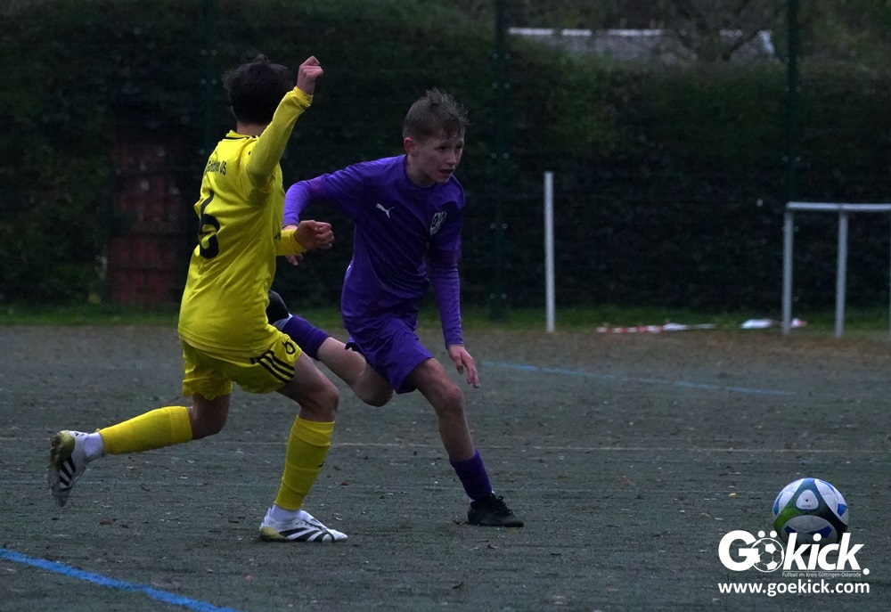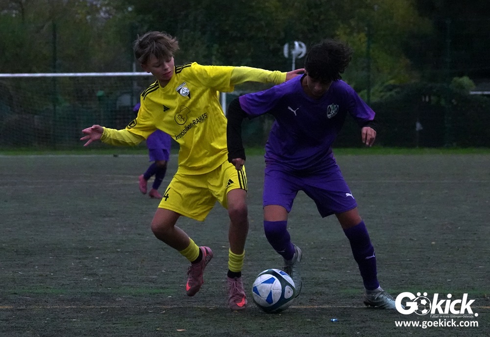 Von Beginn an entwickelte sich eine Begegnung, die der Bezeichnung Spitzenspiel gerecht wurde. Der JFV 37 Göttingen präsentierte sich mutig und spielfreudig, suchte immer wieder den Weg in die Tiefe und setzte die Gästeabwehr früh unter Druck. Doch während die Hausherren ihre aussichtsreichen Gelegenheiten nicht nutzen konnten, zeigte sich der 1. SC Göttingen 05 vor dem Tor abgezockter: In der 23. Minute nutzte Noah Noel Kiy einen Moment der Unordnung in der JFV-Defensive und brachte seine Farben in Führung.