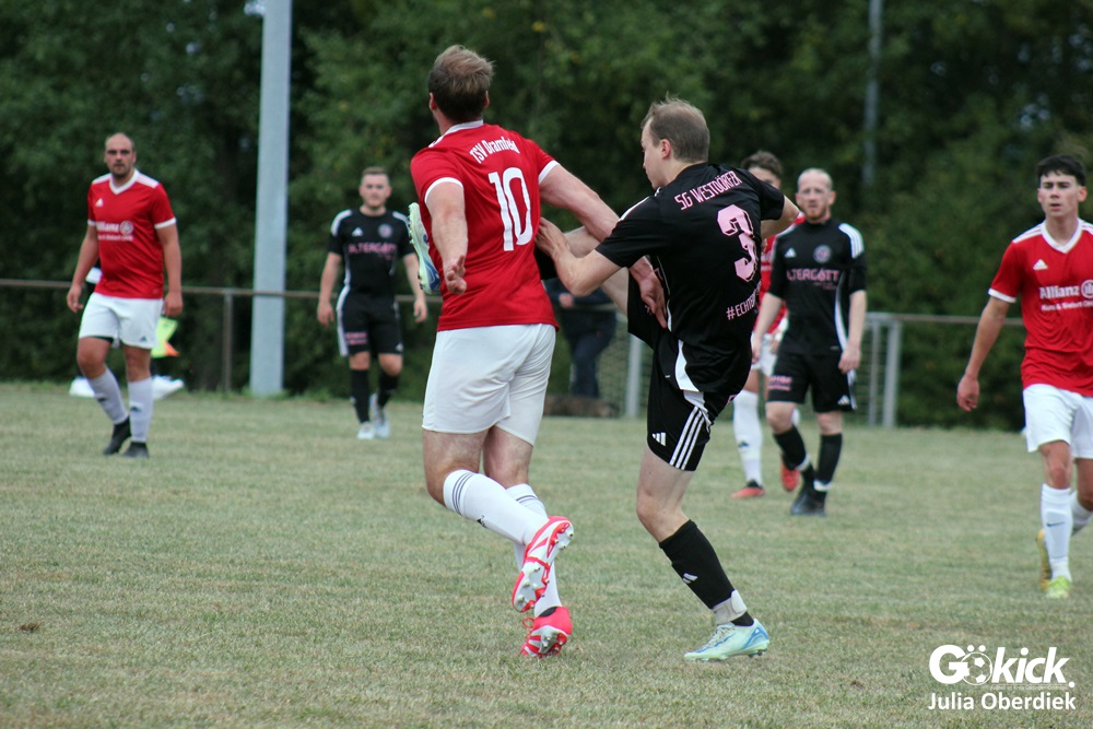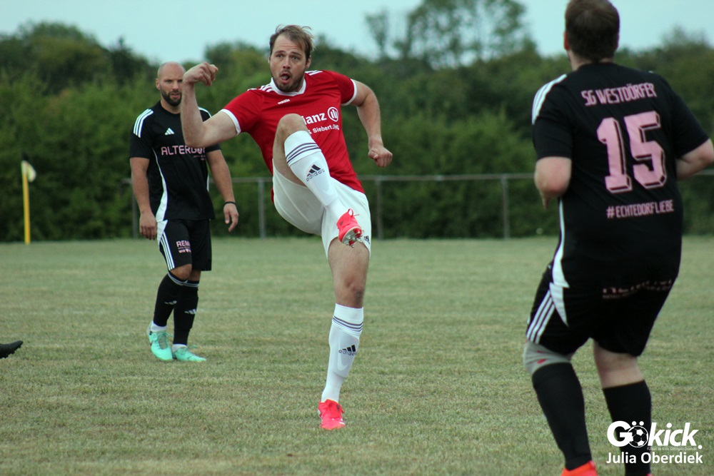 Die SG Westdörfer II warf in der Schlussphase noch einmal alles nach vorn, suchte mit großem Einsatz den Ausgleich, doch der erlösende Treffer wollte nicht fallen. Schiedsrichter Rayk Lebe leitete das Geschehen problemlos und hatte die intensiven Zweikämpfe jederzeit im Griff.