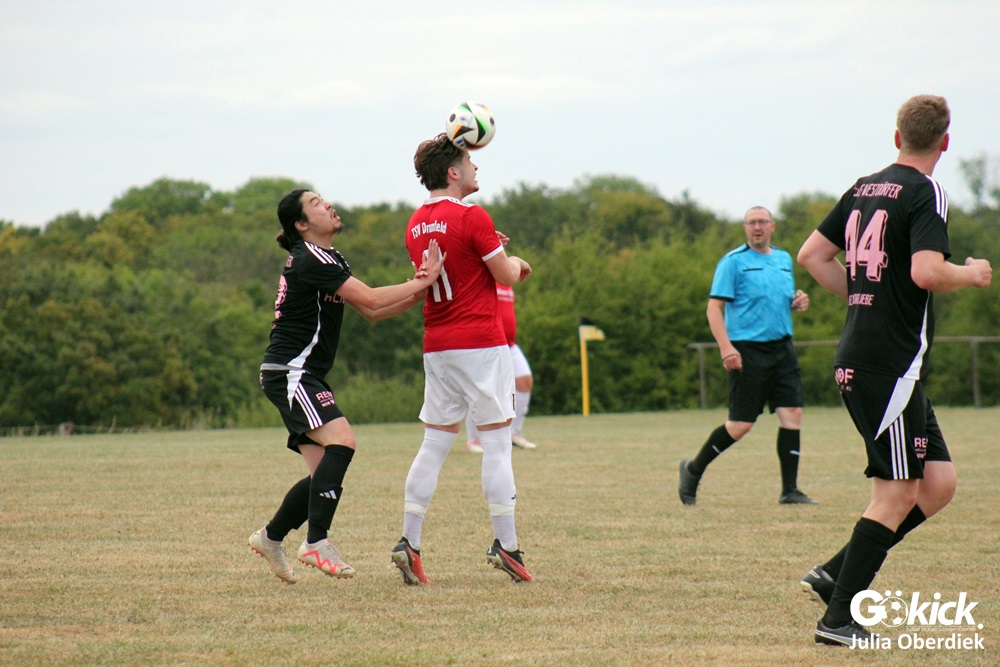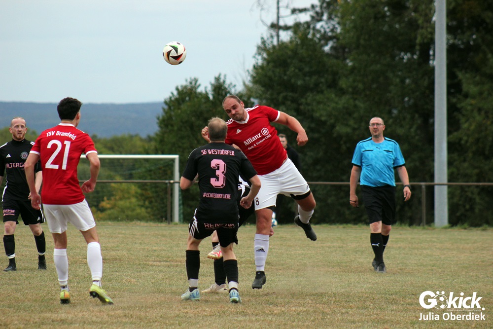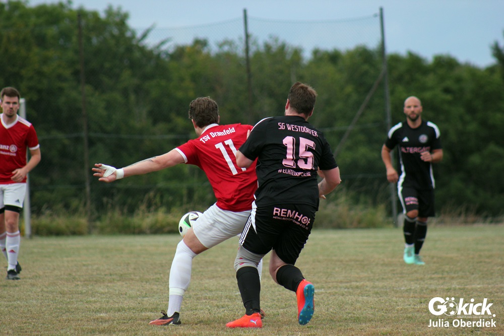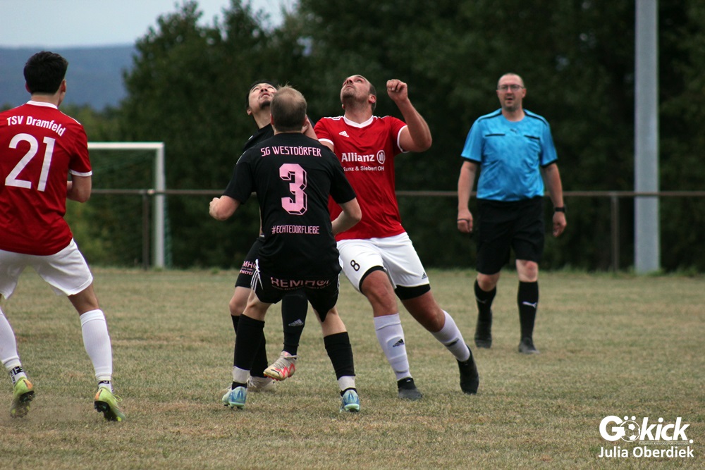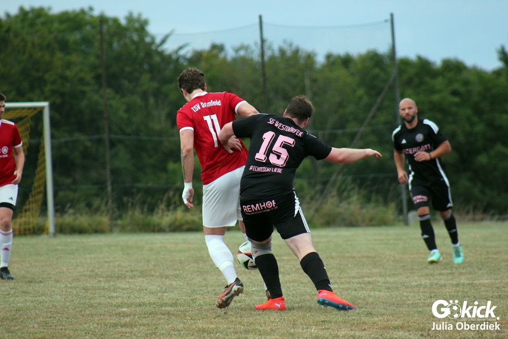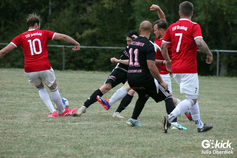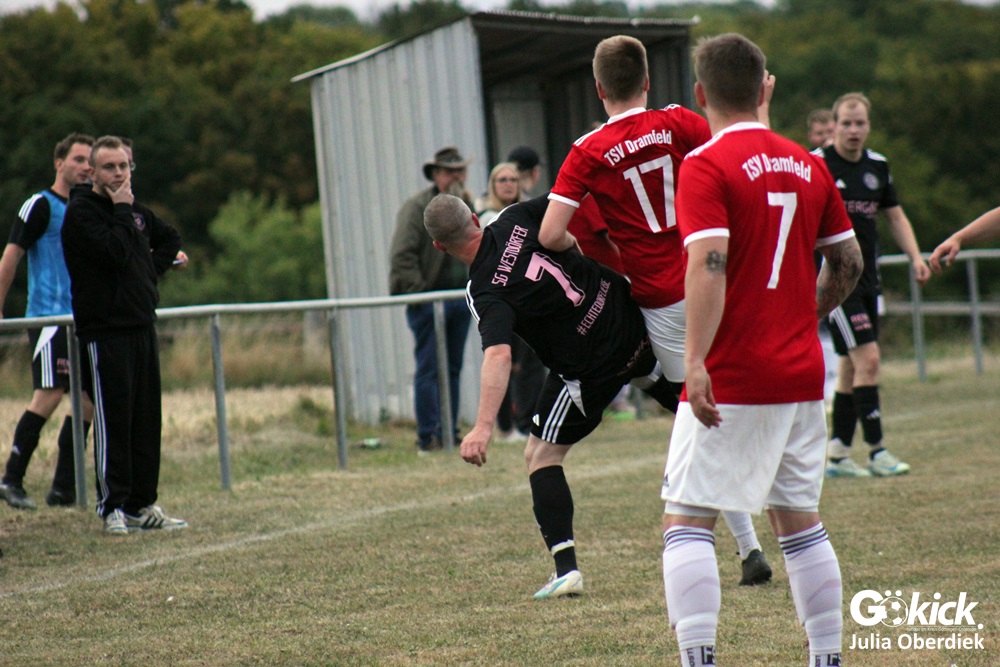 So feierte der TSV Dramfeld II den dritten Sieg im dritten Spiel und bleibt in der Spitzengruppe der 3. Kreisklasse Süd. Die SG Westdörfer II dagegen verpasste den ersten Punktgewinn nur knapp, zeigte sich aber kämpferisch verbessert.