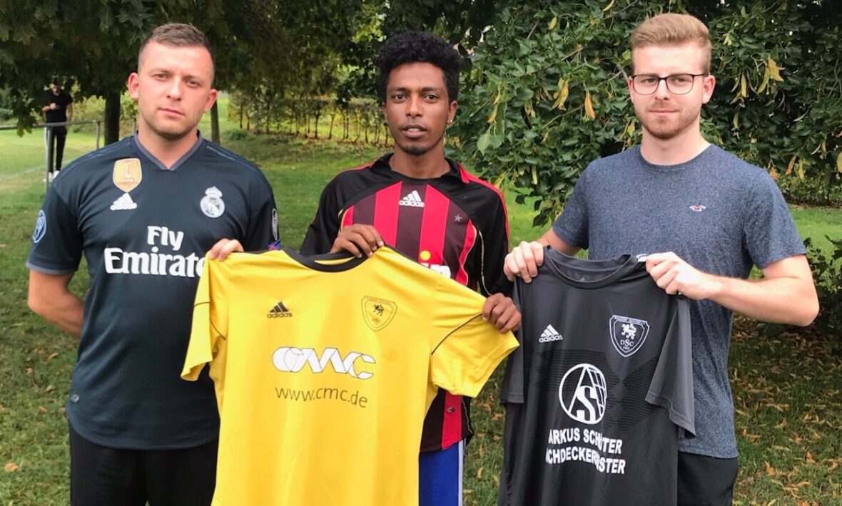 Nach der Frist für die Pressemeldungen der Kader und noch vor dem Ende der Transferperiode konnte der DSC weitere Spieler für sich gewinnen. Andre Hoffmann (22) wechselt von der SG Harste/Lenglern und ist meist auf den Außenbahnen zuhause. Im Sturm einsetzbar ist Pawel Kierzyk (26), zuletzt spielte er für Zryw Kotla in Polen. Robel Biniam (21), vereinslos, ist ein laufstarker Allrounder und wohnhaft in Dransfeld. Zwei weitere Neuzugänge, die nicht auf dem Foto zu sehen sind: Zyad Jadaan aus Syrien (22) kann eine große Verstärkung für den DSC werden und Sebastian Flechtner (36) wurde fußballerisch reaktiviert, zuletzt war er bei Eintracht Northeim II mit dem Fuß am Ball. Beide sind auch wohnhaft in Dransfeld.