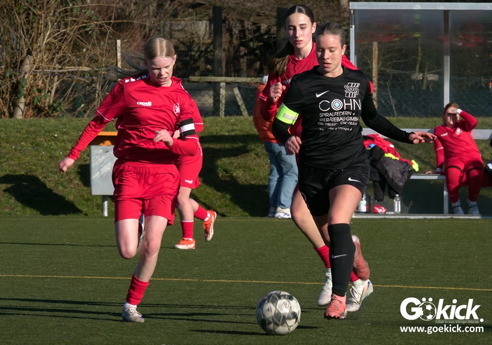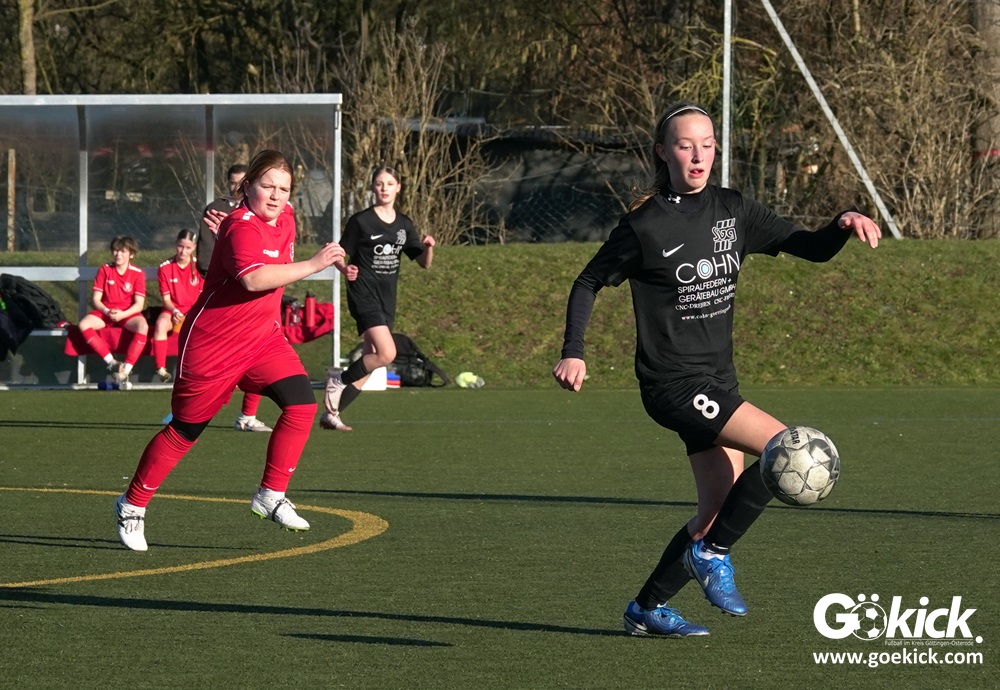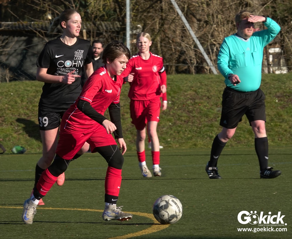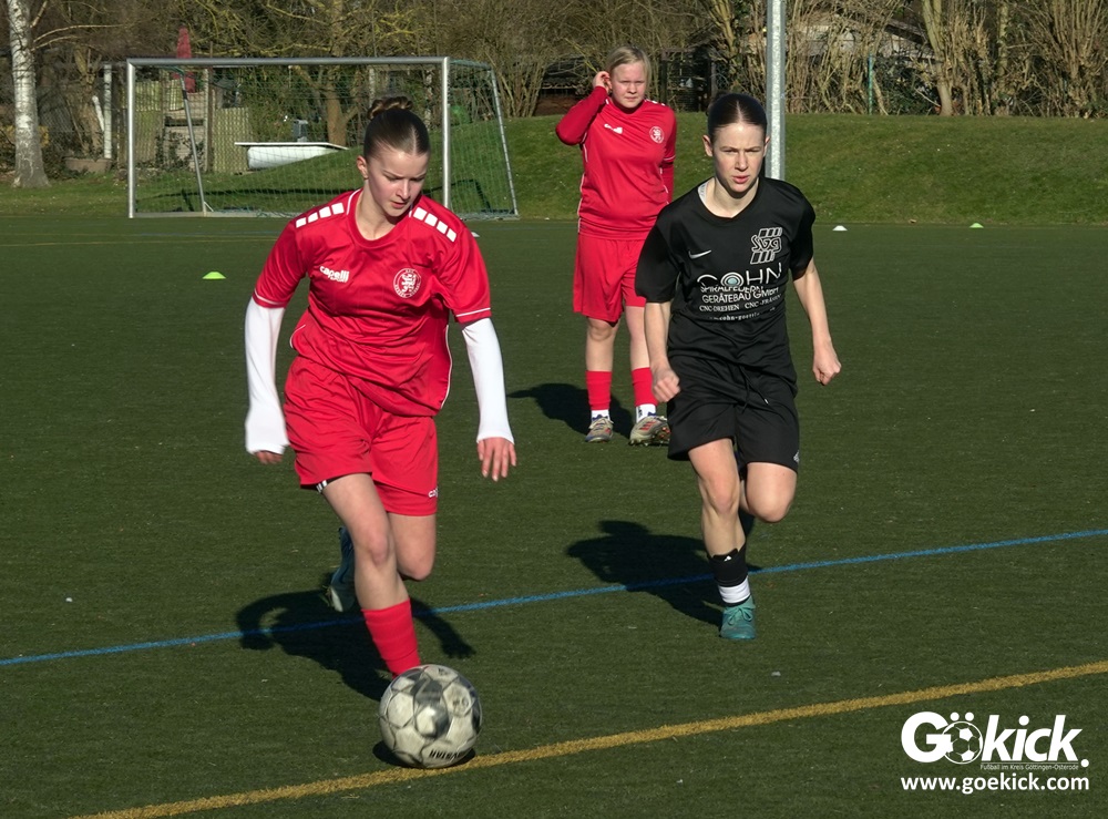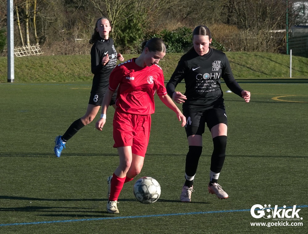 Torjägerin Jolina Karic brachte die SVG nach sechs Minuten mit 1:0 in Führung. Julian Meier erhöhte nach 14 Minuten auf 2:0. Doch die Hessinnen kamen zurück in die Partie. Stella Marija Doncev (21.), Marleen Umbach (28.) und Marlene Remus (36.) drehten die Partie und brachten die Gäste mit 3:2 in Führung. Mit ihrem zweiten Treffer stellte Jolina Karic in der Schlussminute der ersten Halbzeit den 3:3-Ausgleich her. Damit wurden die Seiten gewechselt.