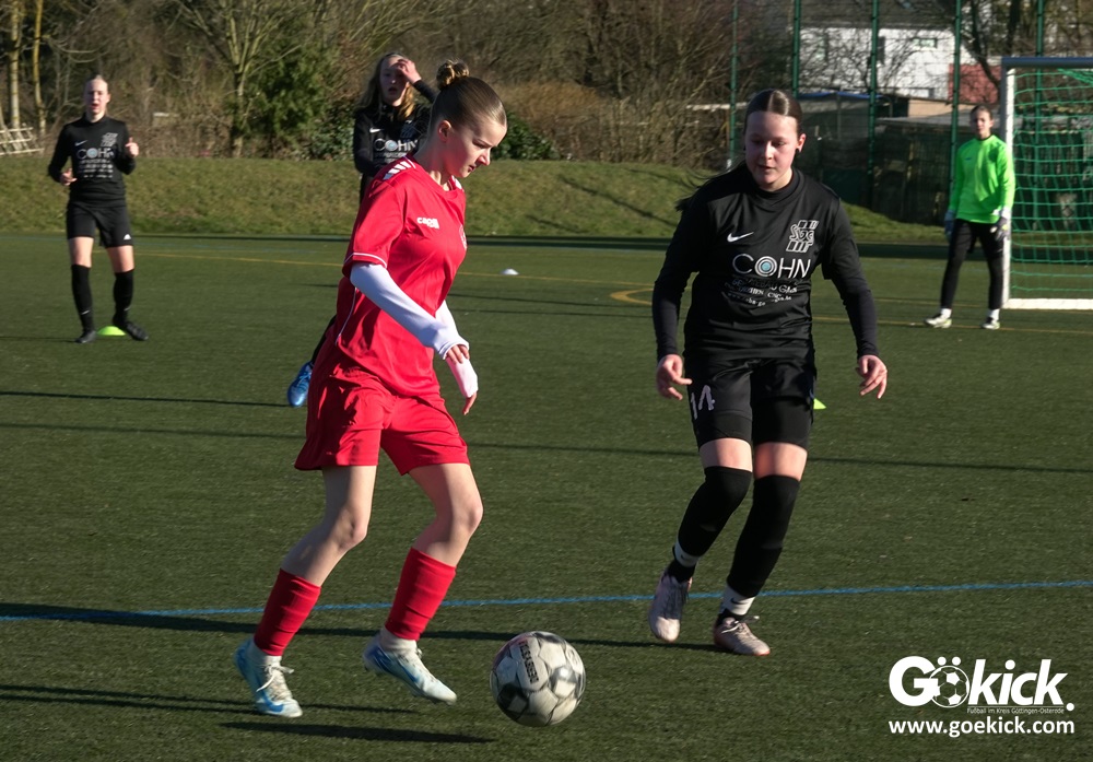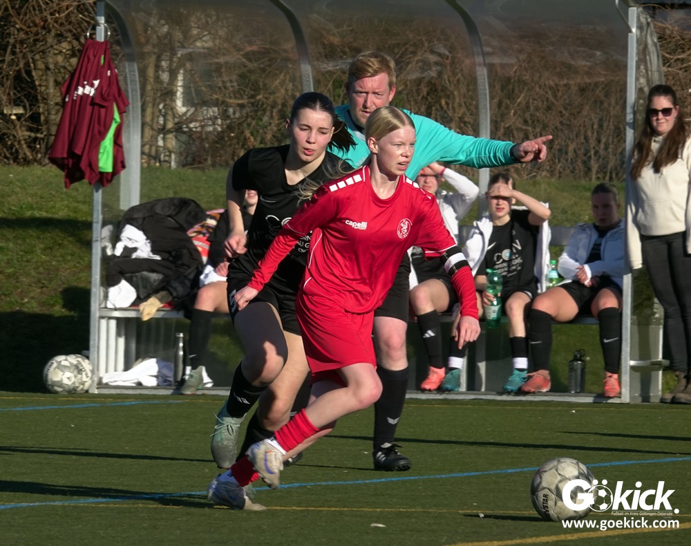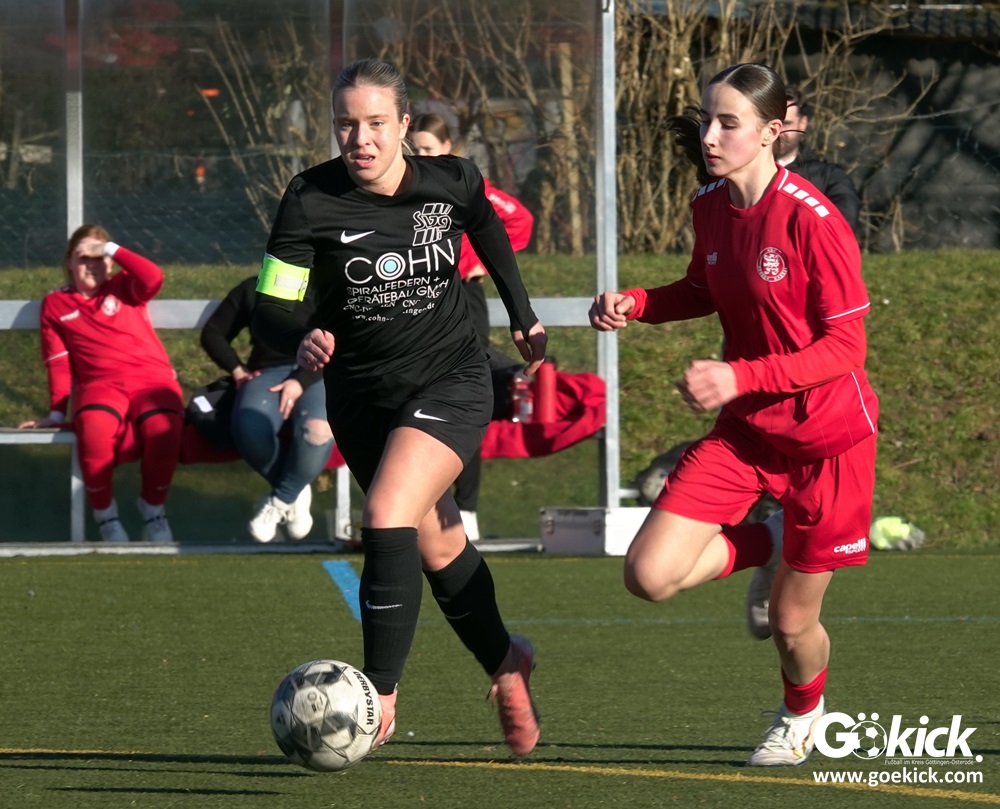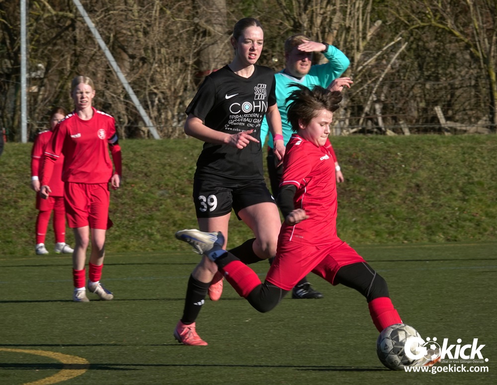 Torjägerin Jolina Karic brachte die SVG nach sechs Minuten mit 1:0 in Führung. Julian Meier erhöhte nach 14 Minuten auf 2:0. Doch die Hessinnen kamen zurück in die Partie. Stella Marija Doncev (21.), Marleen Umbach (28.) und Marlene Remus (36.) drehten die Partie und brachten die Gäste mit 3:2 in Führung. Mit ihrem zweiten Treffer stellte Jolina Karic in der Schlussminute der ersten Halbzeit den 3:3-Ausgleich her. Damit wurden die Seiten gewechselt.