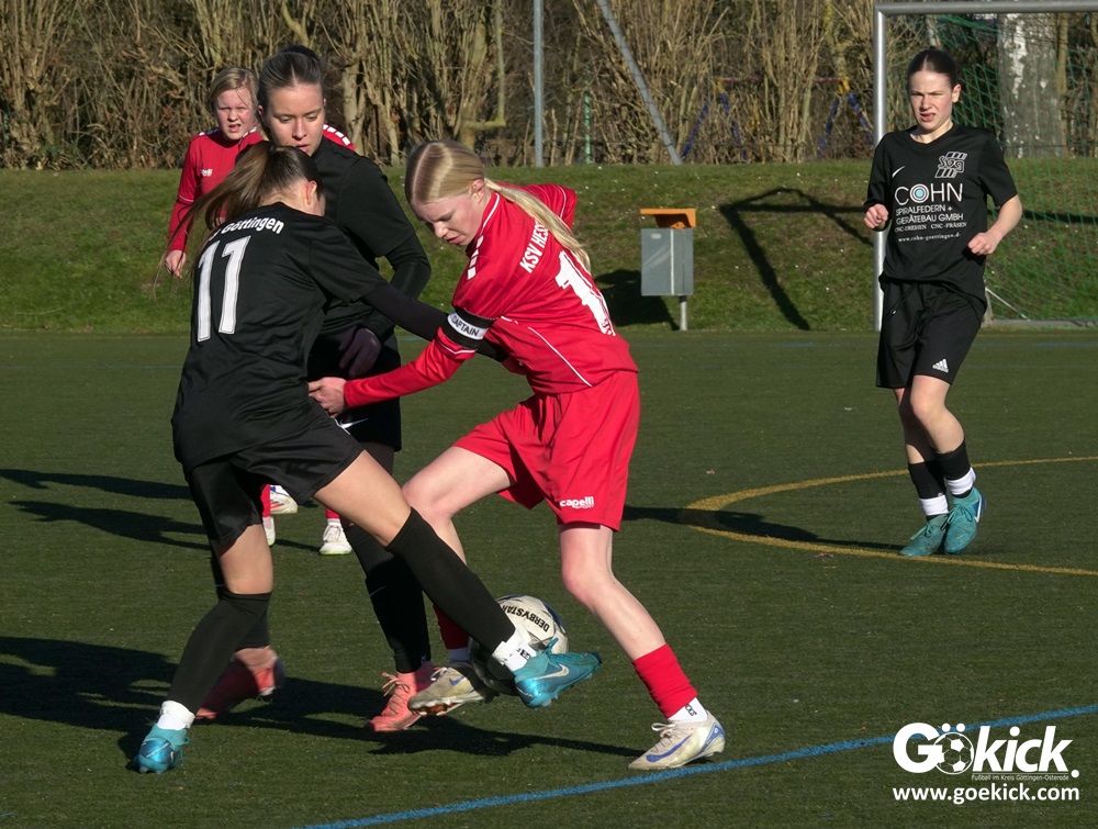 Zu Beginn der zweiten Halbzeit erzielte Jolina Karic ihren dritter Tagestreffer. Damit brachte sie ihre SVG vom Trainerduo Tobias Strübig und Jürgen Turke mit 4:3 in Front. Doch gegen Ende der Partie kam wieder der KSV auf. Marlene Remus glich nach 73 Minuten zum 4:4 aus und schließlich konnte Stella Marija Doncev mit ihrem zweiten Treffer in dieser Partie nach 79 Minuten sogar das Siegtor für die Gäste erzielen.