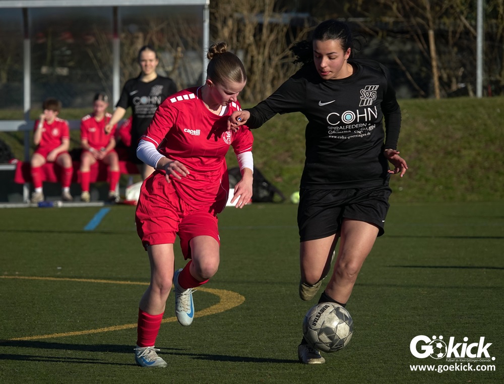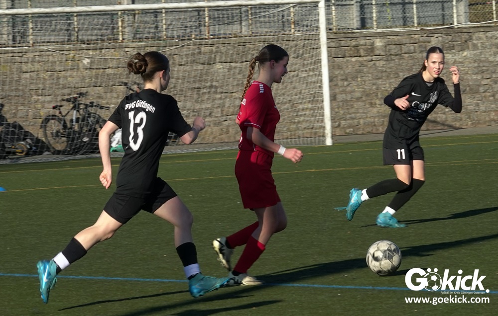 Die B-Mädchen der SVG Göttingen hatten am vergangenen Sonntag hohen Besuch im KRÜGERPARK am Sandweg. Zu Gast war die C-Mädchen-Mannschaft des KSV Hessen Kassel, aktueller Tabellenführer der Gruppenliga im Nachbarland. Die Gäste siegten am Ende glücklich mit 5:4 (3:3).