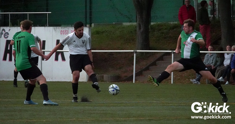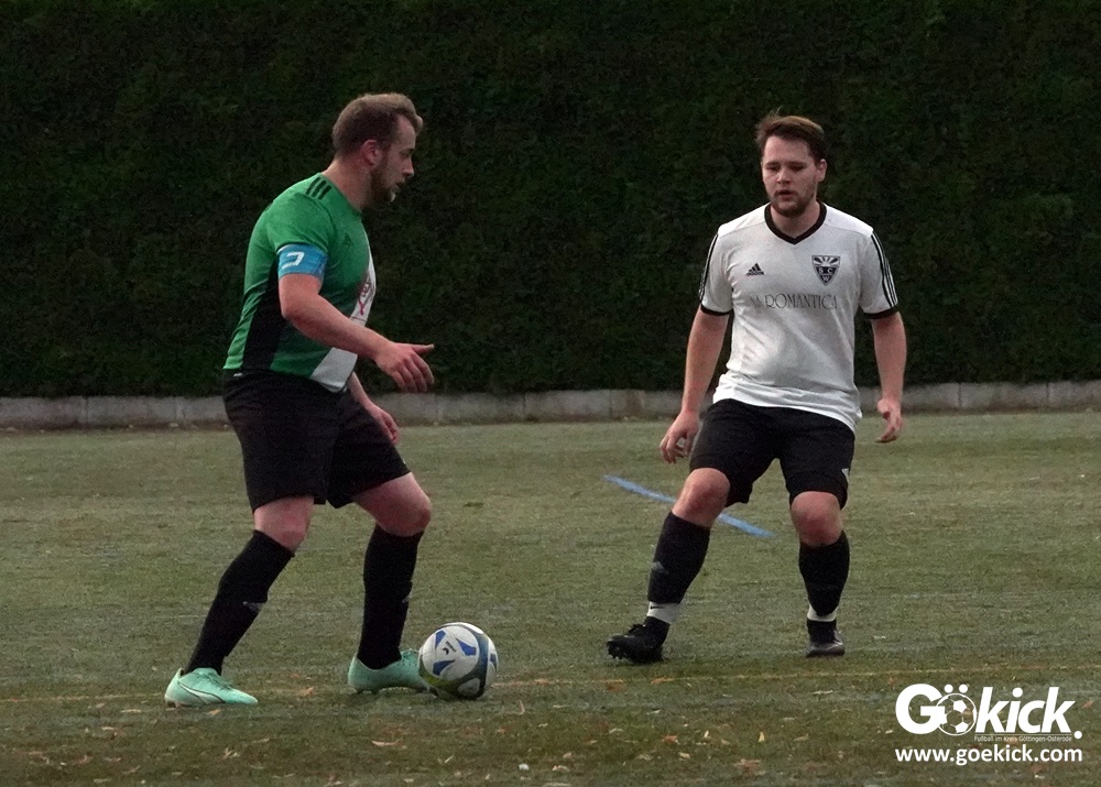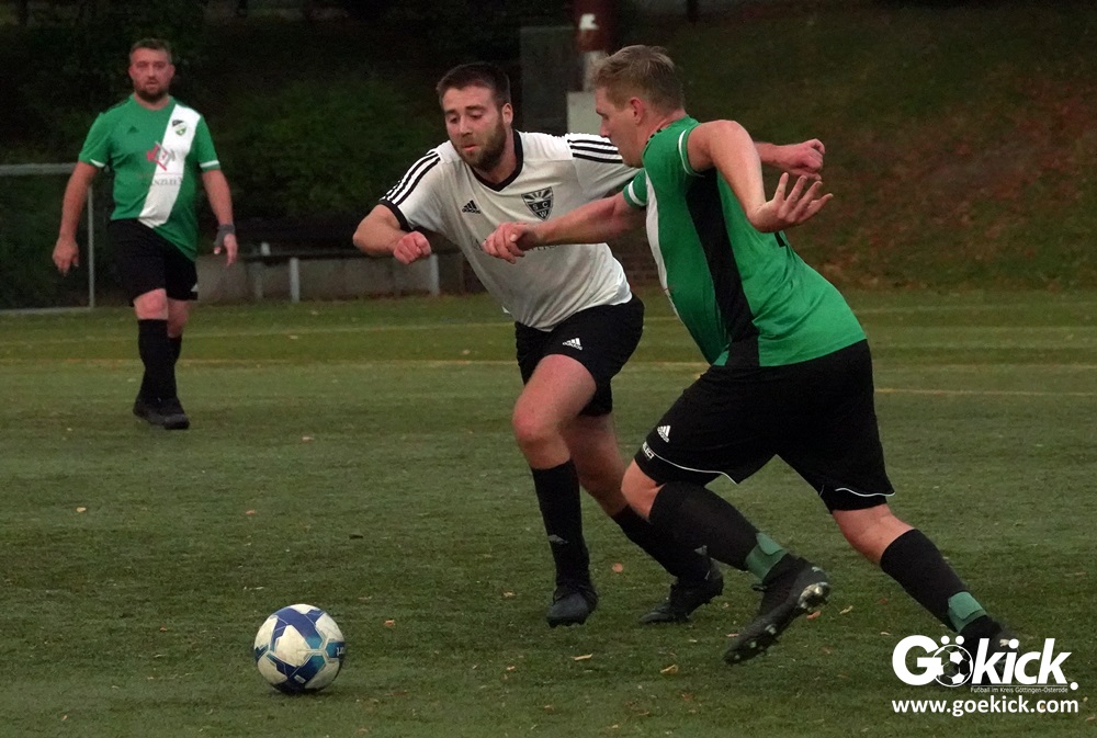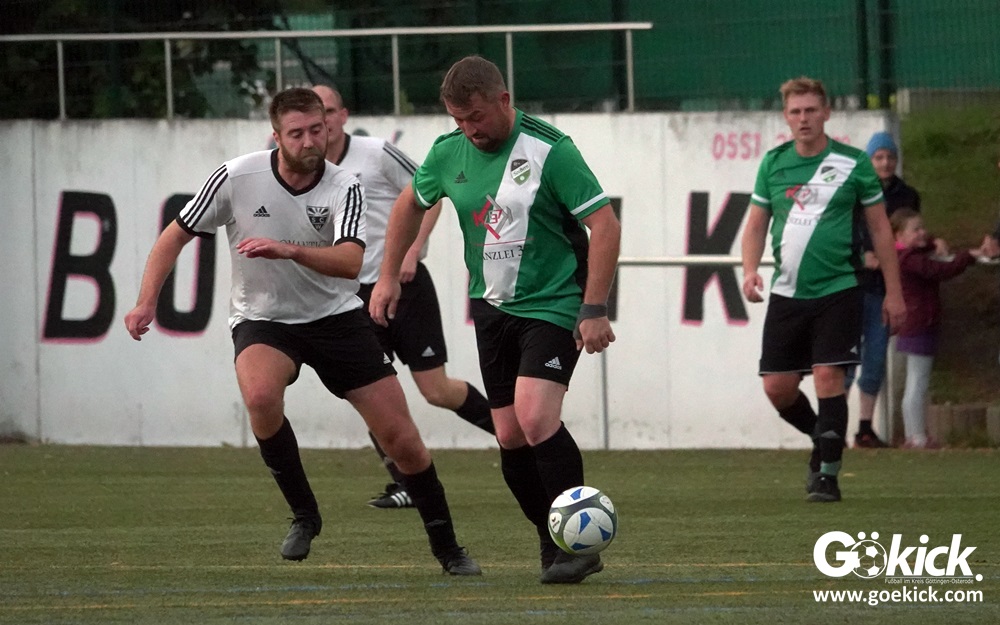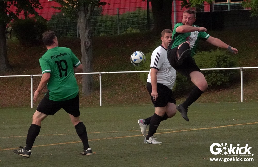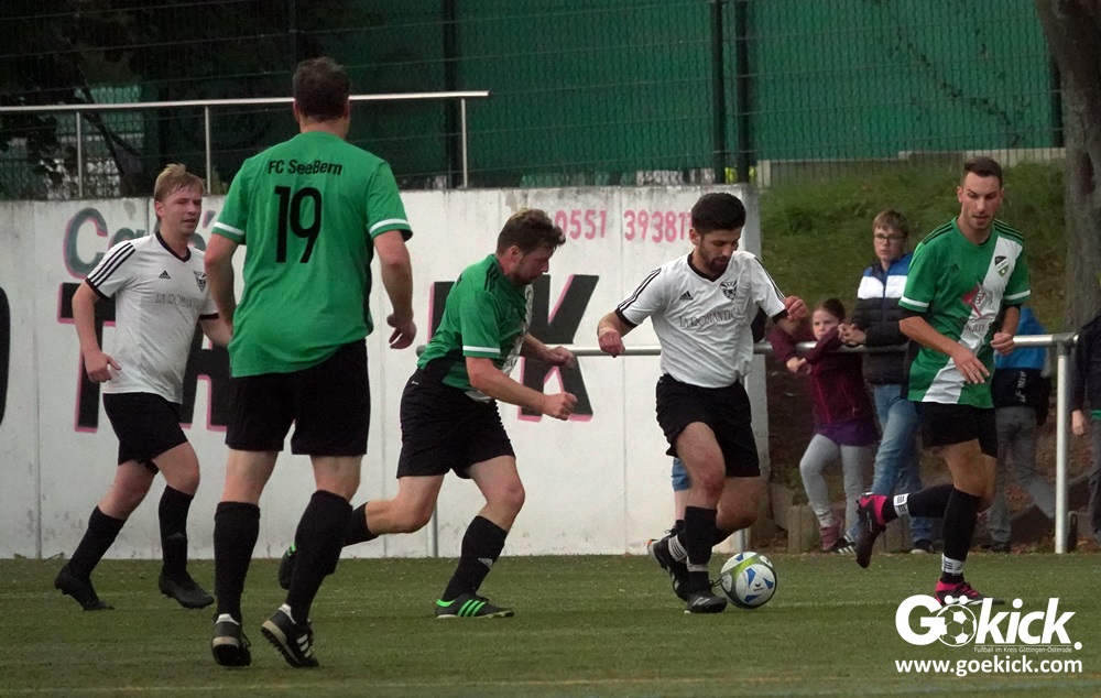 Nach neun Minuten brachte Kai Reinhold die Gäste aus Seeburg und Bernshausen mit 1:0 in Führung. Doch der Gastgeber schlug zurück: Jan Rother traf nach 17 Minuten zum Ausgleich in die Maschen der Gäste. Nur drei Minuten später sogar die erstmalig Führung für die Heimmannschaft: Alexander Gerdes vollendete zum 2:1. Mit dem 3:1 durch Daniel Nikolas Haneke schien der Gastgeber endgültig auf der Siegerstraße. Doch Michael Wüstefeld brachte mit dem 2:3 aus Sicht der Gäste sein Team in der 30. Minute noch einmal heran und sorgte für Spannung in der Partie. Den alten Zwei-Tore-Vorsprung stellte Senol Becirovski mit dem 4:2 in der 38. Minute wieder her. Damit ging es in die Halbzeitpause.
