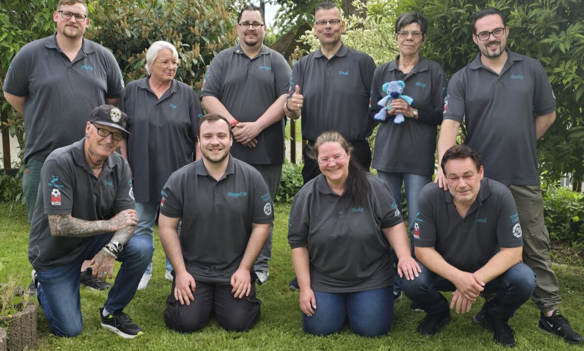 Titelfoto: Team „Die Amazonen“, Meister und Aufsteiger: hinten (vl.): Phillip Graf, Inge Günther, Alex Schuster, Thorsten Rothan (TC), Helga Weide, Dustin Beutling; vorne (vl.): Frank Günther, Timm Dahnken, Heike Rothan, Mario Beutling.