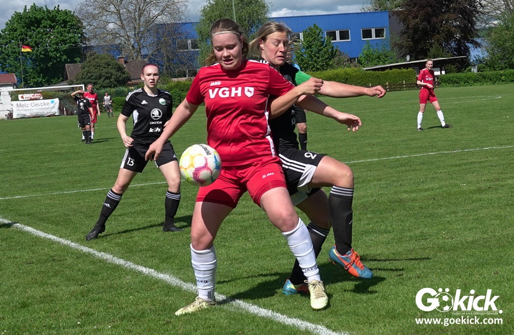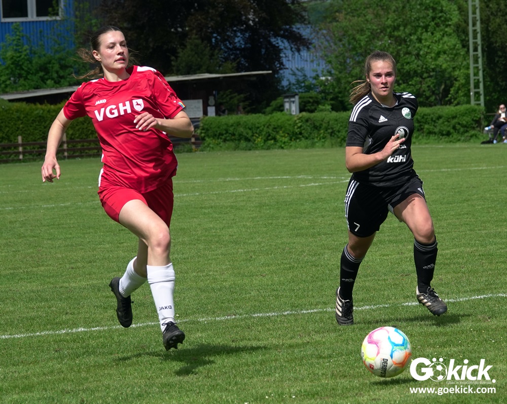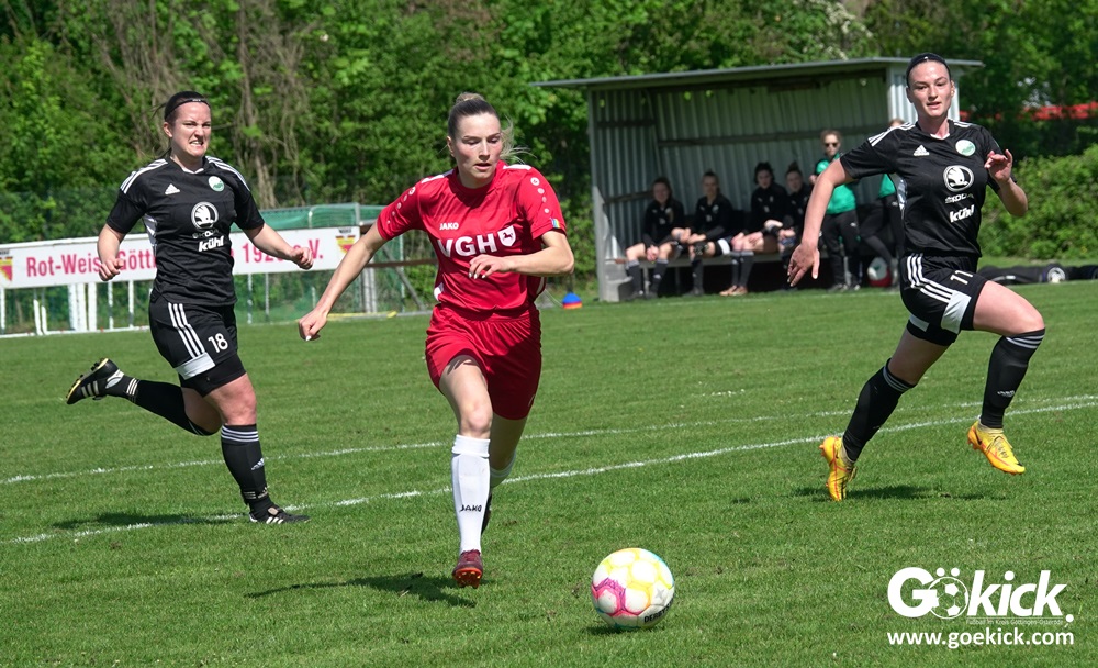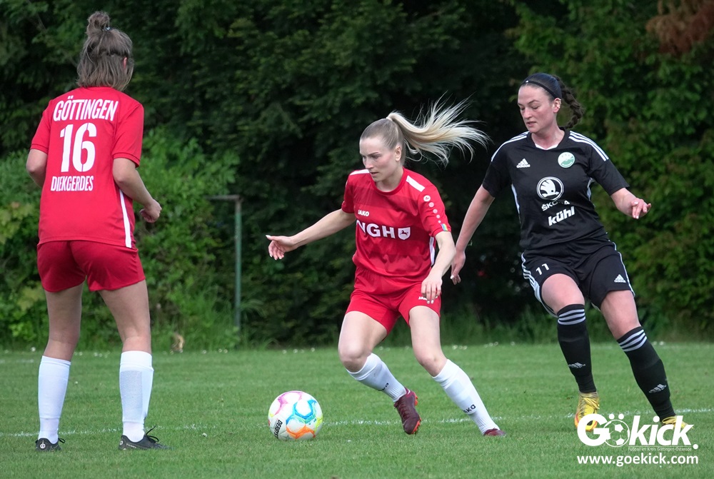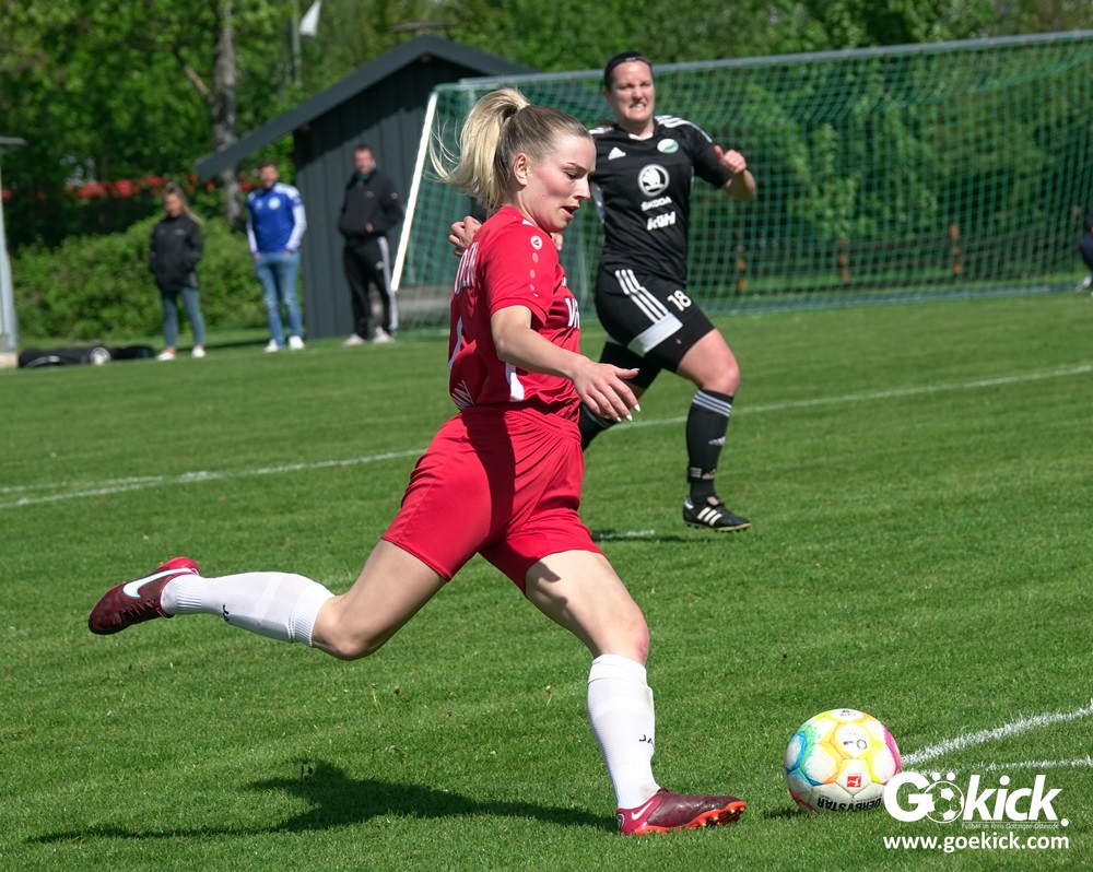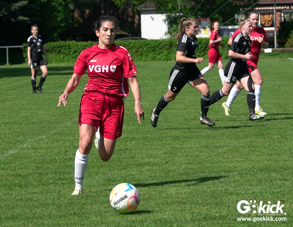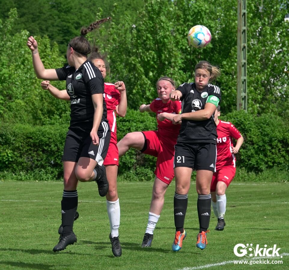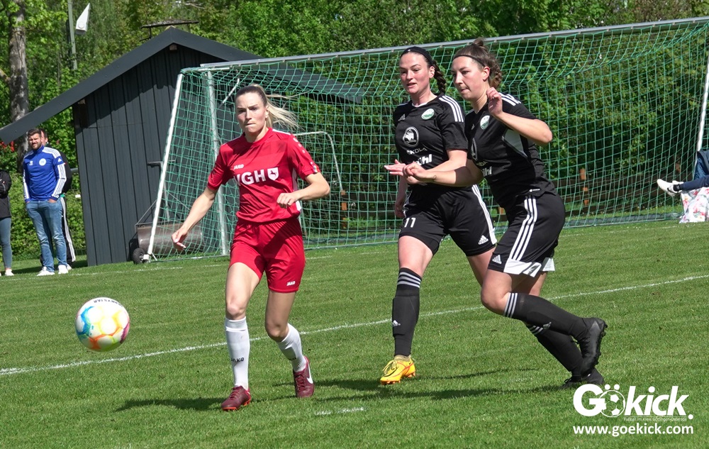 Den Torreigen eröffnete die schnelle Lea Bindewald, die 14 Minuten auf Reisen geschickt, auch noch Torfrau Jolien Auracher umkurvte und zur Führung einschoss. Das 2:0 nach 24 Minuten erzielte Marie Diekgerdes, die per Kopf am langen Pfosten vollendete. Mit einem satten Schuss aus 19 Metern gelang Elina Wöckener nach 34 Minuten das 3:0 und damit eine Vorentscheidung in dieser Partie. Damit ging es in die Halbzeitpause.