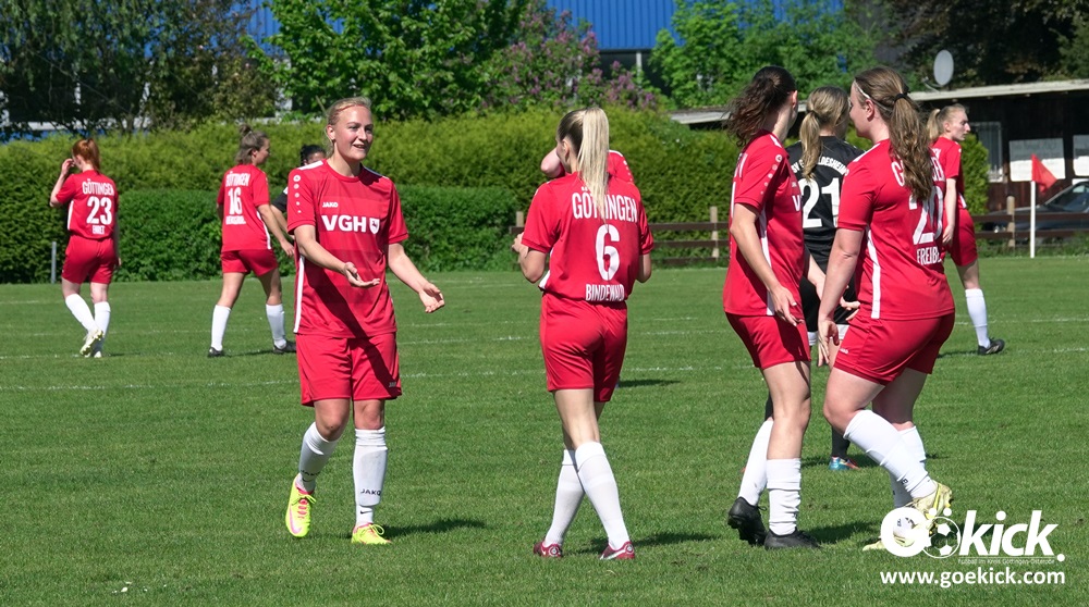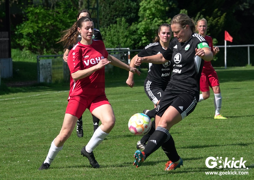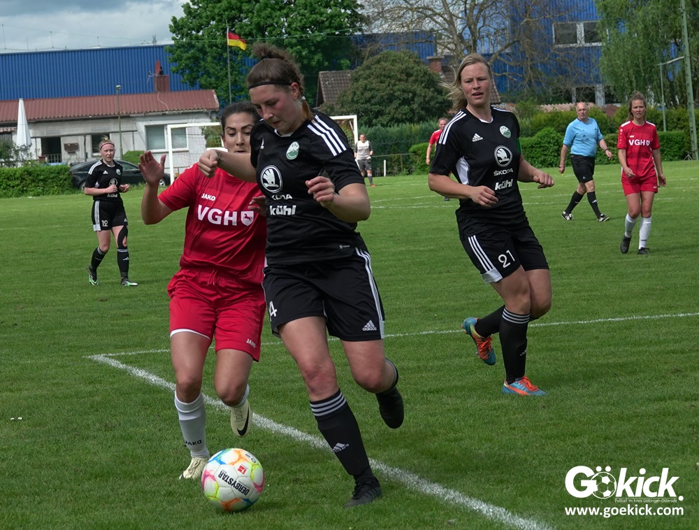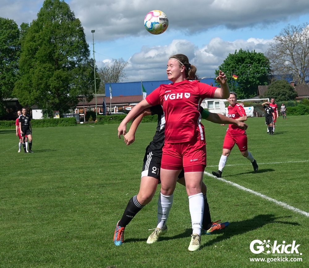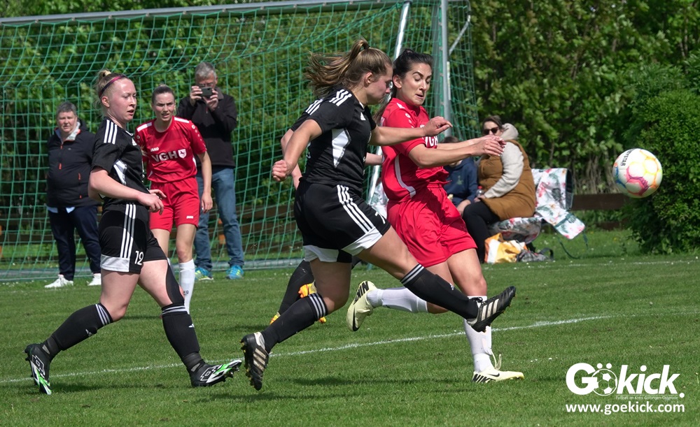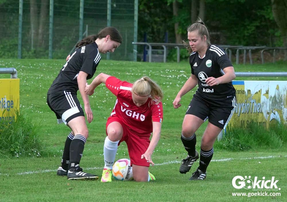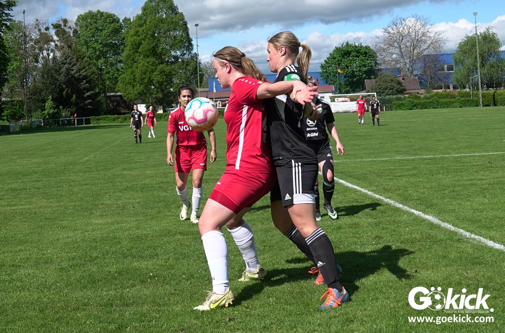 Den Torreigen eröffnete die schnelle Lea Bindewald, die 14 Minuten auf Reisen geschickt, auch noch Torfrau Jolien Auracher umkurvte und zur Führung einschoss. Das 2:0 nach 24 Minuten erzielte Marie Diekgerdes, die per Kopf am langen Pfosten vollendete. Mit einem satten Schuss aus 19 Metern gelang Elina Wöckener nach 34 Minuten das 3:0 und damit eine Vorentscheidung in dieser Partie. Damit ging es in die Halbzeitpause.