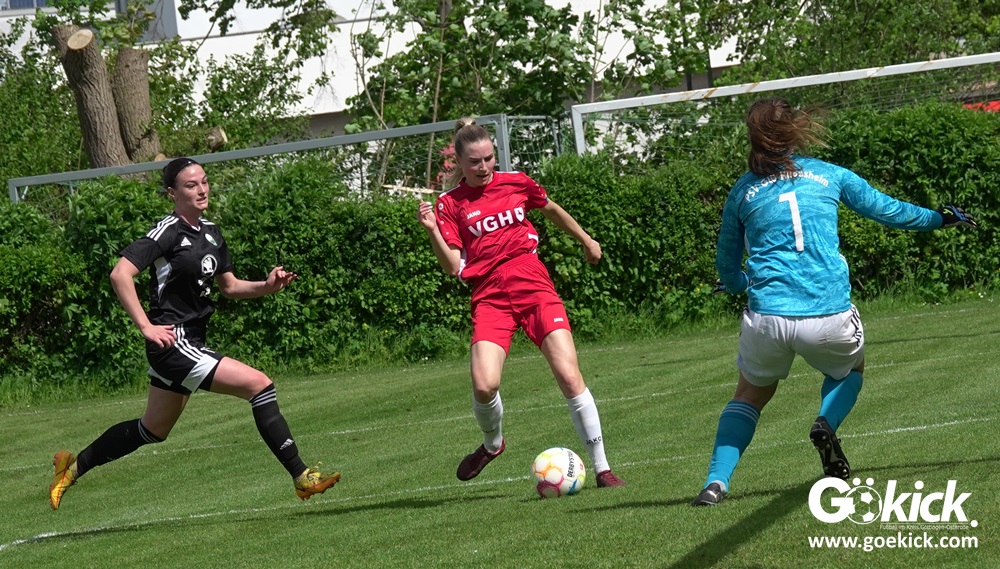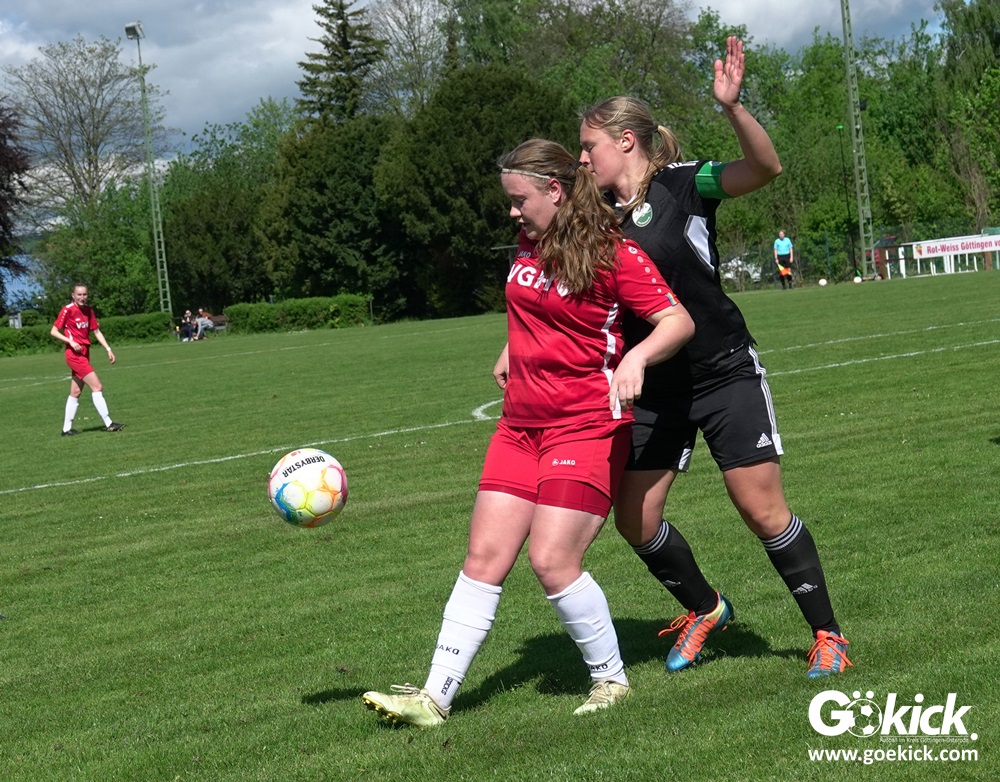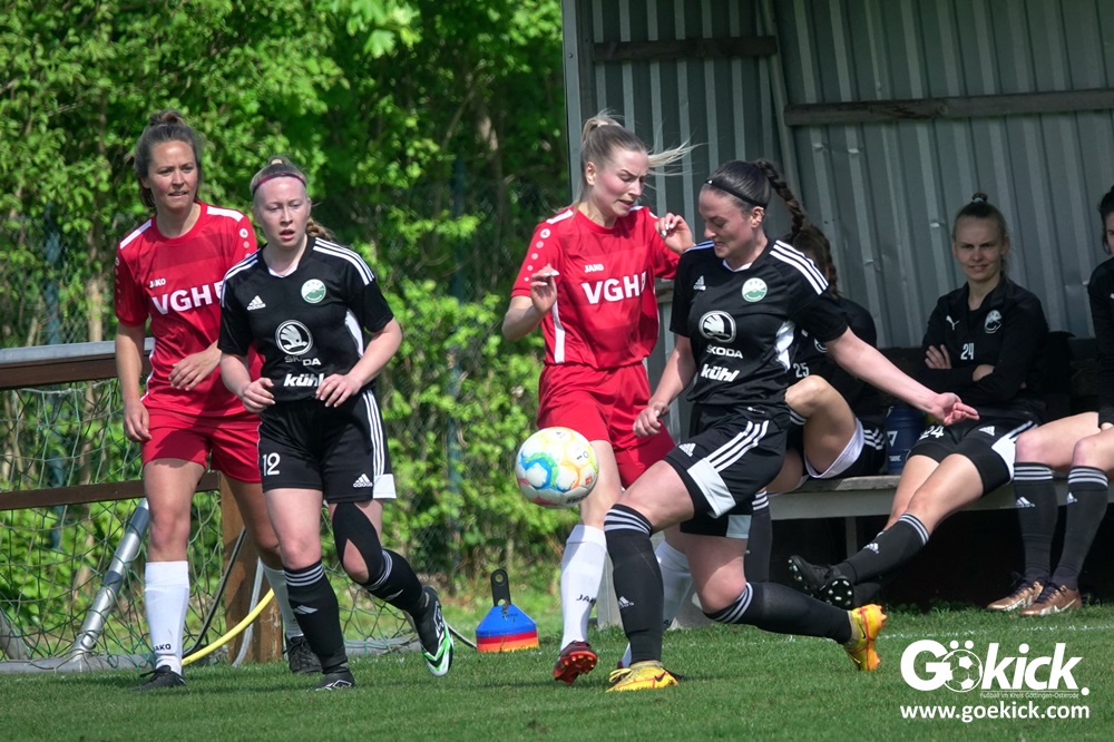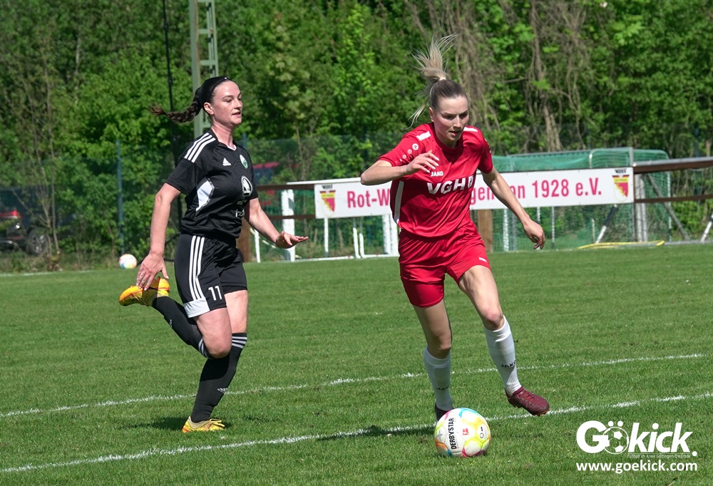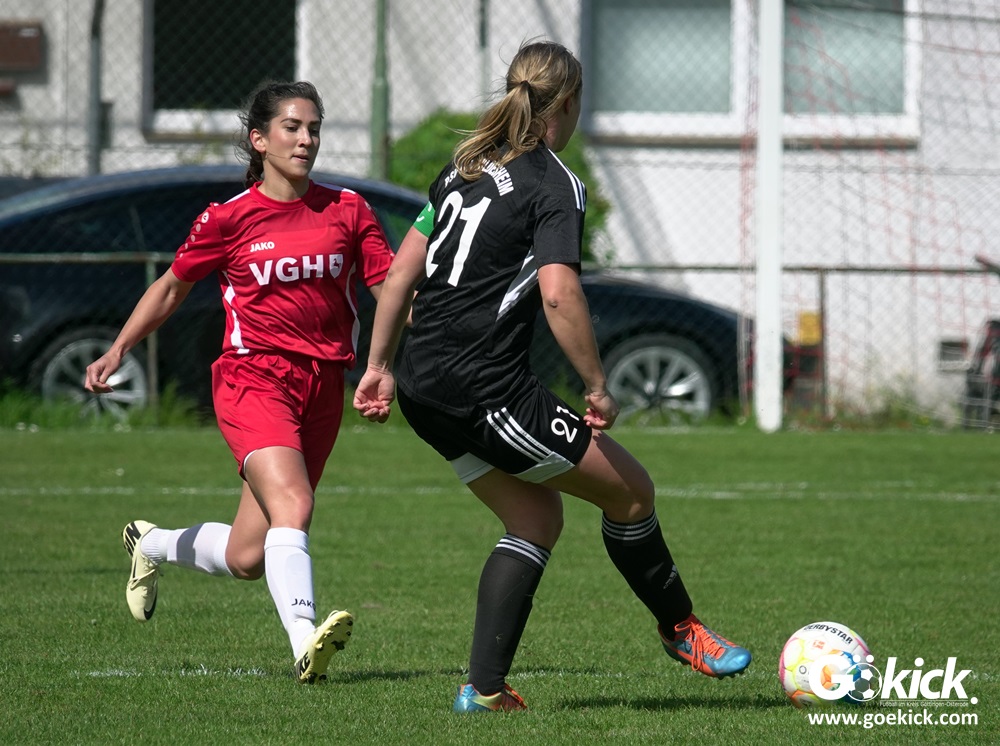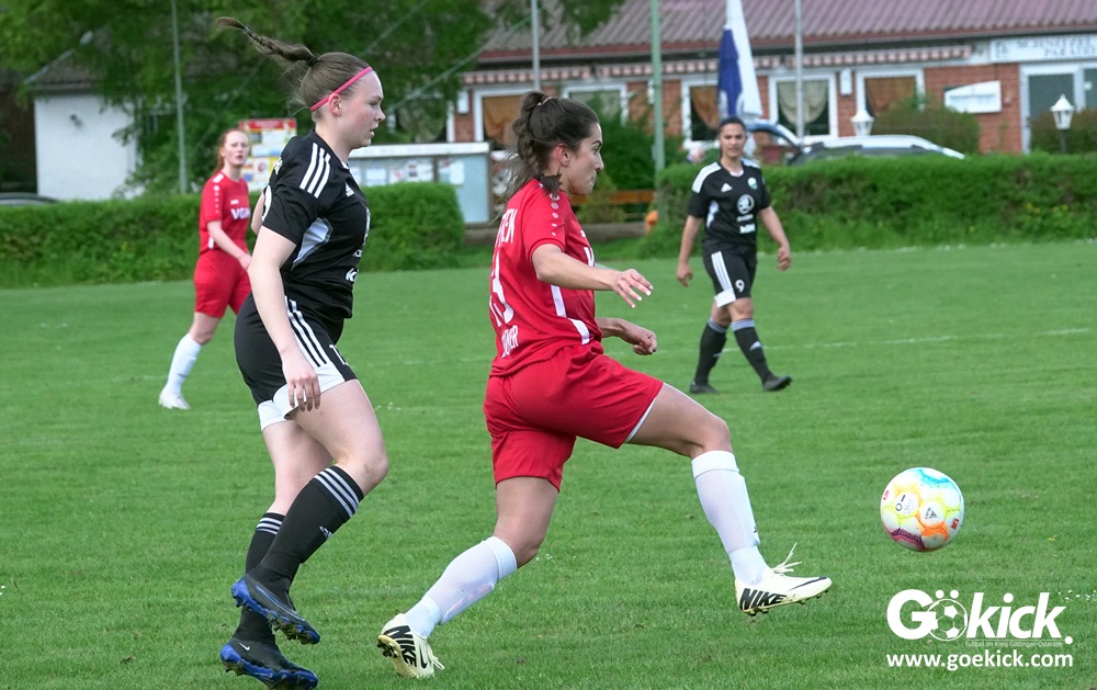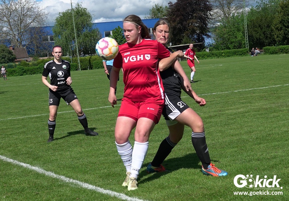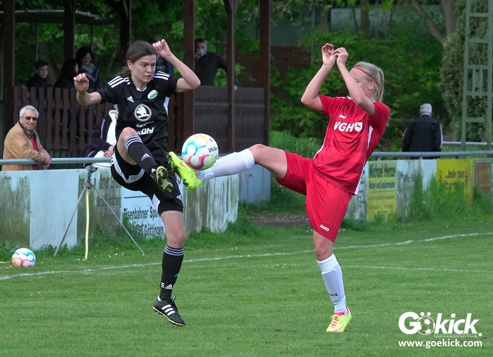 Den Torreigen eröffnete die schnelle Lea Bindewald, die 14 Minuten auf Reisen geschickt, auch noch Torfrau Jolien Auracher umkurvte und zur Führung einschoss. Das 2:0 nach 24 Minuten erzielte Marie Diekgerdes, die per Kopf am langen Pfosten vollendete. Mit einem satten Schuss aus 19 Metern gelang Elina Wöckener nach 34 Minuten das 3:0 und damit eine Vorentscheidung in dieser Partie. Damit ging es in die Halbzeitpause.