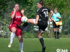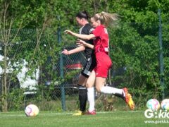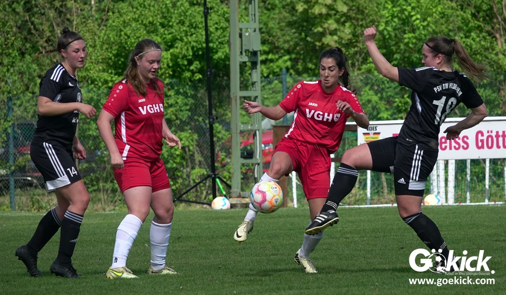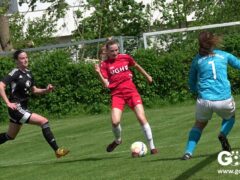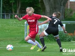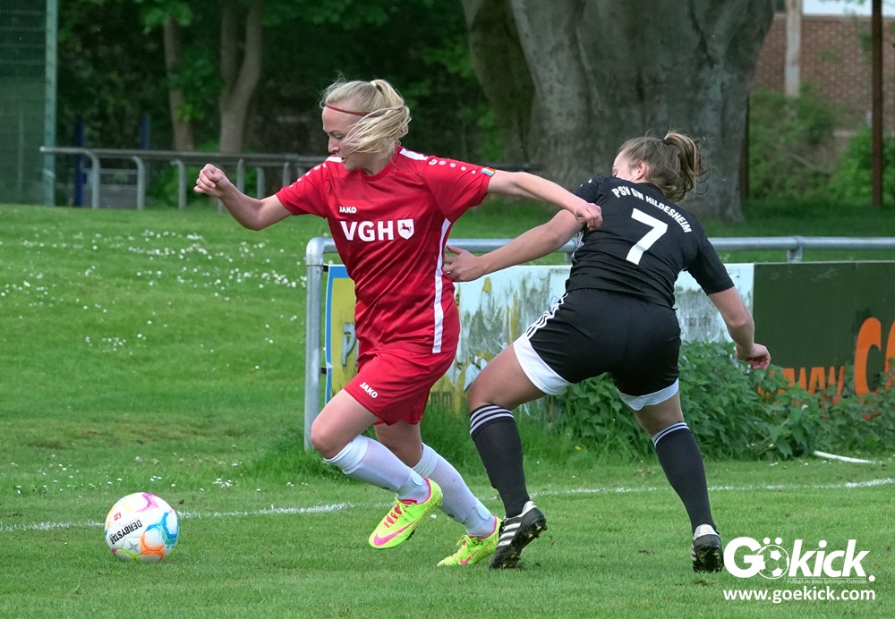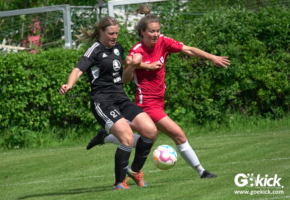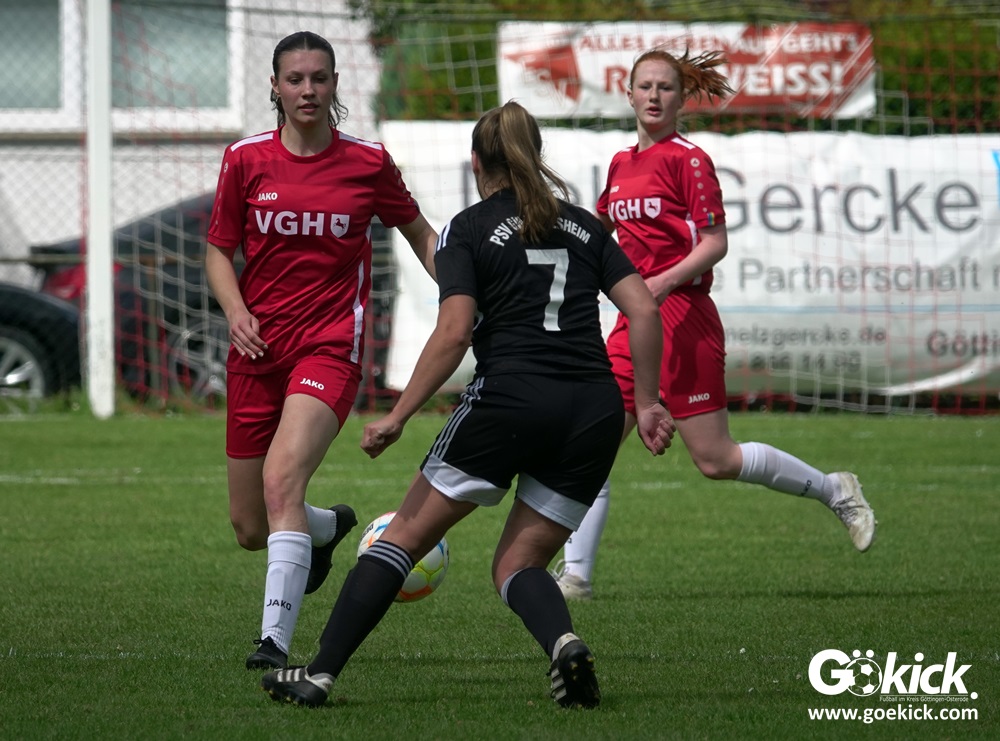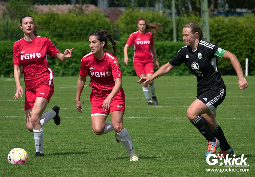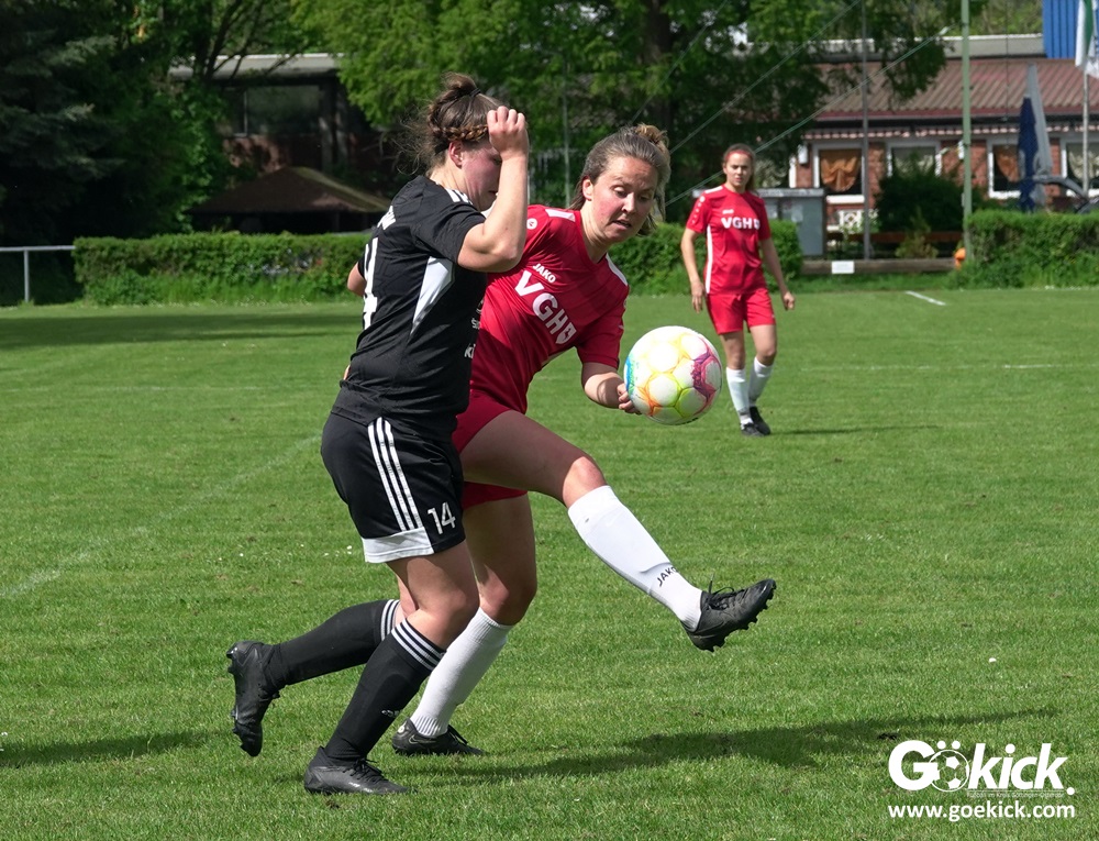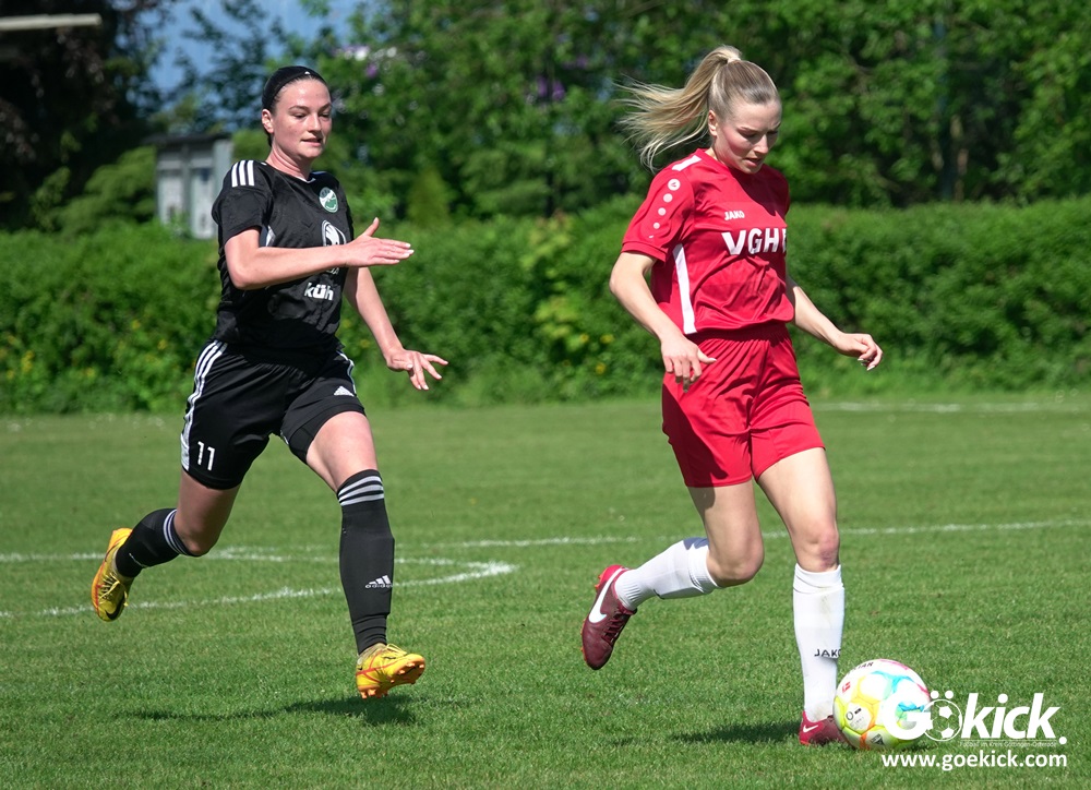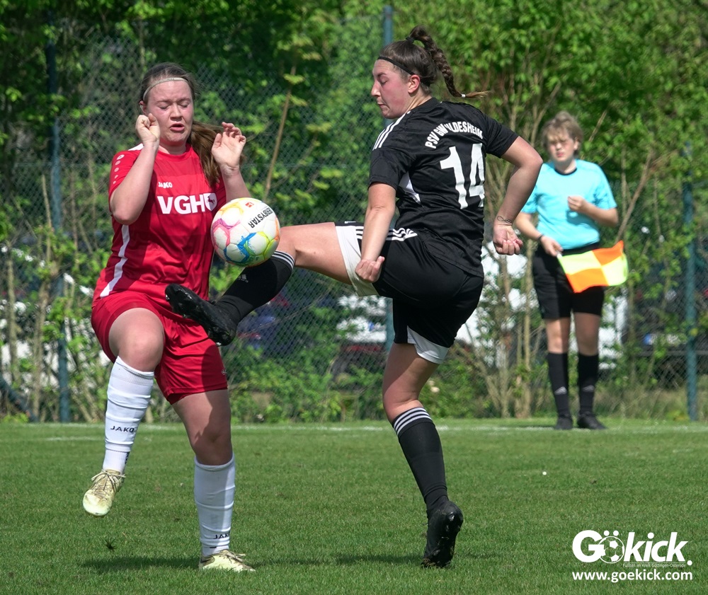 Den Torreigen eröffnete die schnelle Lea Bindewald, die 14 Minuten auf Reisen geschickt, auch noch Torfrau Jolien Auracher umkurvte und zur Führung einschoss. Das 2:0 nach 24 Minuten erzielte Marie Diekgerdes, die per Kopf am langen Pfosten vollendete. Mit einem satten Schuss aus 19 Metern gelang Elina Wöckener nach 34 Minuten das 3:0 und damit eine Vorentscheidung in dieser Partie. Damit ging es in die Halbzeitpause.