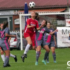 Nach einer torlosen ersten Halbzeit ging der Gast aus Hannover nach 59 Minuten durch Kitti Hugaya in Führung. Lea Moshauer erhöhte nach 71 Minuten auf 2:0. Sollte der ESV Rot-Weiß erneut eine Heimniederlage, wie bereits in den beine Heimspielen zuvor, hinnehmen? Elena Müller hatte etwas dagegen. Sie verkürzte in der 76. Minute auf 1:2. Und in der 85. Minute konnte Caya Lynn Klingfurt sogar zum 2:2 ausgleichen. Am Ende musste sich das Team von Trainer Kevin Martin mit der Punkteteilung abfinden.