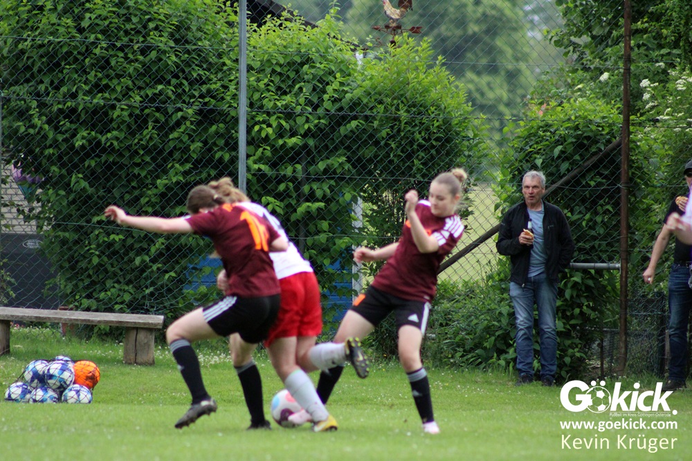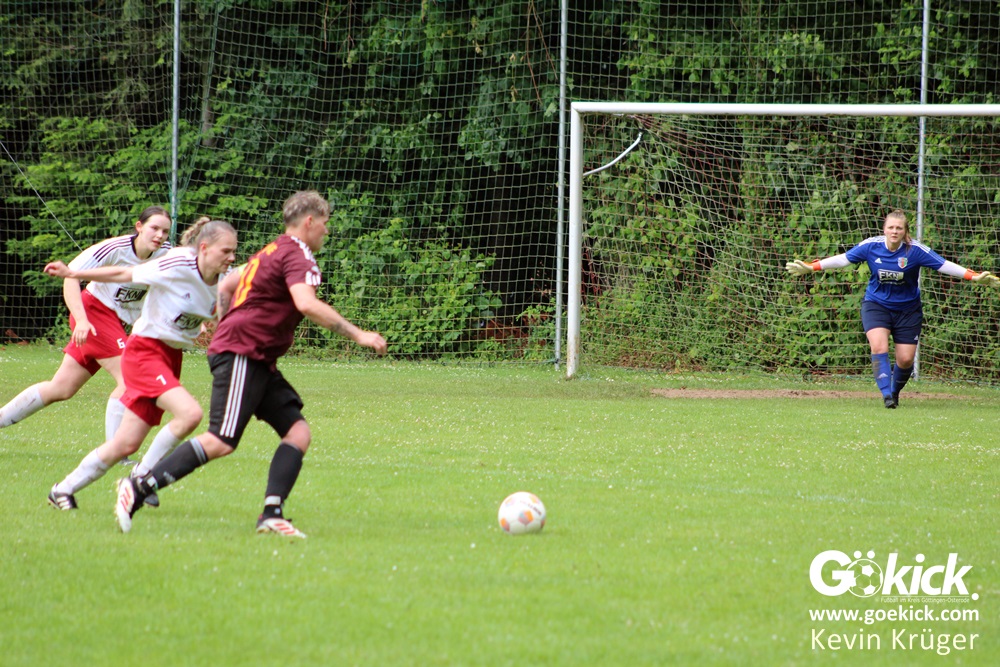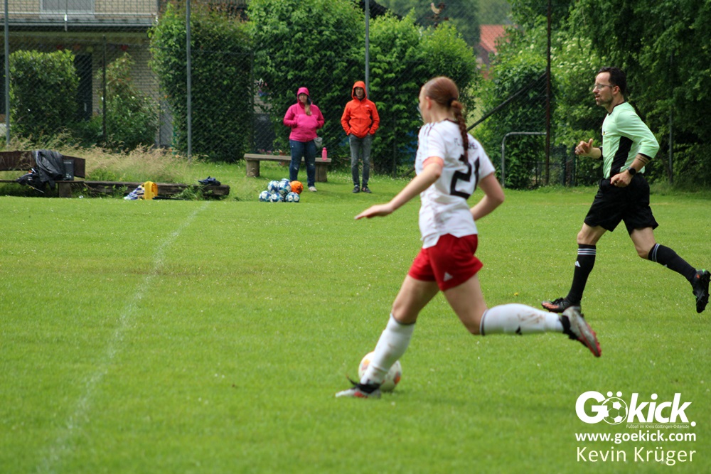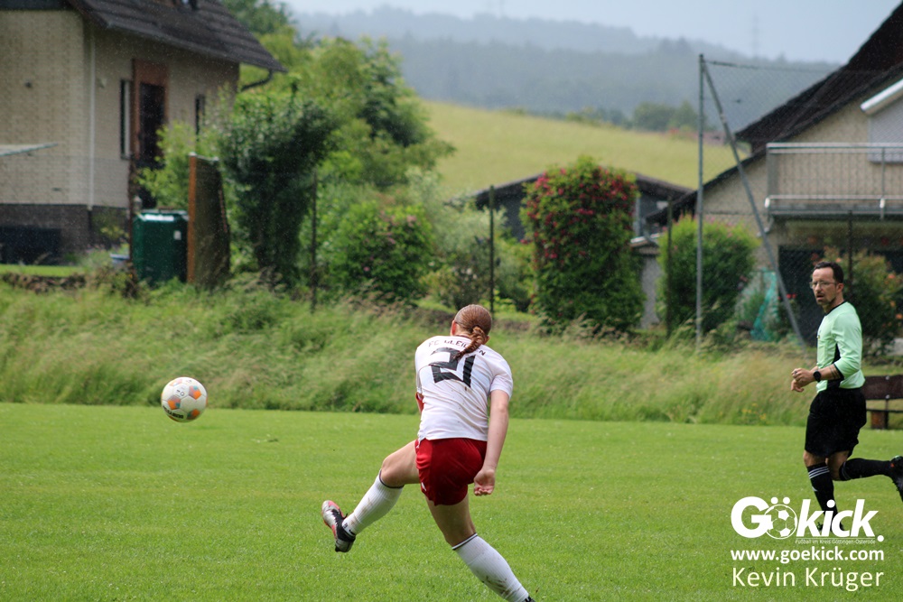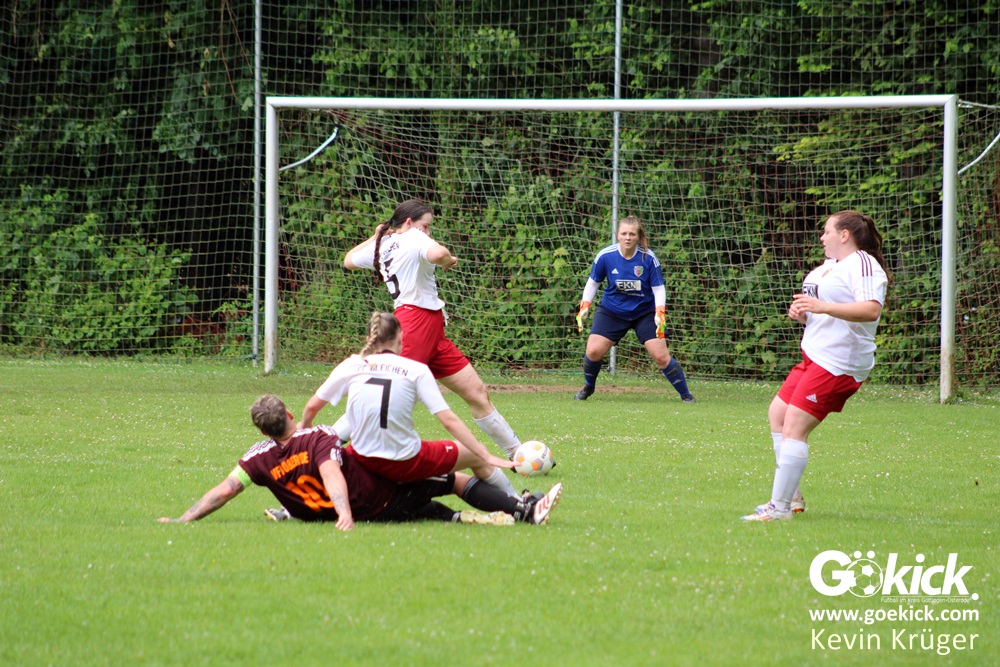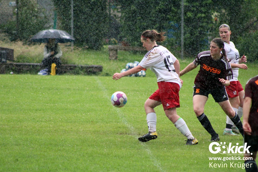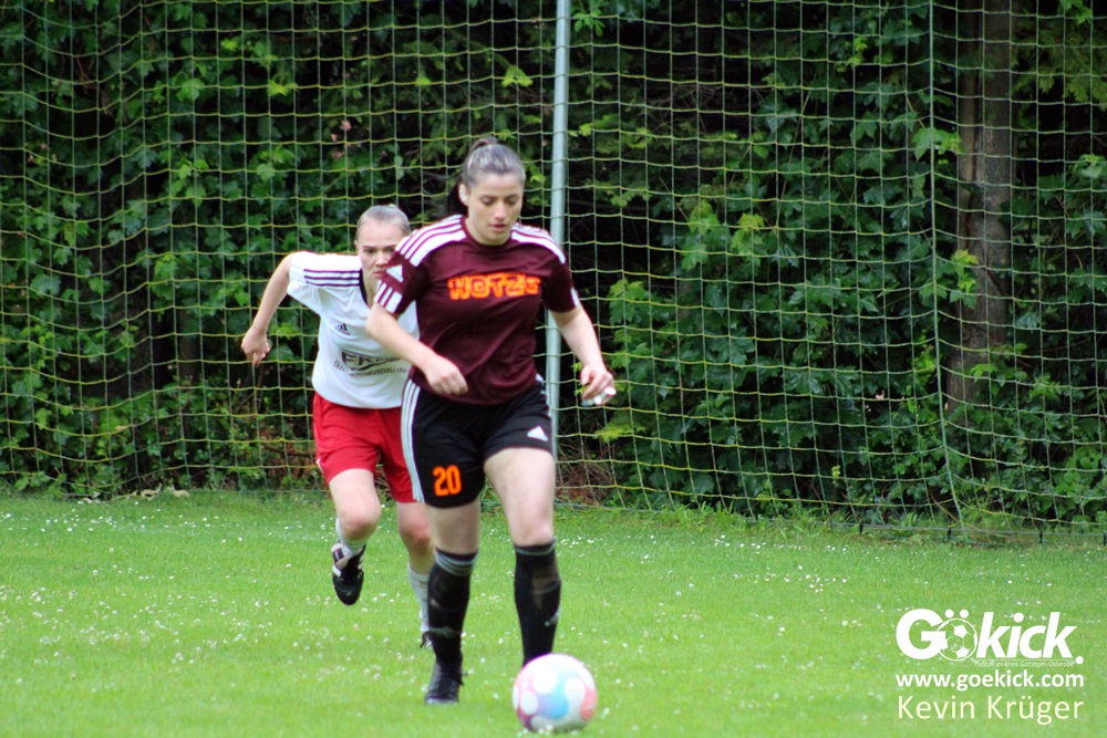 Kurz nach der Halbzeit geht Jule Friedrichs ins Pressing gegen die Innenverteidigerin von Oberode und gewinnt den Ball und läuft somit alleine auf die herauseilende Torfrau. Friedrichs bleibt kalt und schiebt zum 0:4 ein. Ein gutes Ergebnis für die Restzeit, weil langsam auch die Kräfte schwanden. Nur zwei Minuten später erzielt Juliane Regehr das 1:4 und drei Minuten später Vanessa Drueke per Freistoß das 2:4. Hoffnung kam auf. Aber dafür macht Oberode einfach zu wenig. Und in der 52. Minute ist es wieder Rebekka Rittmeier, die sich wieder aus der Distanz das Herz nimmt und sehenswert in das obere rechte Eck abschließt und das 2:5 erzielte.