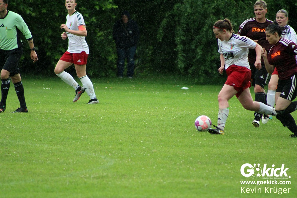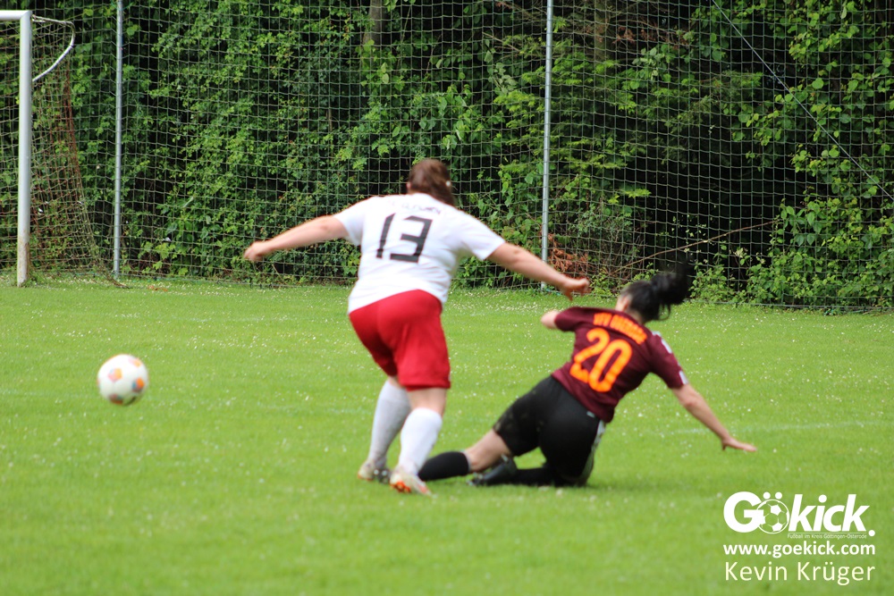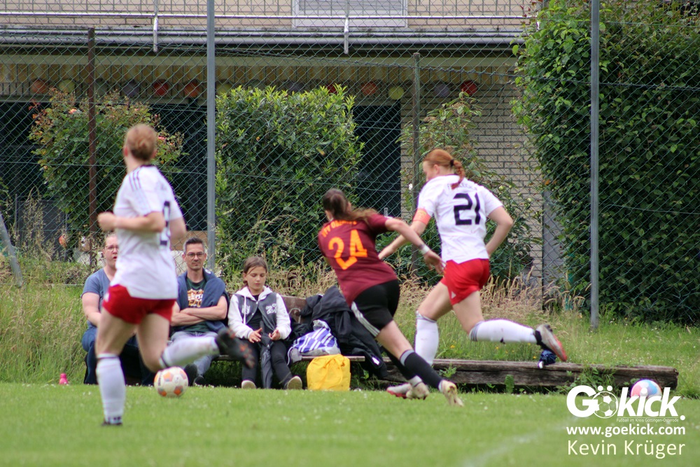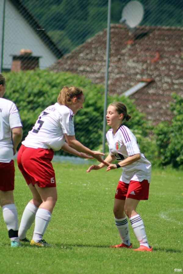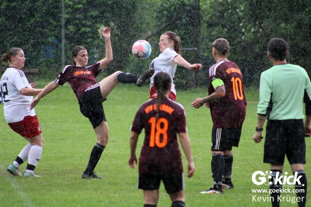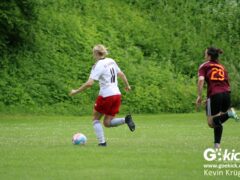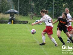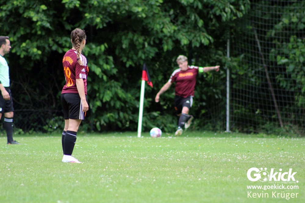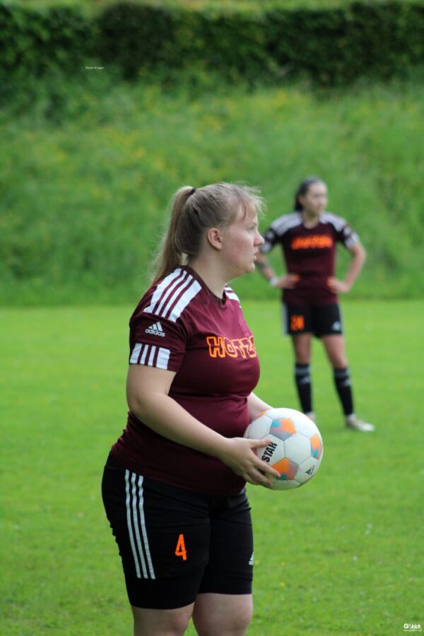 Kurz nach der Halbzeit geht Jule Friedrichs ins Pressing gegen die Innenverteidigerin von Oberode und gewinnt den Ball und läuft somit alleine auf die herauseilende Torfrau. Friedrichs bleibt kalt und schiebt zum 0:4 ein. Ein gutes Ergebnis für die Restzeit, weil langsam auch die Kräfte schwanden. Nur zwei Minuten später erzielt Juliane Regehr das 1:4 und drei Minuten später Vanessa Drueke per Freistoß das 2:4. Hoffnung kam auf. Aber dafür macht Oberode einfach zu wenig. Und in der 52. Minute ist es wieder Rebekka Rittmeier, die sich wieder aus der Distanz das Herz nimmt und sehenswert in das obere rechte Eck abschließt und das 2:5 erzielte.