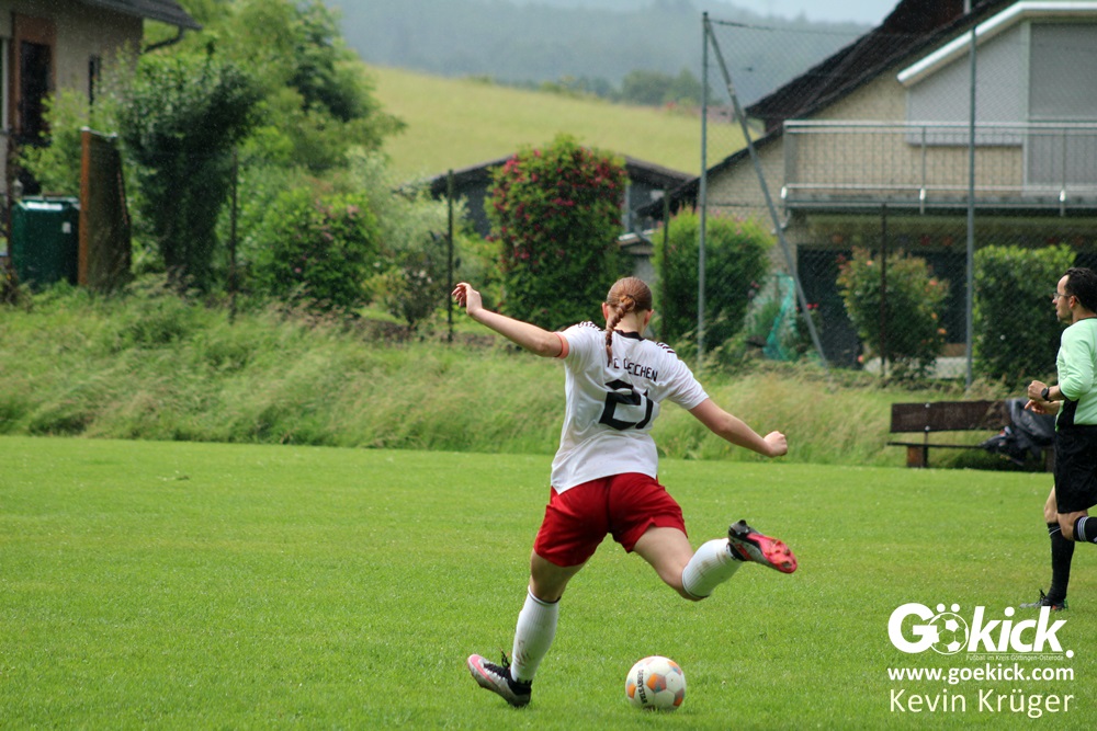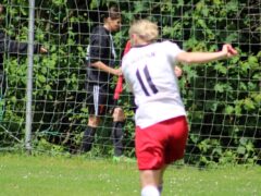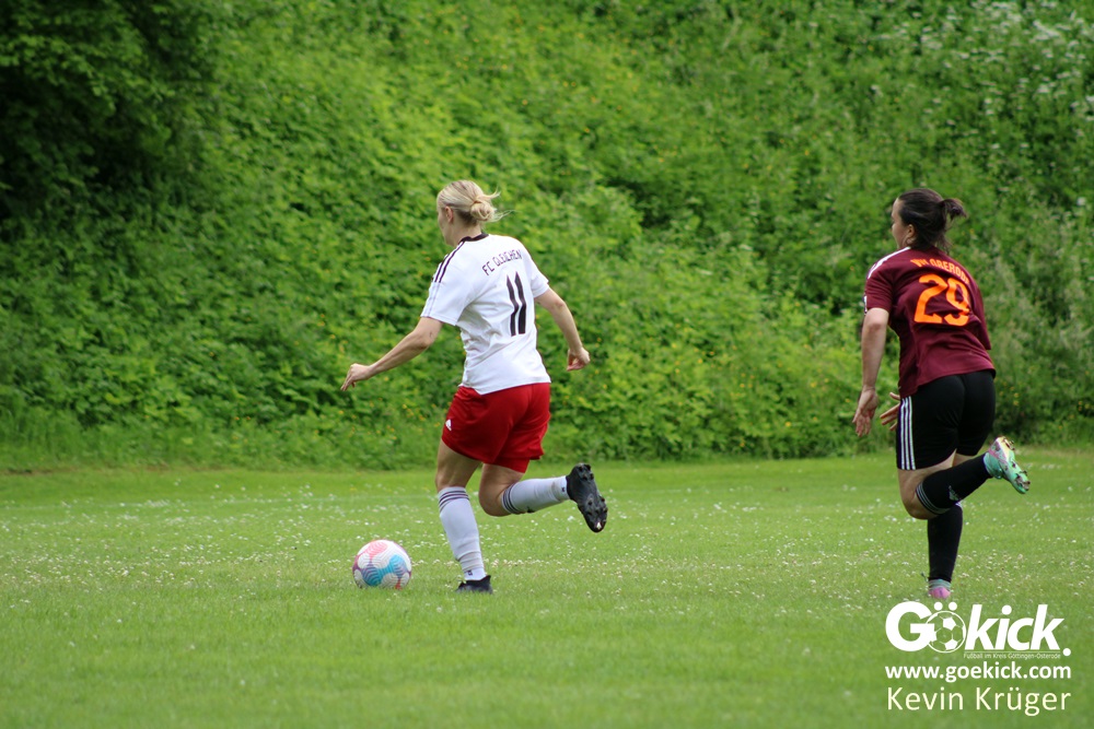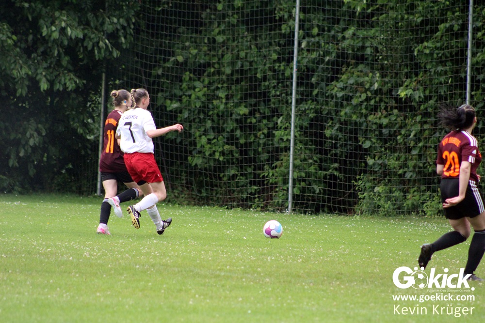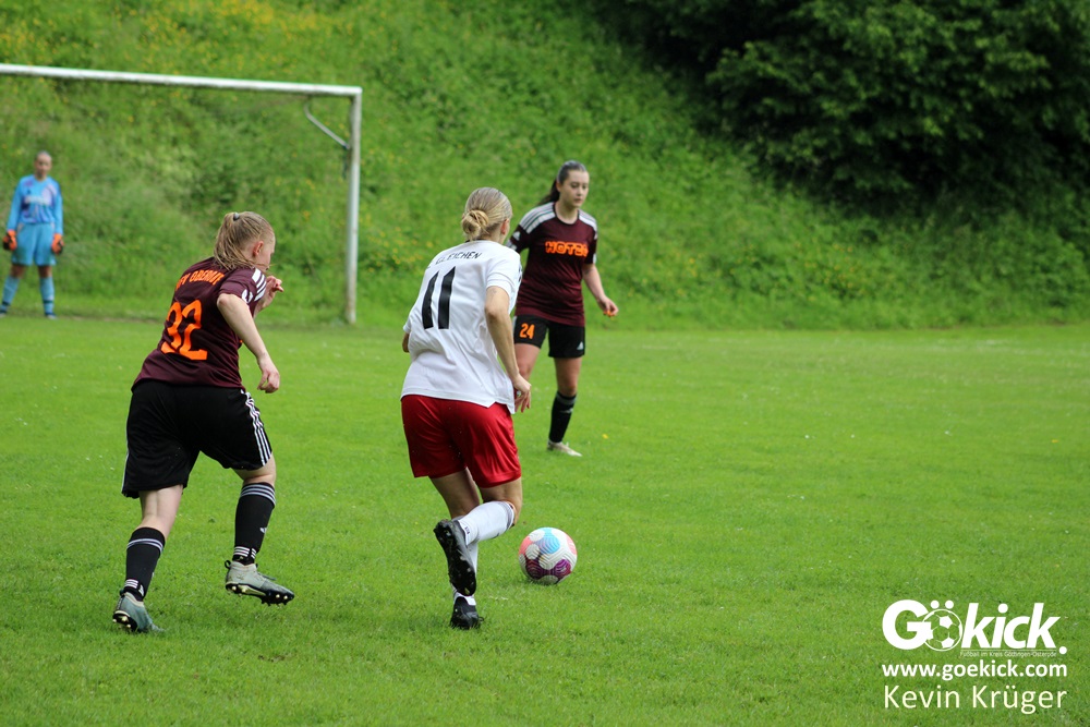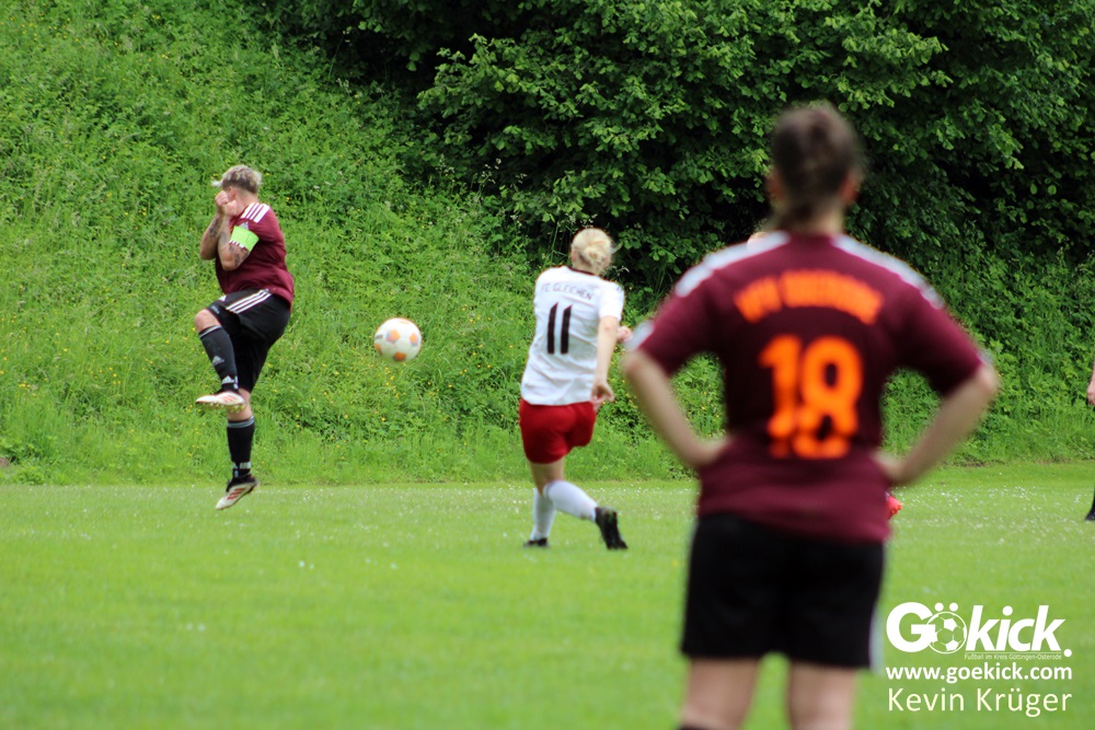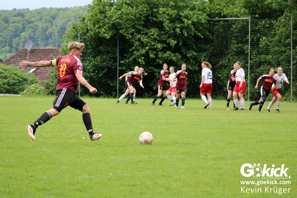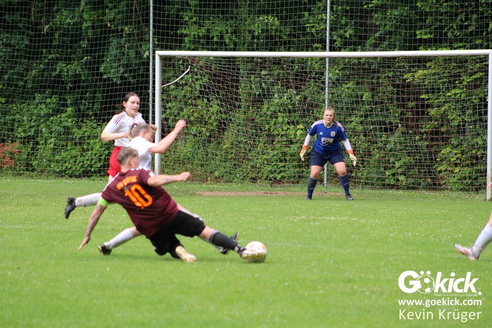 Kurz nach der Halbzeit geht Jule Friedrichs ins Pressing gegen die Innenverteidigerin von Oberode und gewinnt den Ball und läuft somit alleine auf die herauseilende Torfrau. Friedrichs bleibt kalt und schiebt zum 0:4 ein. Ein gutes Ergebnis für die Restzeit, weil langsam auch die Kräfte schwanden. Nur zwei Minuten später erzielt Juliane Regehr das 1:4 und drei Minuten später Vanessa Drueke per Freistoß das 2:4. Hoffnung kam auf. Aber dafür macht Oberode einfach zu wenig. Und in der 52. Minute ist es wieder Rebekka Rittmeier, die sich wieder aus der Distanz das Herz nimmt und sehenswert in das obere rechte Eck abschließt und das 2:5 erzielte.