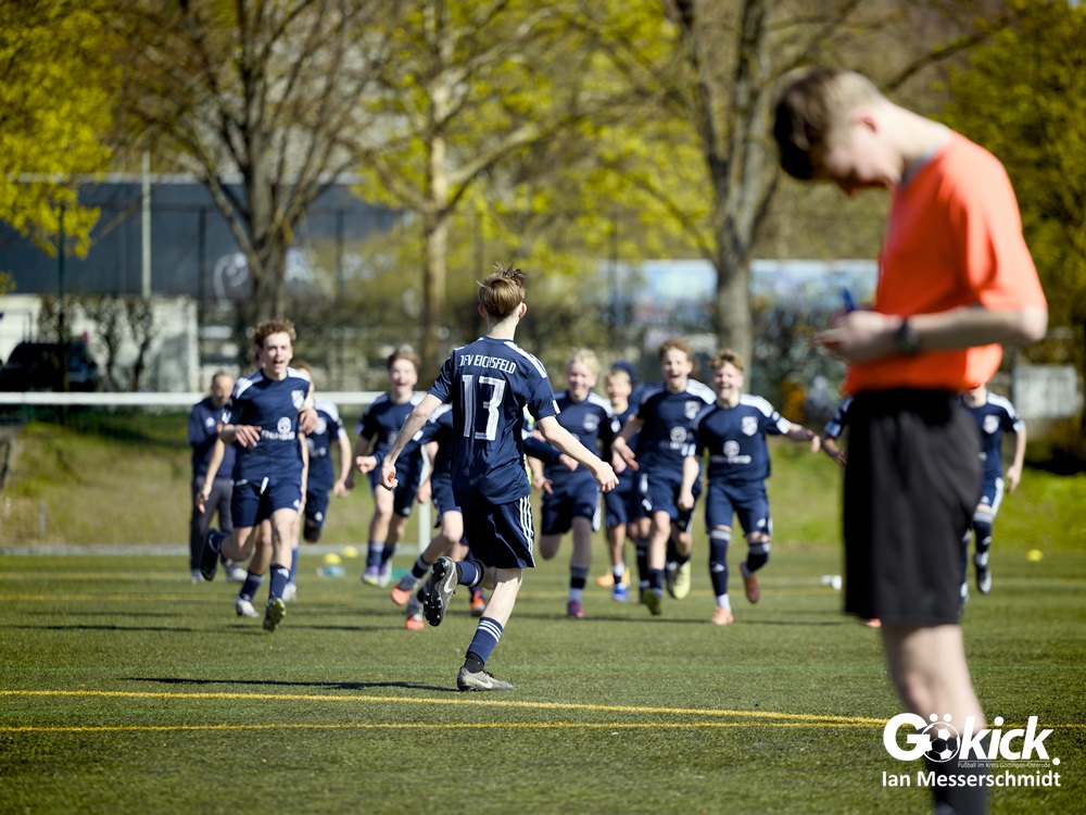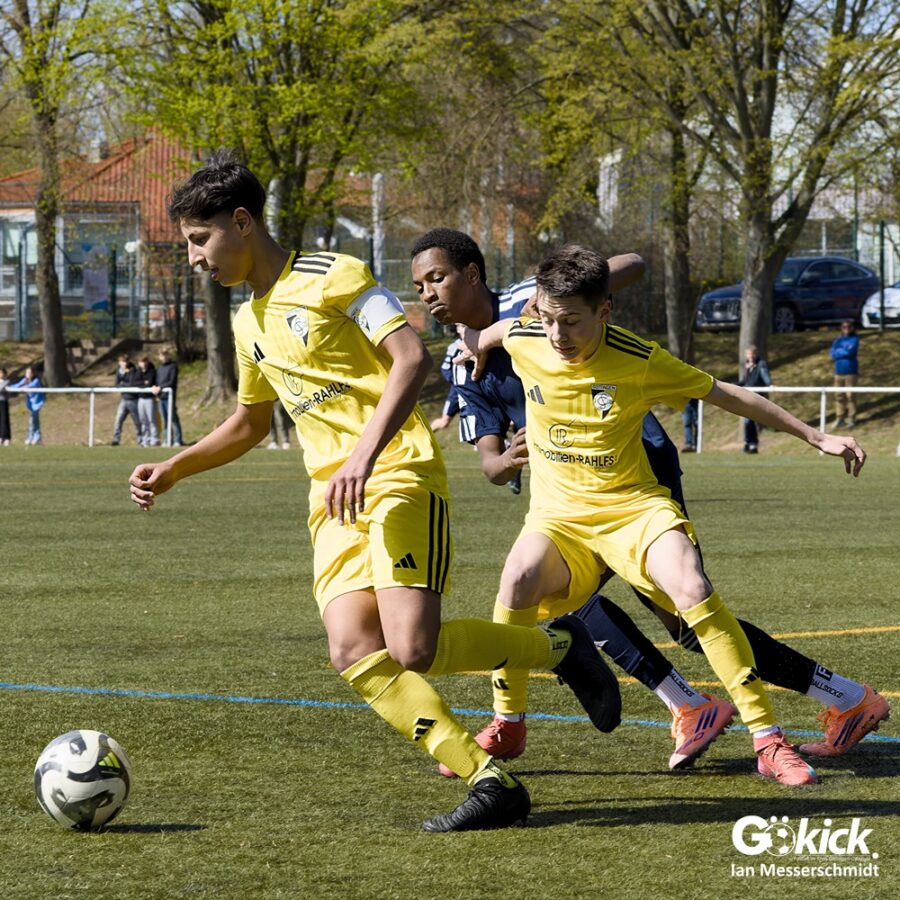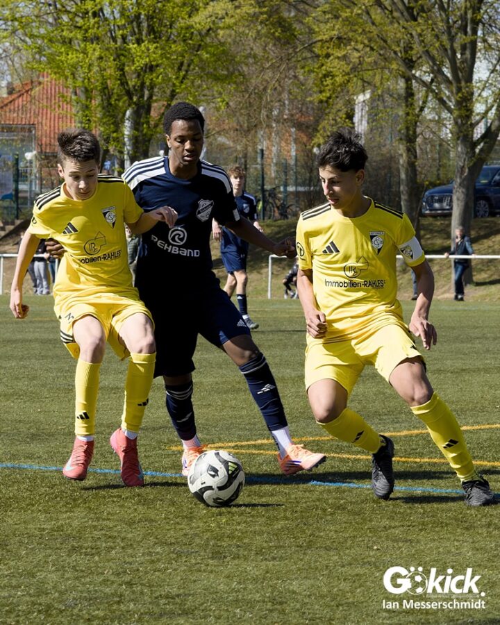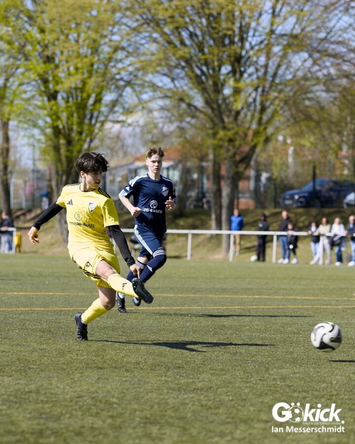 Der Gastgeber erwischte den besseren Start. Bereits in der 3. Minute brachte Titus Freckmann die Mannschaft von Trainer Serhat Yazici in Führung, nur zwei Minuten später erhöhte Noah Noel Kiy auf 2:0. Doch der JFV Eichsfeld zeigte sich unbeeindruckt vom frühen Rückstand. Moritz Felkl verkürzte in der 11. Minute, ehe Lennard Remin nur zwei Minuten später den Ausgleich erzielte. Mit dem 2:2 ging es nach 35 Minuten in die Pause.