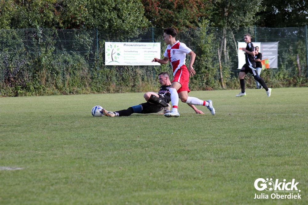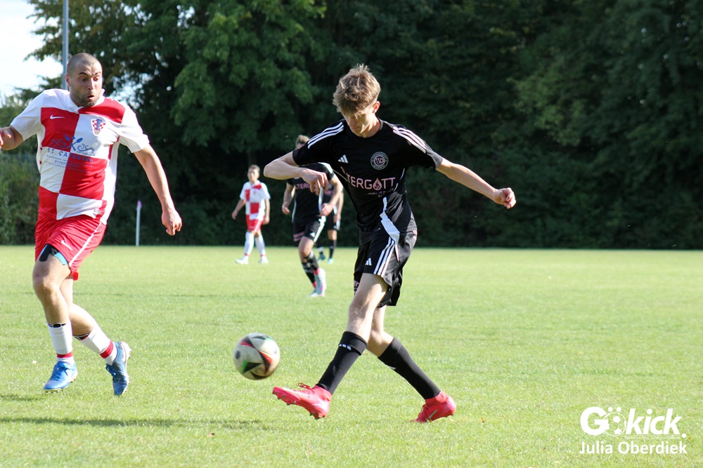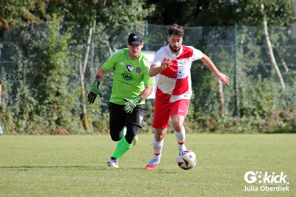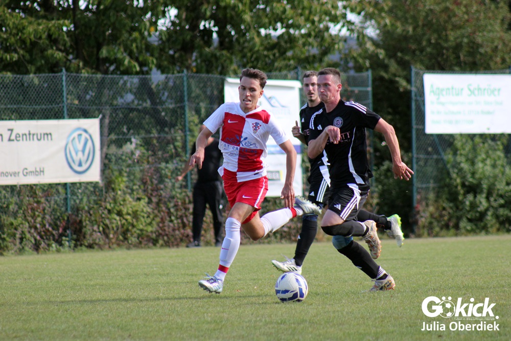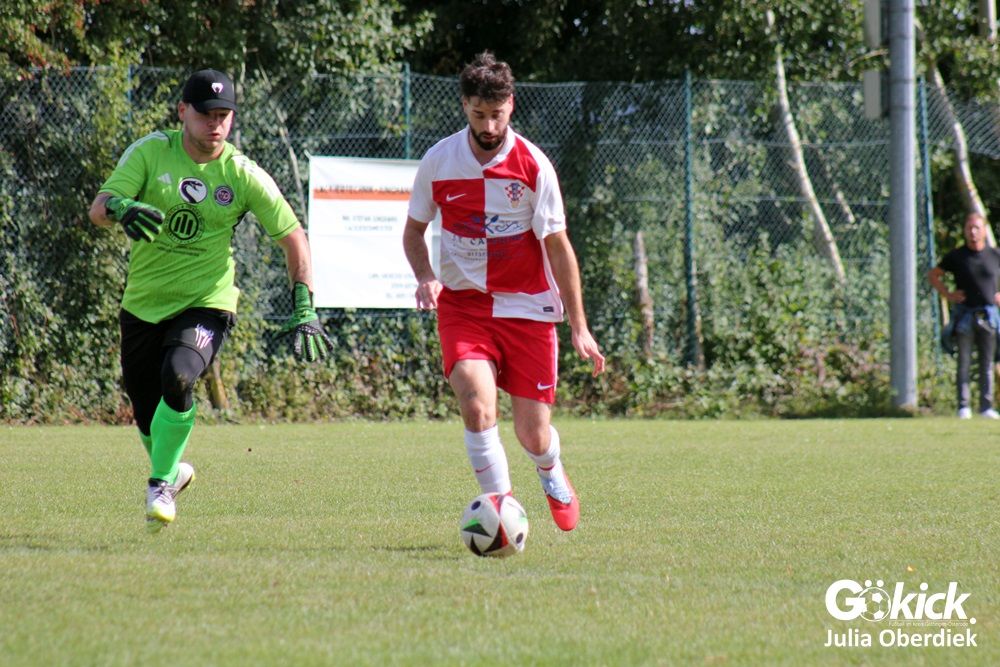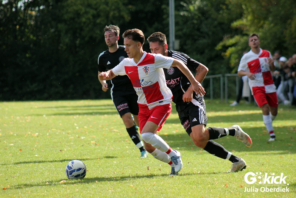 Nach Wiederanpfiff erzielte Kevin Theil in der 49. Minute den Ausgleich für die Gastgeber von Trainer Chris Behrens. Niko Grgic brachte die Gäste in der 54. Minute mit seinem zweiten Tagestreffer erneut in Führung. Nur zwei Minuten später legte Luka Simic das 2:4 nach. In der 62. Spielminute stellte Schiedsrichter Dieter Fink einen Kroaten mit Gelb-Roter Karte vom Platz. In Überzahl verkürzte Kevin Theil in der Nachspielzeit (90+6‘) auf 3:4. Doch zu mehr reichte es am Ende nicht.
