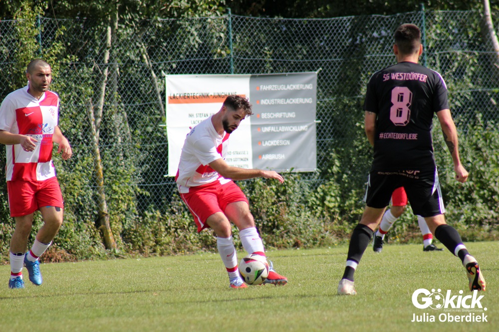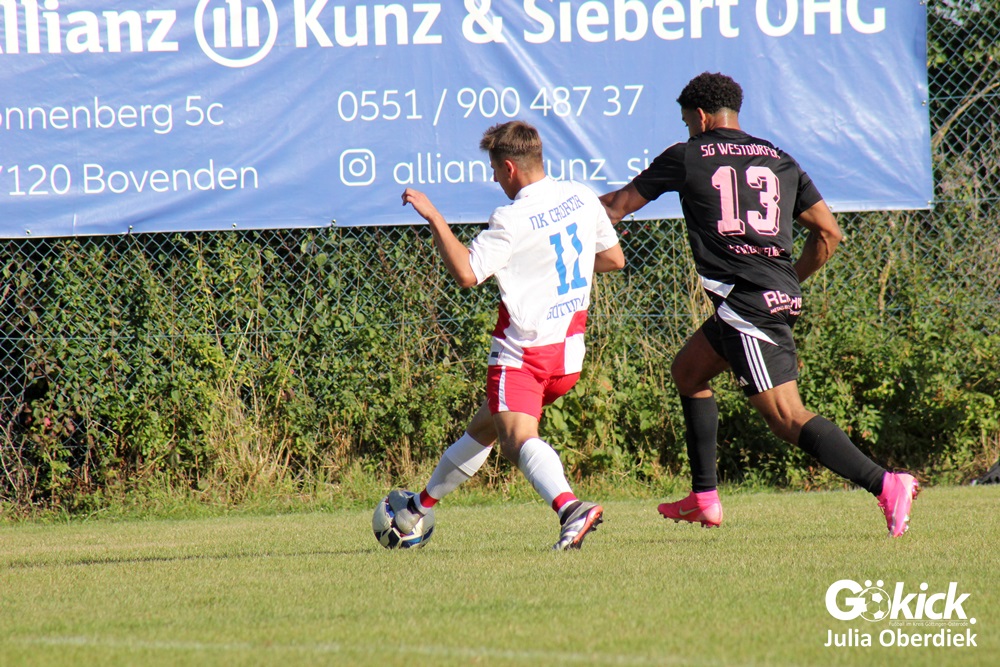 Bei bestem Fußballwetter entwickelte sich in Mengershausen ein packendes und hart umkämpftes Spiel der 2. Kreisklasse Süd zwischen der SG Westdörfer und NK Croatia Göttingen. Am Ende setzten sich die Gäste knapp, aber verdient mit 3:4 (1:2) durch.