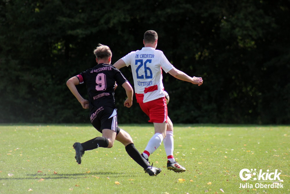Ein torreiches und emotionales Duell, in dem NK Croatia Göttingen dank einer starken Phase rund um den Halbzeitpfiff die drei Punkte mit nach Hause nehmen konnte. Die SG Westdörfer kämpfte bis zuletzt, musste sich aber trotz großem Einsatz knapp geschlagen geben.
