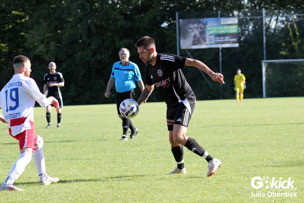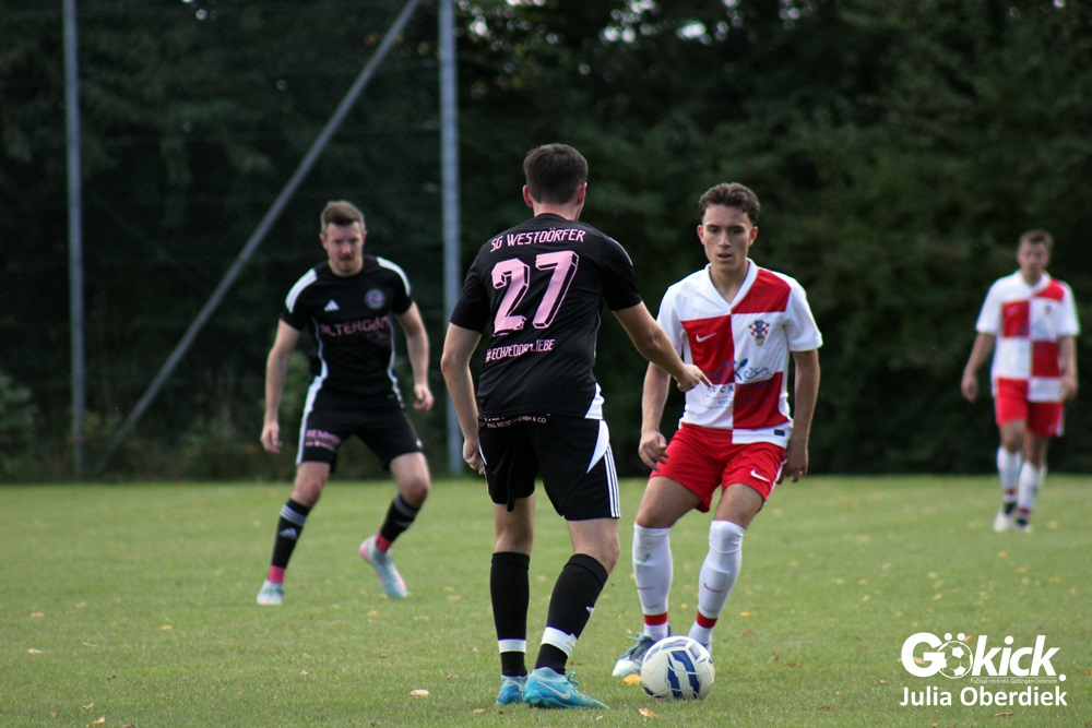 Die Partie begann furios: Bereits in der 3. Minute brachte Robert Zovko NK Croatia in Führung. Doch die Antwort der SG Westdörfer ließ nicht lange auf sich warten – Connor Hoch traf in der 13. Minute zum 1:1. In der Folge blieb das Spiel intensiv, beide Teams schenkten sich nichts. Kurz vor der Pause sorgte Niko Grgic mit einem Treffer in der Nachspielzeit für die erneute Führung der Gäste.
