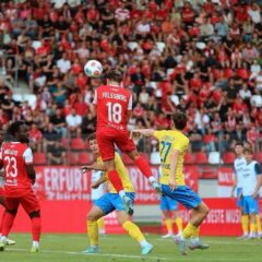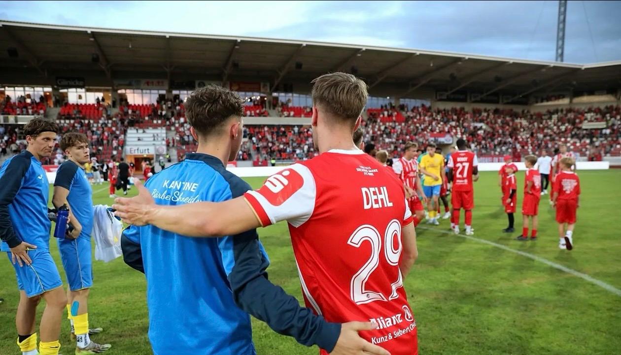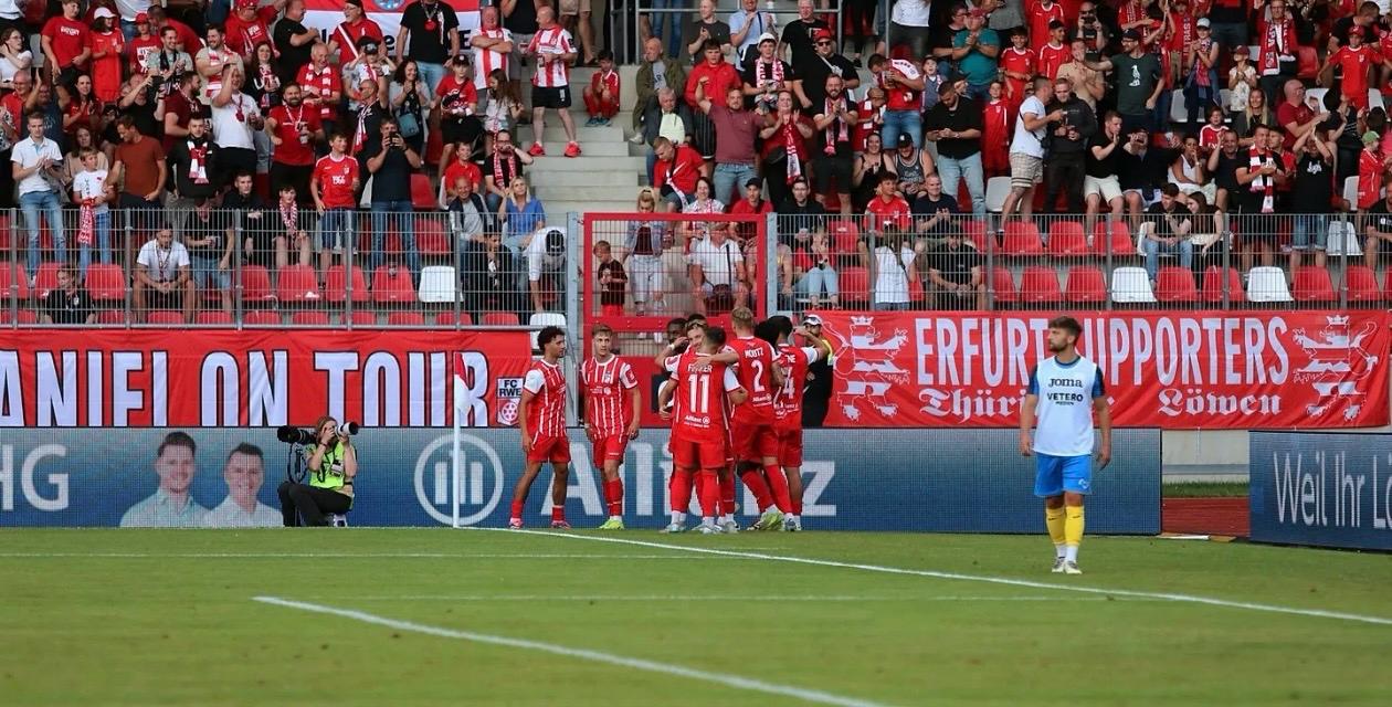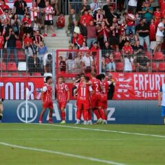 Nach dem Abpfiff durch Schiedsrichter Kai Kaltwaßer stand für Erfurt die bittere Erkenntnis: Trotz einer 2:0-Führung reichte es nicht zum Sieg. Der Chemnitzer FC dagegen bewies große Moral und entführte einen Zähler aus Thüringen. Am Sonntag dann eroberte der Vorjahres-Meister 1. FC Lok Leipzig mit einem 7:2-Sieg bei Hertha BSC II die Tabellenführung. Erfurt ist punktgleicher Zweiter.