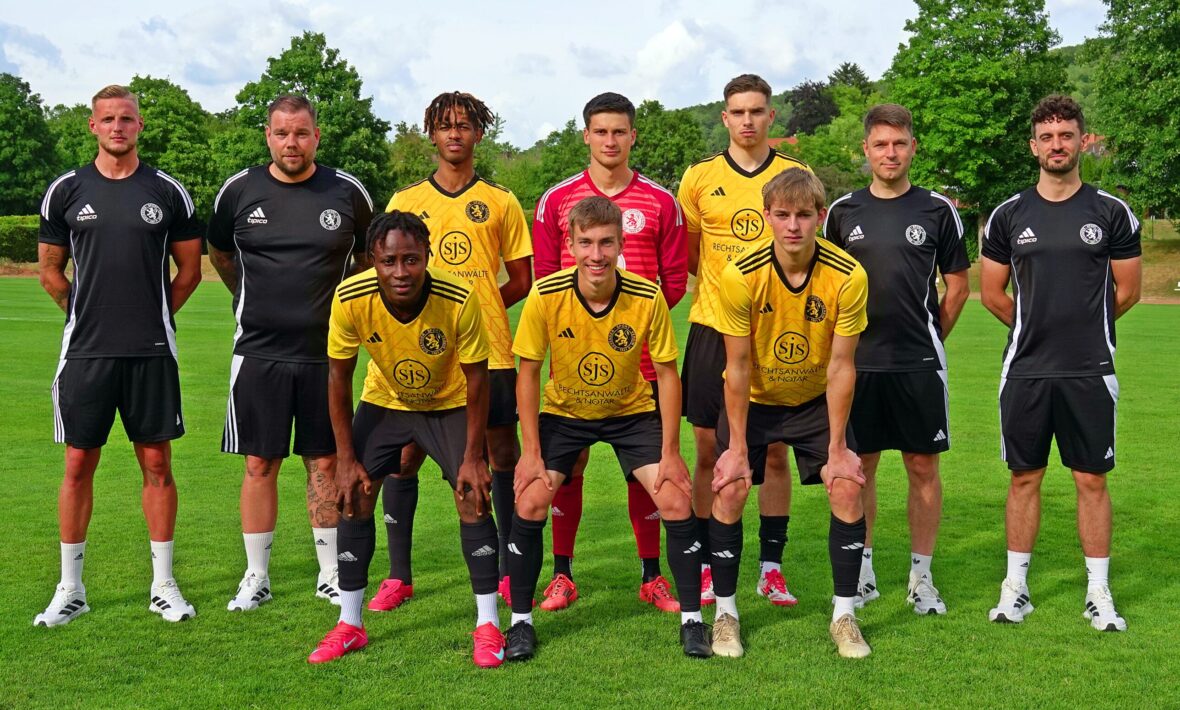 Titelfoto, die Neuzugänge: Hintere Reihe (vl.): Trainer Yannick Broscheit, Torwarttrainer Tobi Vogel, Mohamed N‘Kony Taboure, Theodor Bachmann, Finn Ellenberger, Fußball-Abteilungsleiter Daniel Vollbrecht, Athletiktrainer Arwed Harmsen; vorne (vl.): Dennis Forkpah, Michael Maier, Jona Wehofsky
