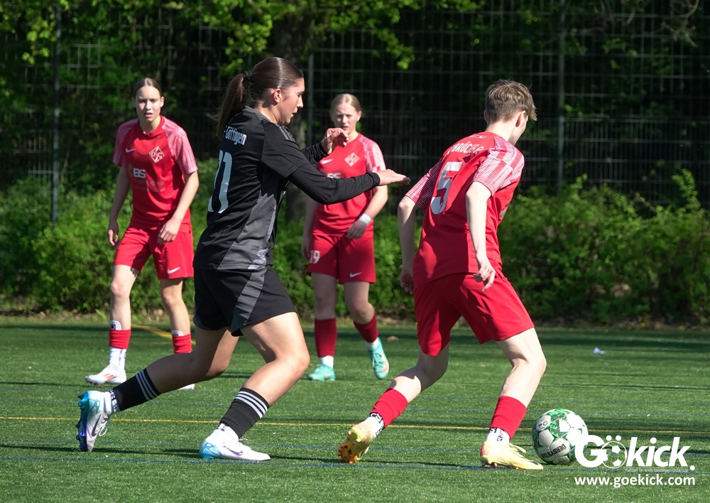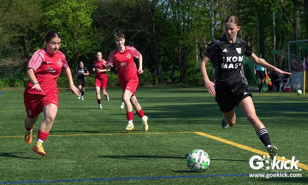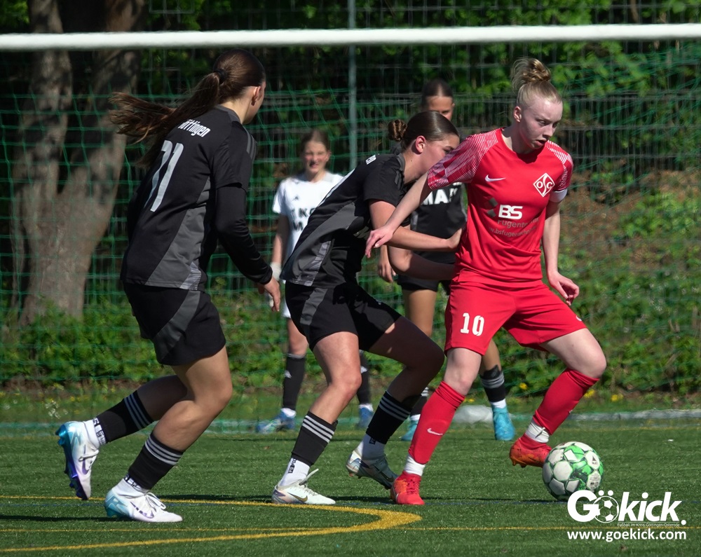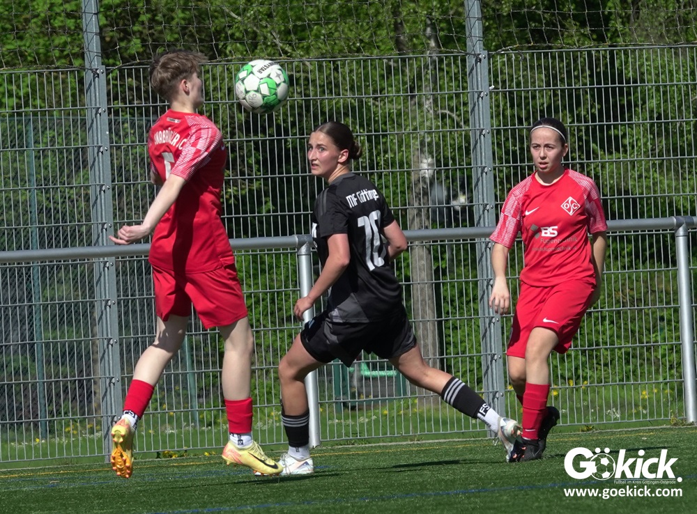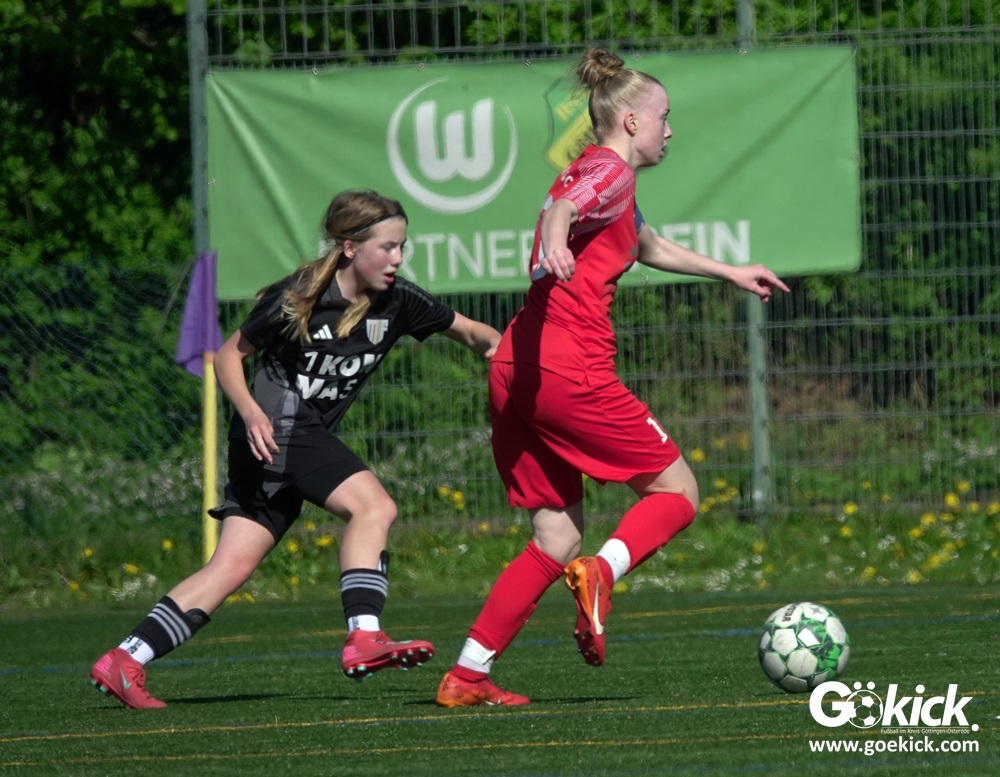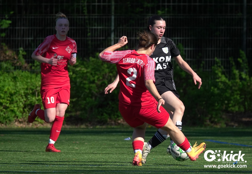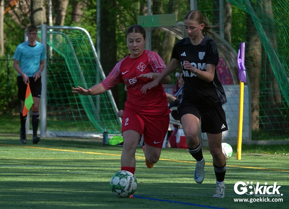 Einen Klassenunterschied konnten die Beobachter der Partie in der ersten Halbzeit nicht erkennen. Lediglich die beiden Osnabrückerinnen Josefine Wehage und Clara Bockrath Esparza zeigten, dass sie in ihrer fußballerischen Entwicklung Ausnahme-Talente sind. Dennoch gelang es dem Gastgeber, seinen Kasten sauber zu halten und selbst eigene, gefährliche Angriffe zu inszenieren. Torlos wurden die Seiten gewechselt.