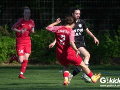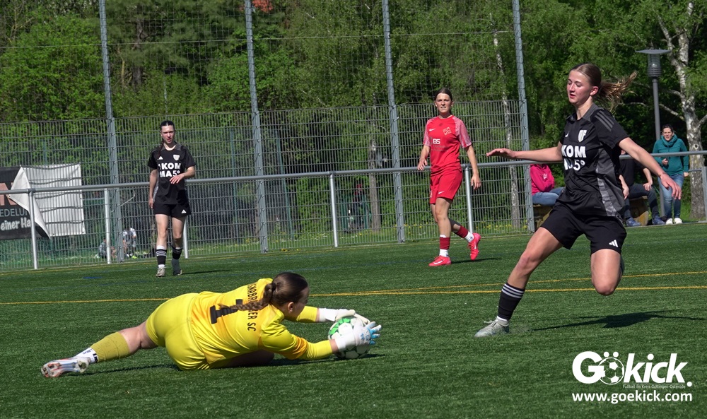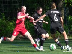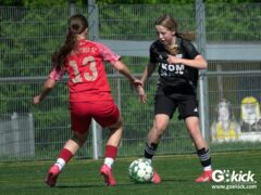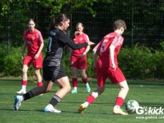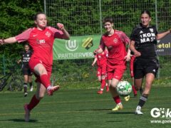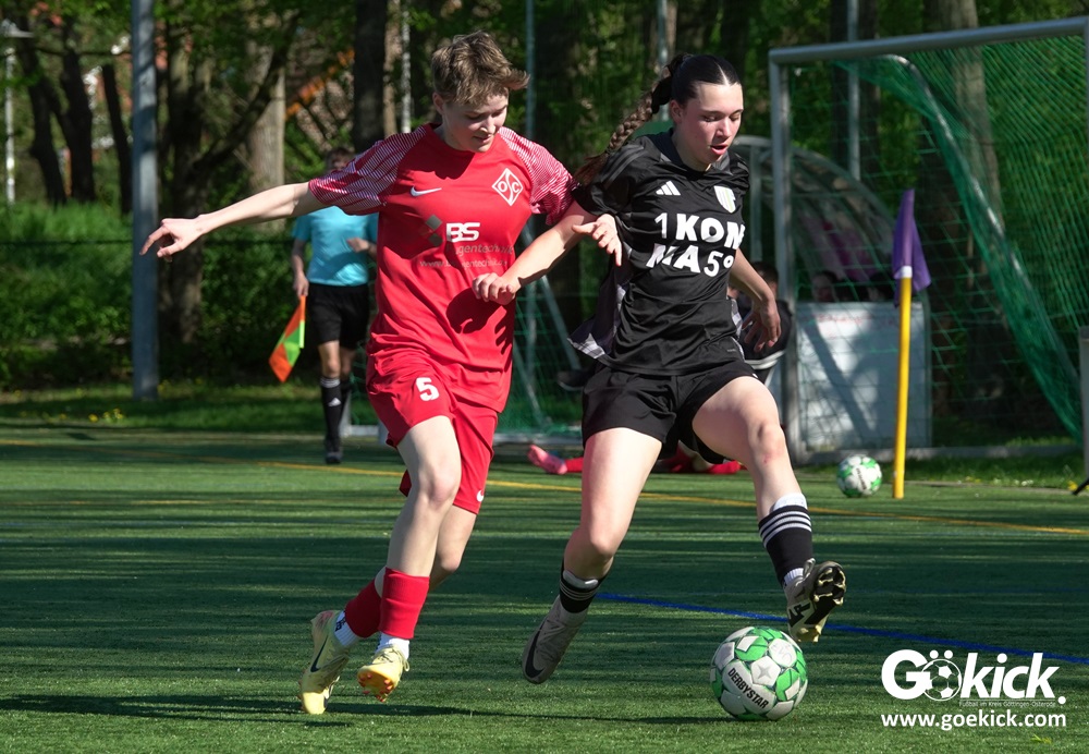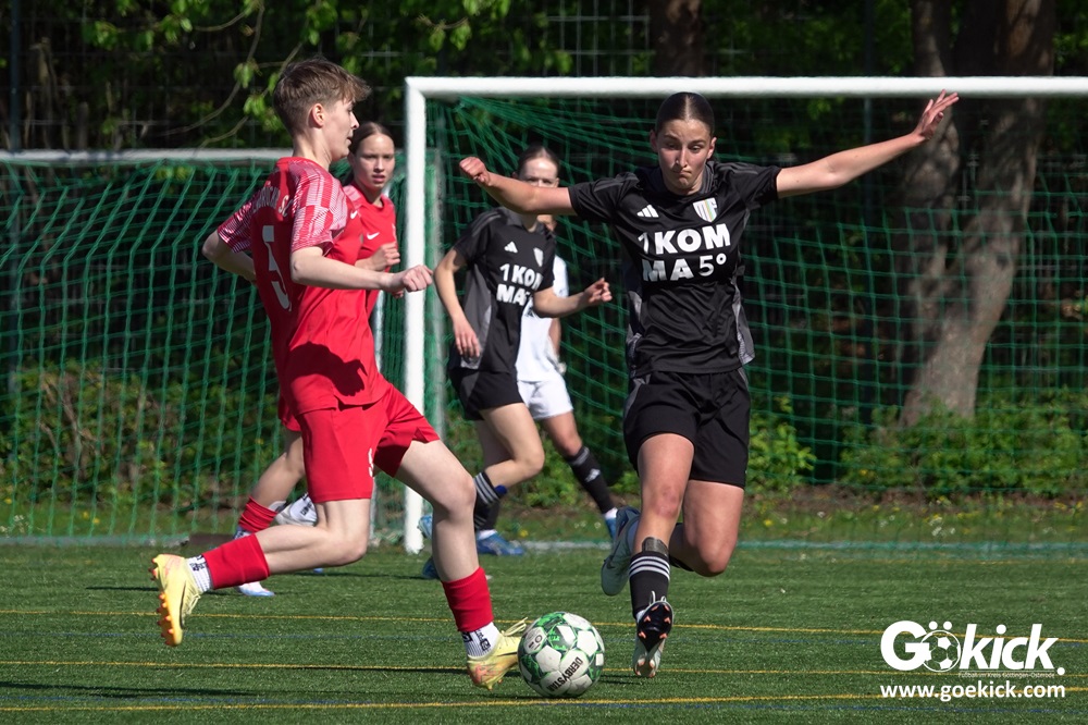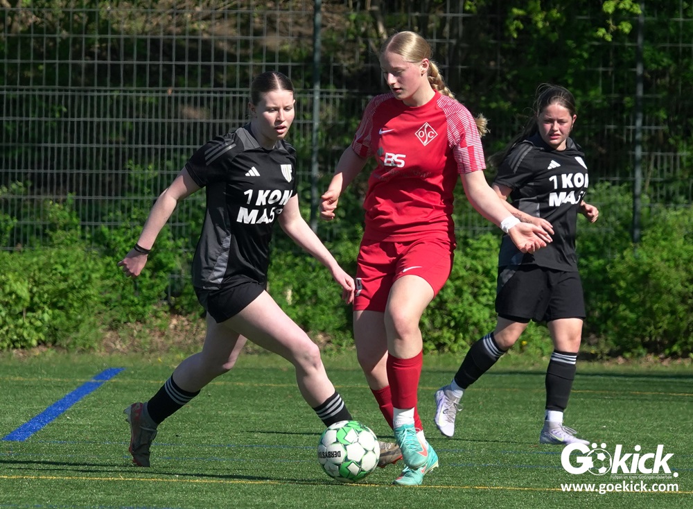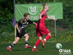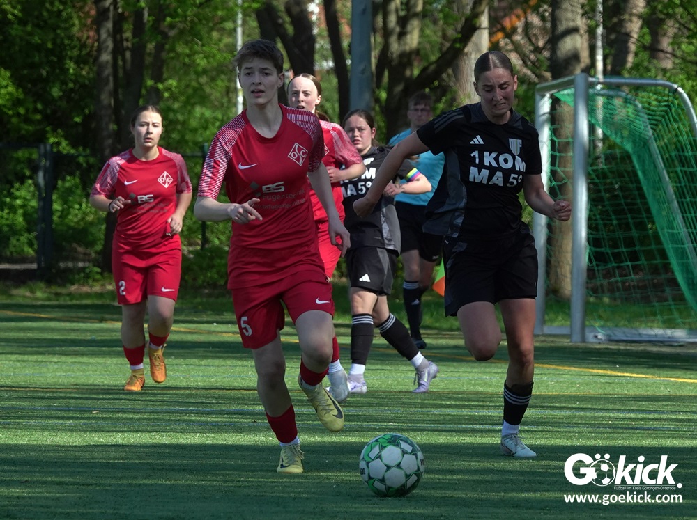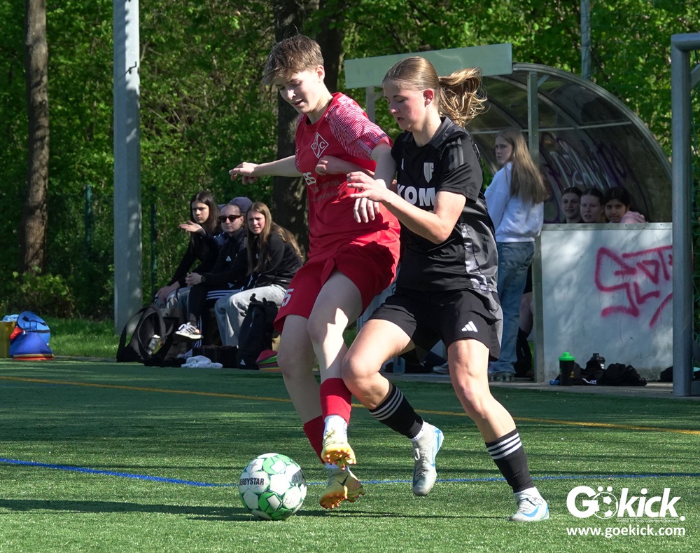 Einen Klassenunterschied konnten die Beobachter der Partie in der ersten Halbzeit nicht erkennen. Lediglich die beiden Osnabrückerinnen Josefine Wehage und Clara Bockrath Esparza zeigten, dass sie in ihrer fußballerischen Entwicklung Ausnahme-Talente sind. Dennoch gelang es dem Gastgeber, seinen Kasten sauber zu halten und selbst eigene, gefährliche Angriffe zu inszenieren. Torlos wurden die Seiten gewechselt.