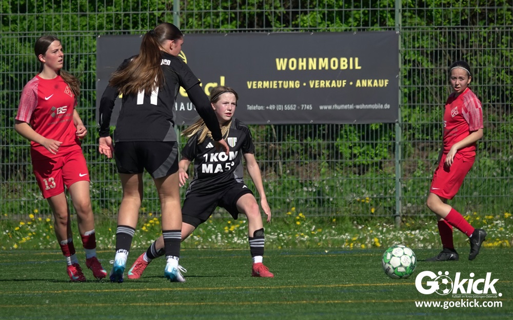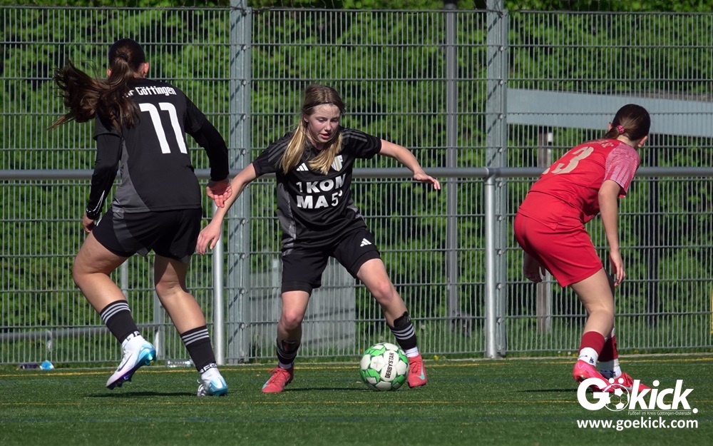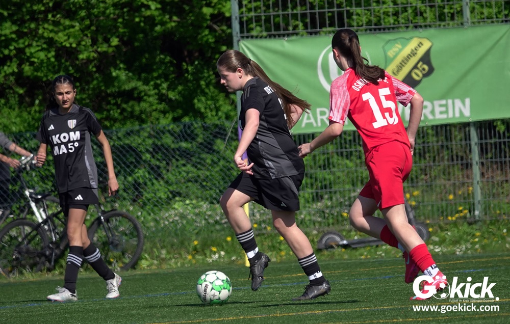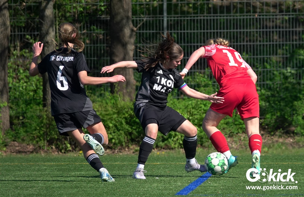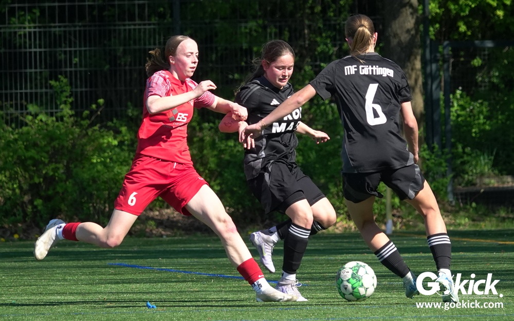 Die B-Mädchen des MF Göttingen hatten in der Niedersachsenliga am vergangenen Samstag auf dem Kunstrasenplatz in Geismar den Tabellenzweiten, den ehemaligen Bundesligisten Osnabrücker SC, zu Gast. Und erneut boten die Göttinger Mädchen einem Spitzenteam lange Zeit einen großen Kampf. Dass das Team von Trainer Nicolas Meier am Ende mit 1:3 (0:0) unterlag, relativiert die Aussage nicht, weil die Gäste, ähnlich wie schon der Spitzenreiter SpVg Aurich vor wenigen Wochen, ihr Leistungsmaximum für diesen Sieg aktivieren mussten. Das Göttinger Team bleibt mit 26 Punkten Fünfter der Spielklasse.