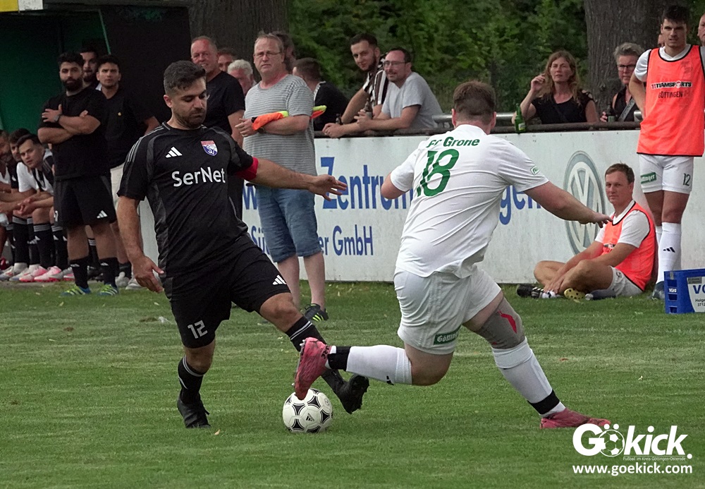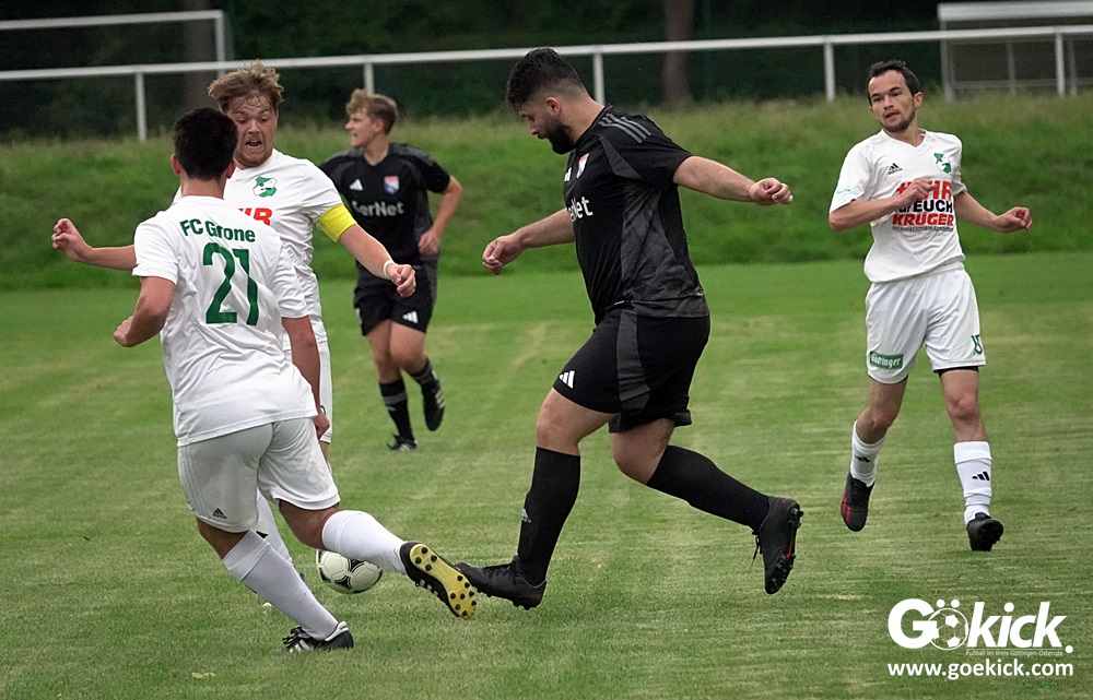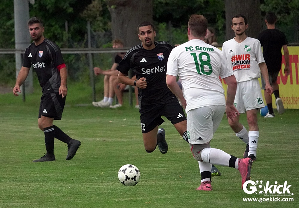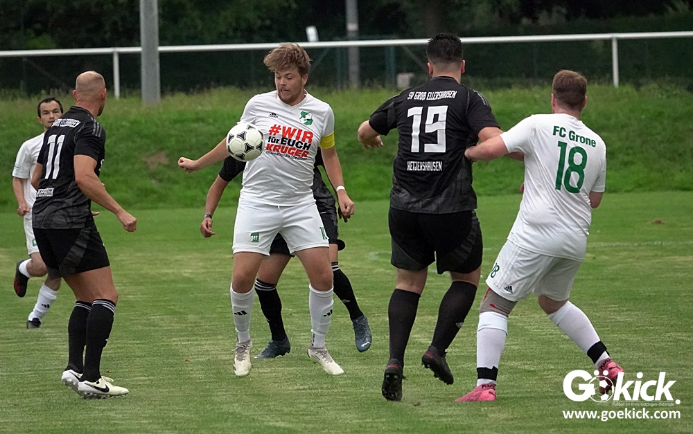 Zwei neugegründete Mannschaften standen sich am vergangenen Freitag auf dem Groner Sportplatz gegenüber. Die neue Spielgemeinschaft Elliehausen/Esebeck/Grone empfing in der 2. Kreisklasse Süd die neue, zweite Mannschaft der SV Groß Ellershausen/Hetjershausen. Während der Gastgeber bereits ein Punktspiel absolviert hatte, war es für den Nachbarn nicht nur das erste Spiel, sondern zugleich das erste Derby. Am Ende der 90 unterhaltsamen Minuten siegte der Gast, bei dem sechs Spieler mit dem Familiennamen Kaplan zum Einsatz kamen, mit 4:1 (2:0).