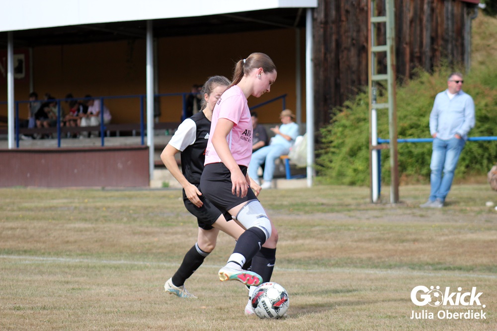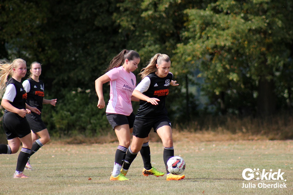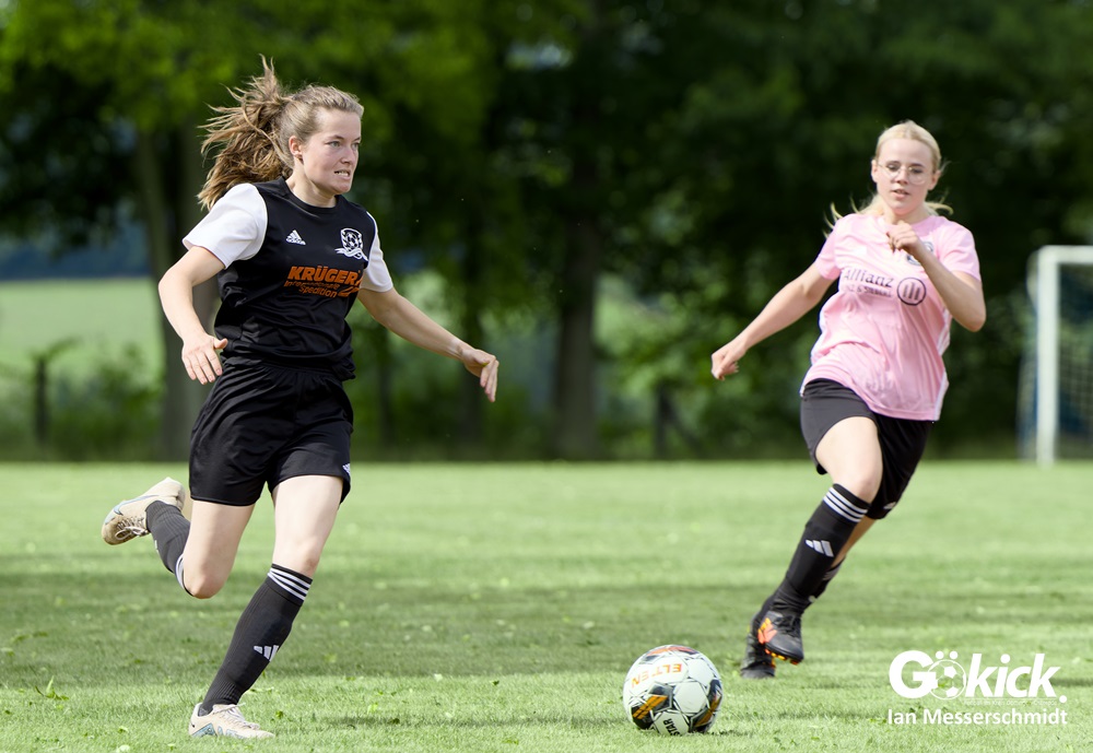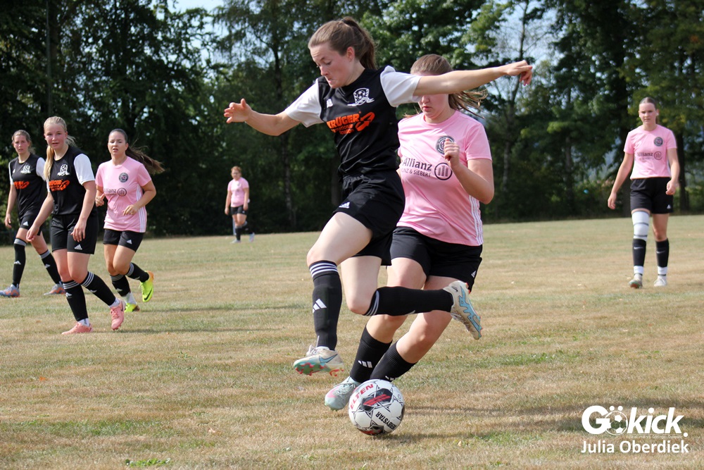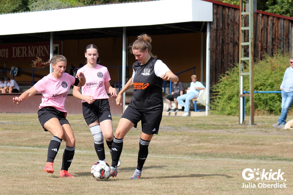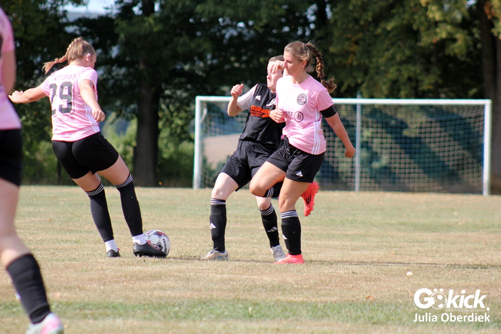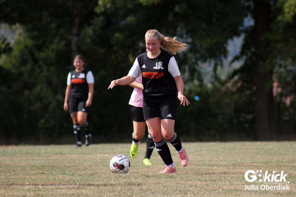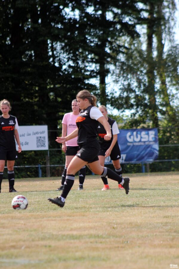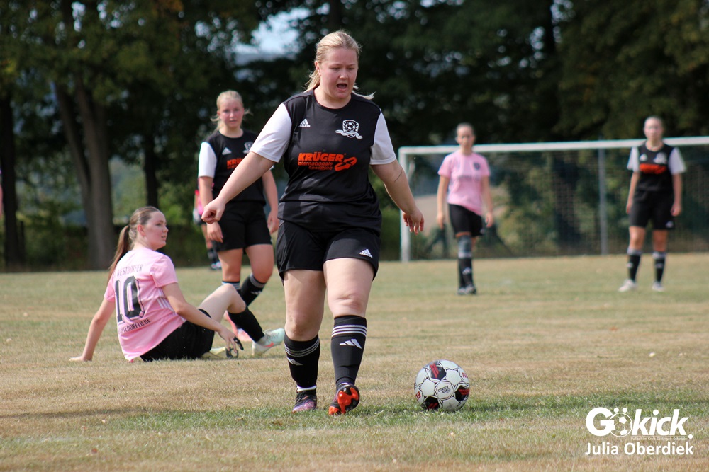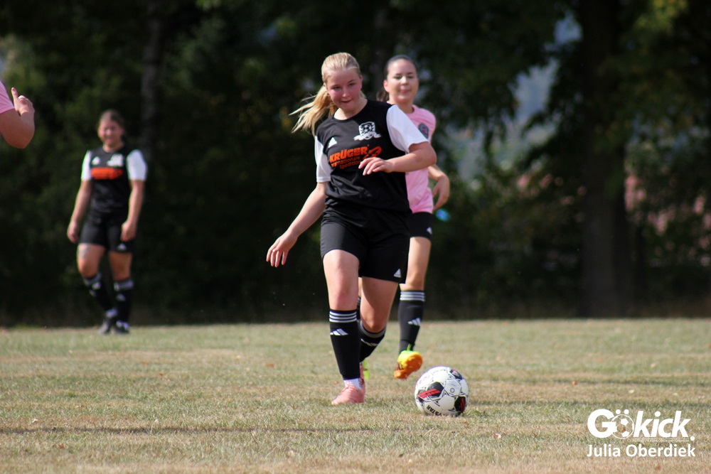 Die Partie begann mit einem Paukenschlag: Bereits in der ersten Minute erzielte Larissa Ahrend die Führung und eröffnete damit ein wahres Torfestival. Es folgten Treffer von Chantal Lutze (8.) und Nadine Schulz (29.), ehe erneut Ahrend (23.) sowie Zoe Breder (35.) die Führung auf 5:0 ausbauten. Kurz vor der Pause erhöhten Mia Sophie Weichhold (41.) und Ahrend mit ihrem dritten Treffer (45.) auf 7:0.