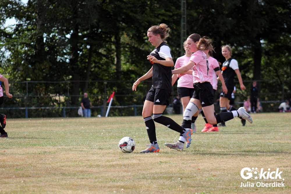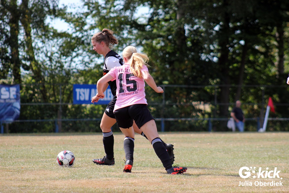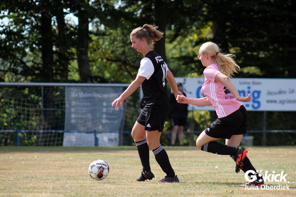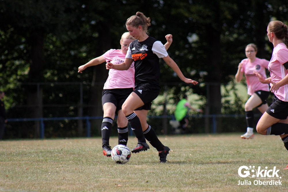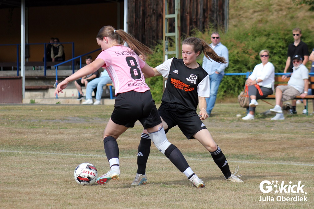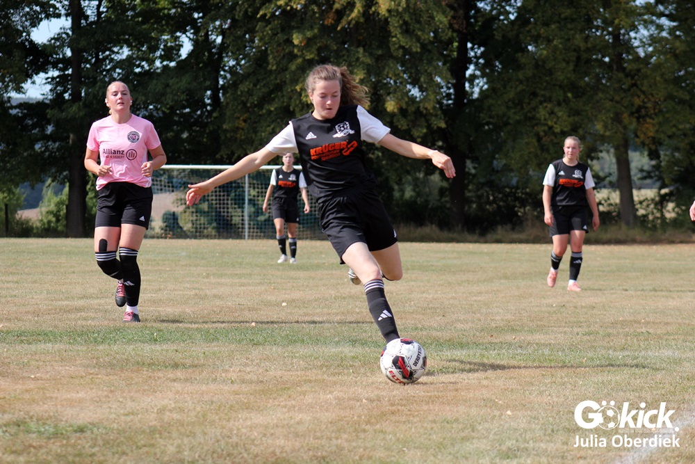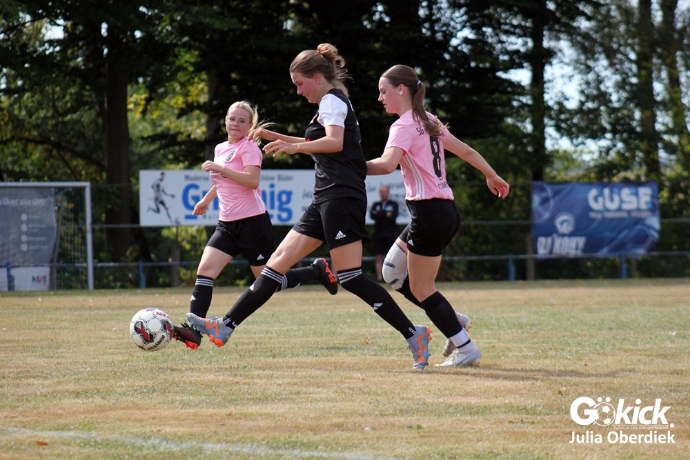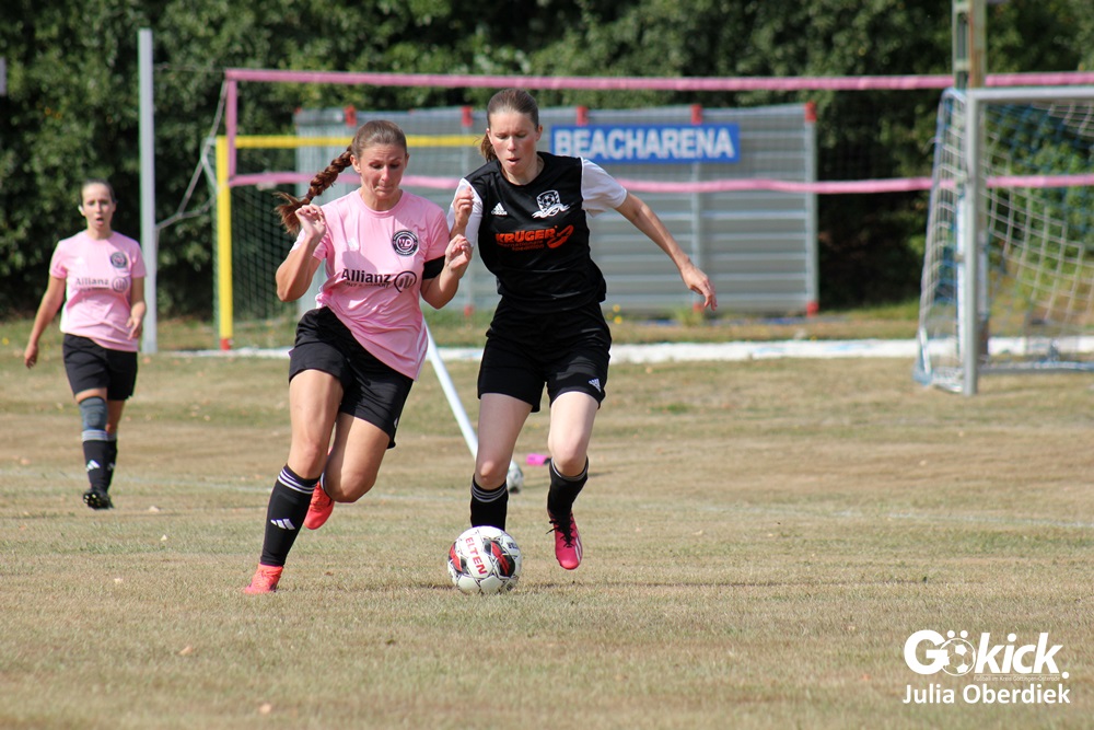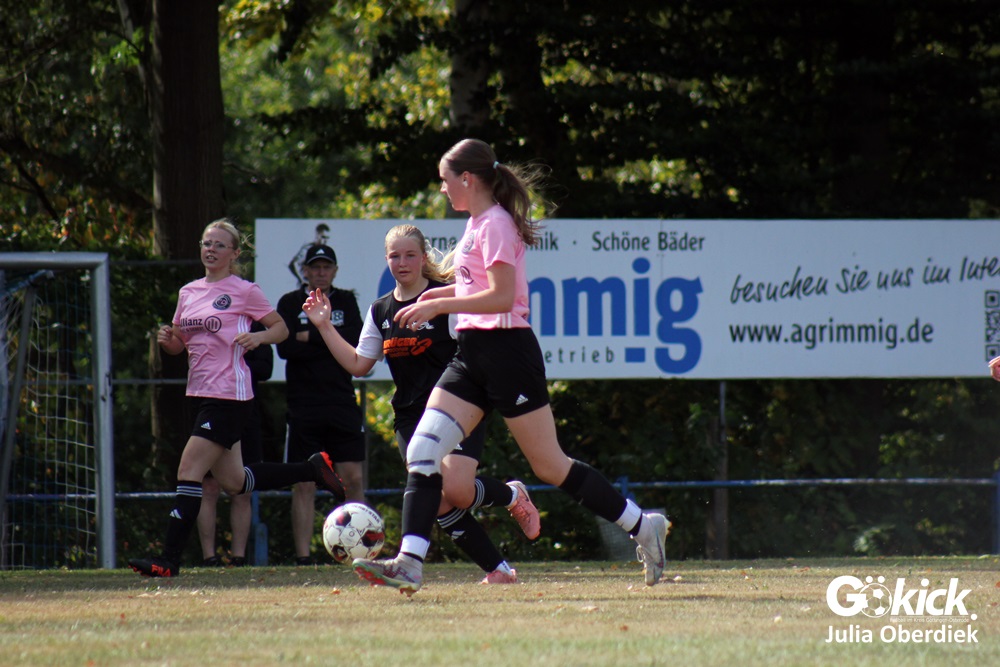 Die Partie begann mit einem Paukenschlag: Bereits in der ersten Minute erzielte Larissa Ahrend die Führung und eröffnete damit ein wahres Torfestival. Es folgten Treffer von Chantal Lutze (8.) und Nadine Schulz (29.), ehe erneut Ahrend (23.) sowie Zoe Breder (35.) die Führung auf 5:0 ausbauten. Kurz vor der Pause erhöhten Mia Sophie Weichhold (41.) und Ahrend mit ihrem dritten Treffer (45.) auf 7:0.