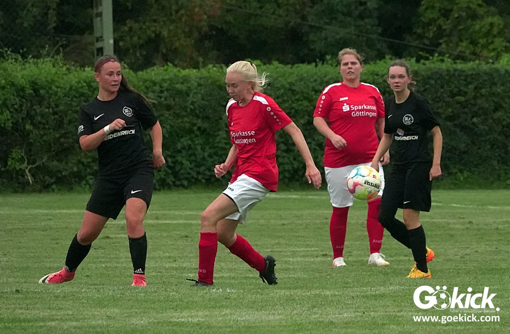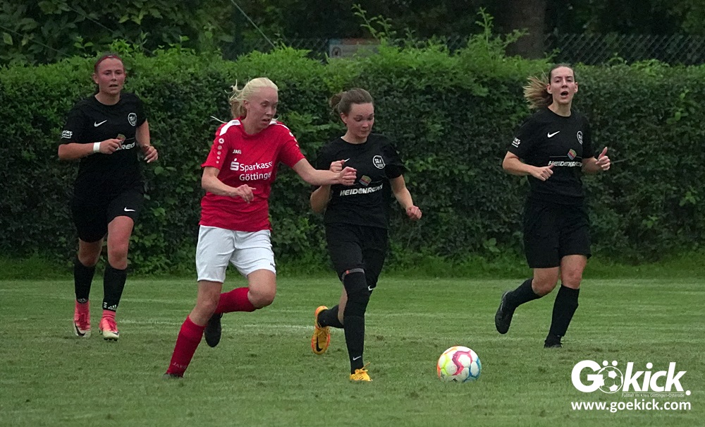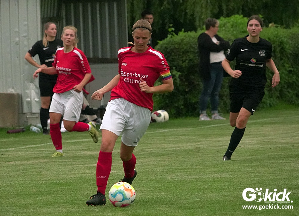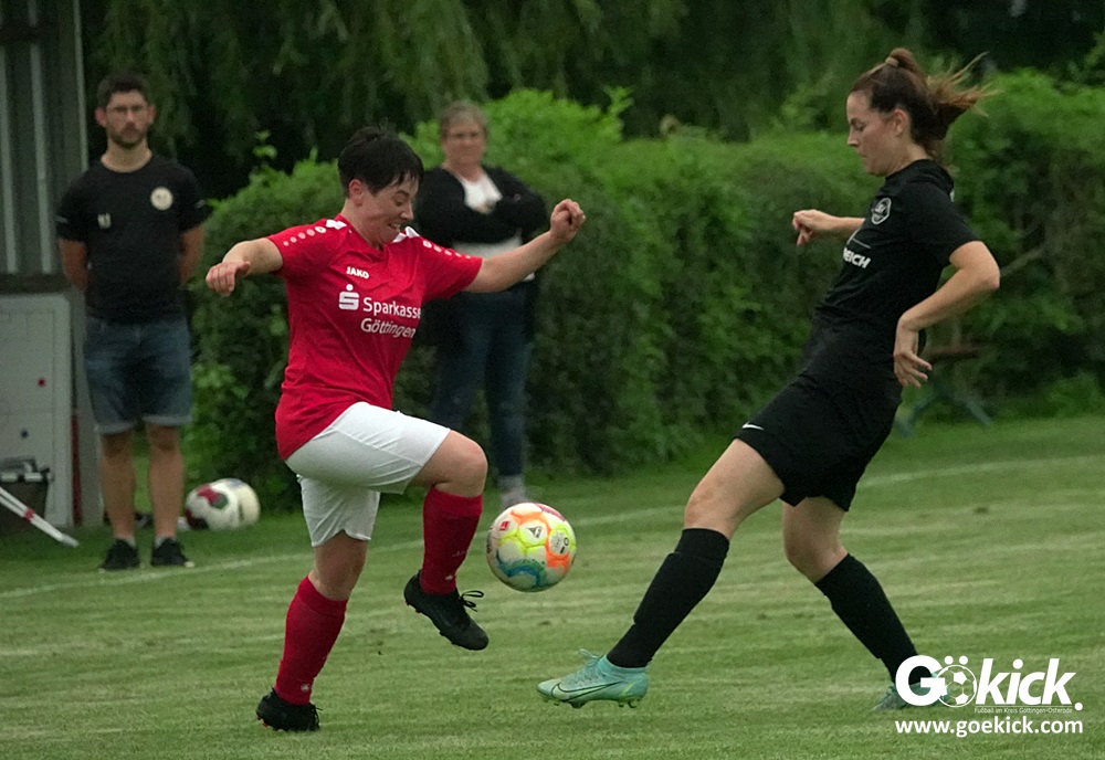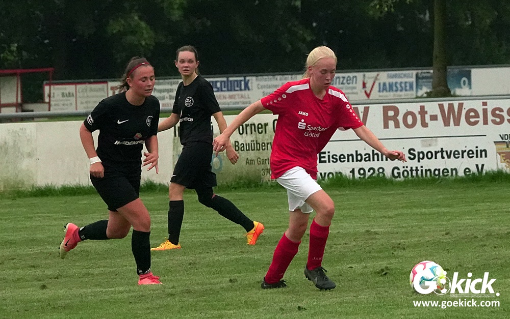 Der Frauen-Bezirksliga-Meister, die zweite Mannschaft des ESV Rot-Weiß Göttingen, hat bekanntlich auf sein Aufstiegsrecht verzichtet. Bevor das Team von Trainerin Annabelle Winkelmann am kommenden Dienstag, den 29. August, den FC Westharz zum Auftakt der Bezirksliga auf dem eigenen Sportplatz empfängt, absolvierte es einen abschließenden Test auf eigenem Platz gegen den Hessischen Kreisoberligisten SG Großalmerode/Hundelshausen. Und die Eisenbahnerinnen gewannen diese Generalprobe deutlich mit 8:1 (5:0) und tankten noch einmal ordentlich Selbstvertrauen.