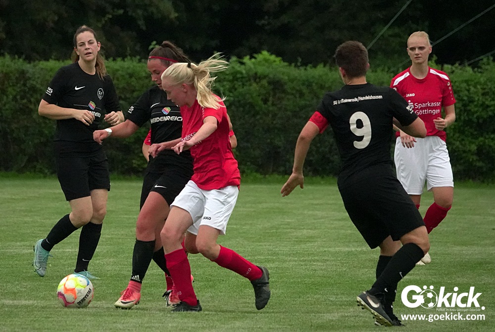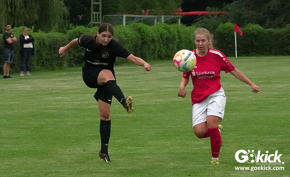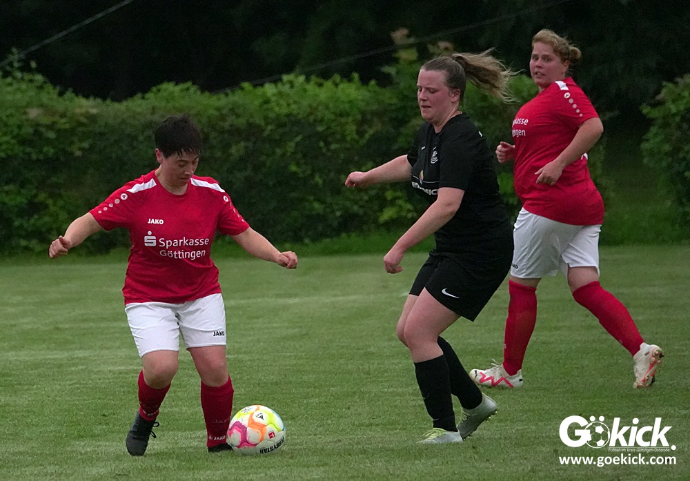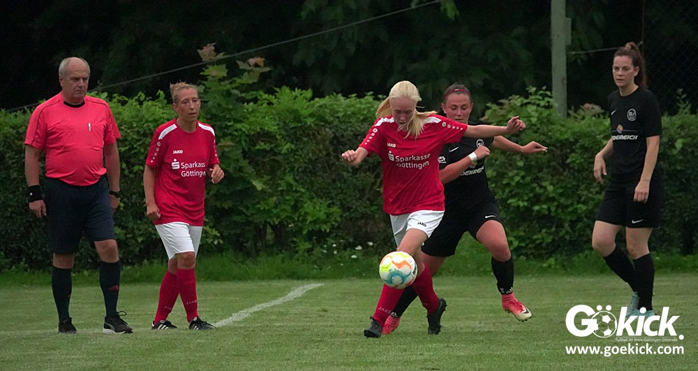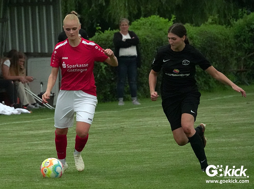 Der Frauen-Bezirksliga-Meister, die zweite Mannschaft des ESV Rot-Weiß Göttingen, hat bekanntlich auf sein Aufstiegsrecht verzichtet. Bevor das Team von Trainerin Annabelle Winkelmann am kommenden Dienstag, den 29. August, den FC Westharz zum Auftakt der Bezirksliga auf dem eigenen Sportplatz empfängt, absolvierte es einen abschließenden Test auf eigenem Platz gegen den Hessischen Kreisoberligisten SG Großalmerode/Hundelshausen. Und die Eisenbahnerinnen gewannen diese Generalprobe deutlich mit 8:1 (5:0) und tankten noch einmal ordentlich Selbstvertrauen.