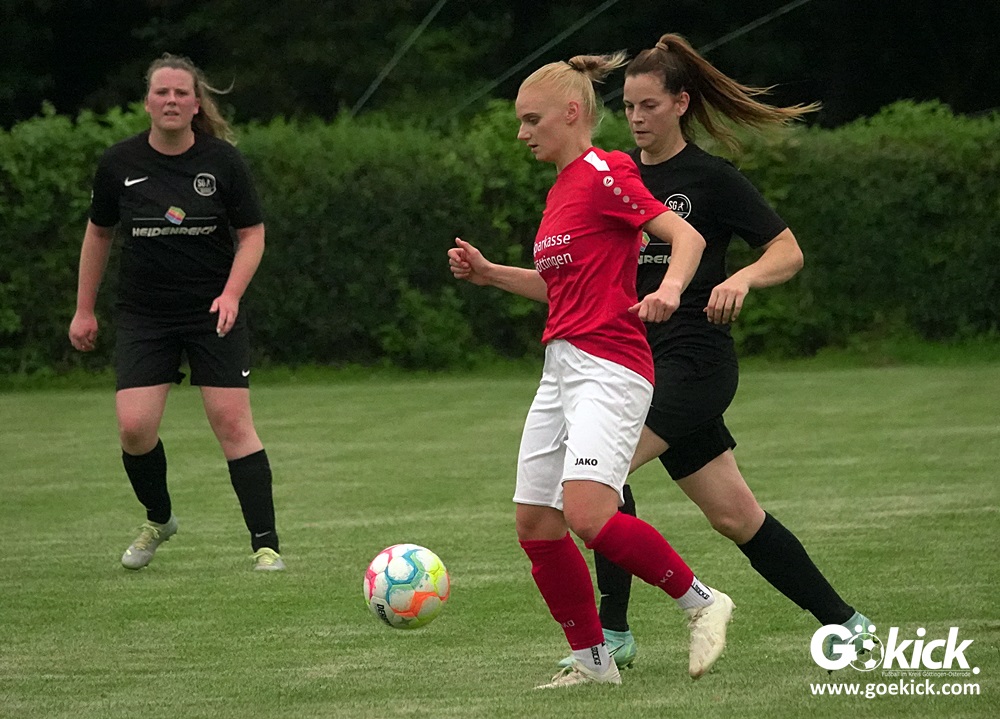 Die dynamische Jenny Schäfer traf bereits in der zweiten Spielminute zum 1:0 für die Gastgeberinnen. Dann kam die Zeit von Franziska Elges. Die Stürmerin, die gelegentlich auch im Oberliga-Team eingesetzt wird, erzielte in den Minuten 5, 22 und 35 einen lupenreinen Hattrick für die Eisenbahnerinnen-Reserve. Kurz vor dem Seitenwechsel erhöhte Michelle Michel auf 5:0. Damit ging es in die Halbzeitpause.