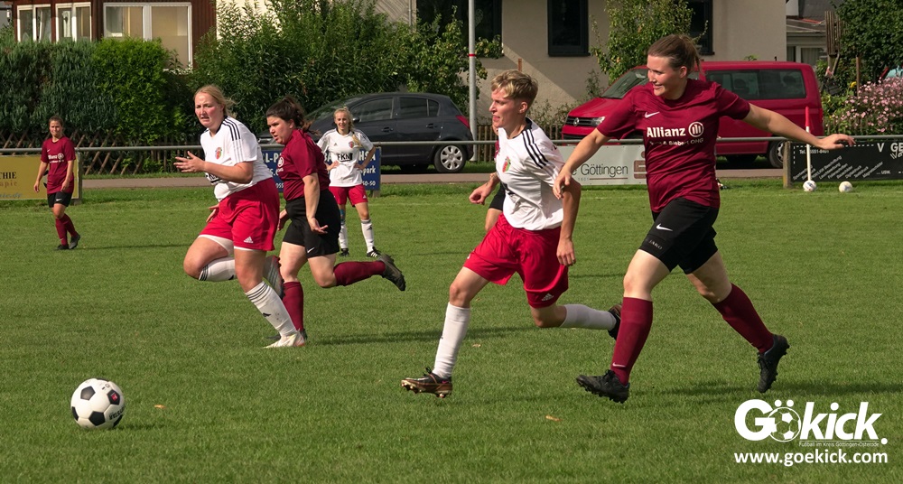 Dreimal hintereinander war das Frauen-Team des FC Gleichen Staffelsieger der Kleinfeld-Liga. In diesem Jahr wagte sich die Mannschaft vom Trainerteam Kevin Krüger und Karsten Otte auf das Großfeld. Zum Auftakt gegen den TSV Nesselröden auf dem eigenen Sportplatz unterlag das Team mit 1:2. Besser lief es dann in der zweiten Partie am vergangenen Samstag auf dem heimischen Sportplatz in Diemarden. Dort gab es im Vergleich mit der SG Puma/Sparta beim 1:1 den ersten Zähler der noch jungen Saison.