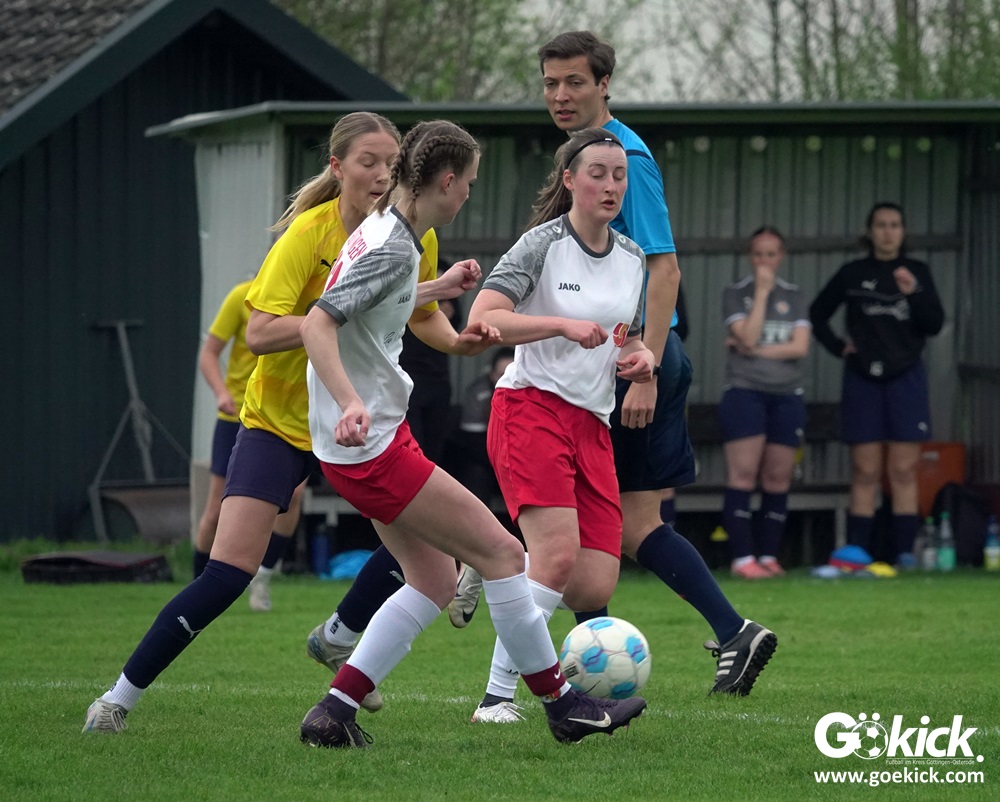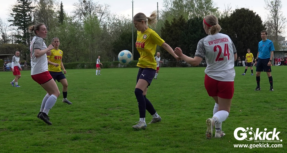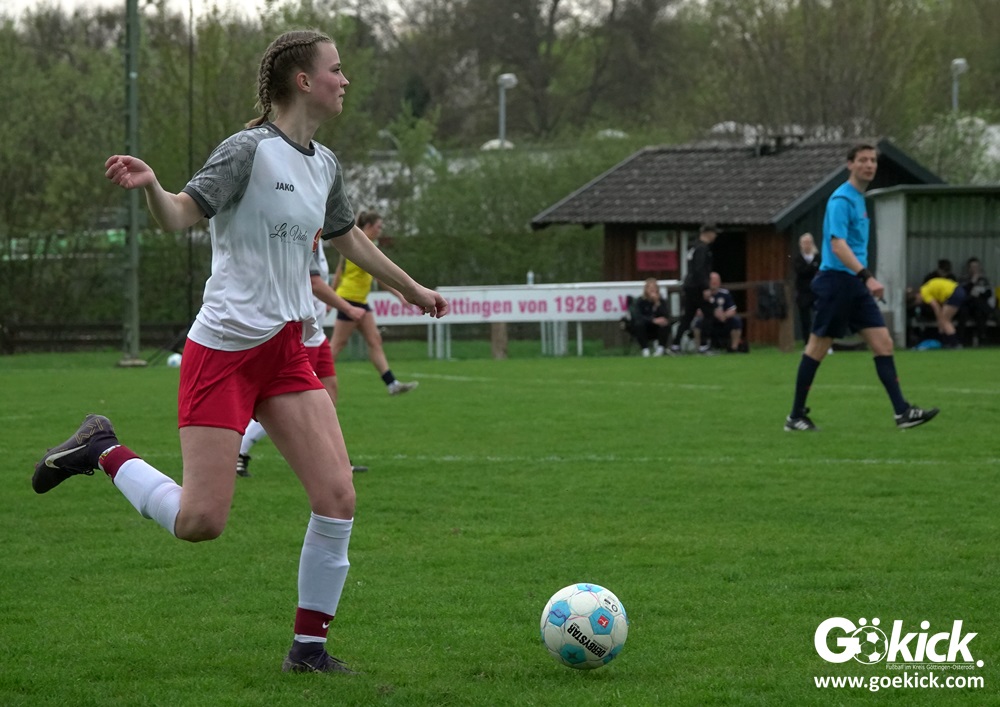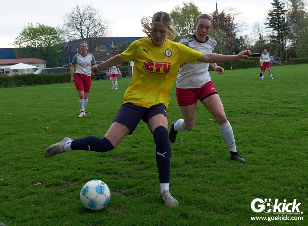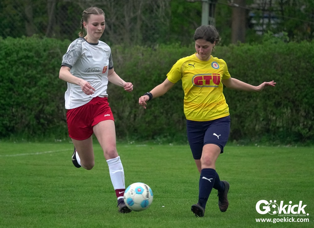 Die Partie begann mit einem Paukenschlag: Bereits in der 2. Minute traf Franziska Elges zur frühen Führung für den ESV Rot-Weiß Göttingen. Die Gastgeberinnen blieben am Drücker und erhöhten in der 11. Minute durch Lucienne Johanning auf 2:0. Die Begegnung, ausgetragen auf dem Eisenbahner Sportplatz in Göttingens Grätzelstraße, nahm damit früh eine klare Richtung.