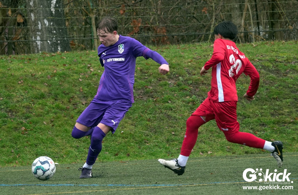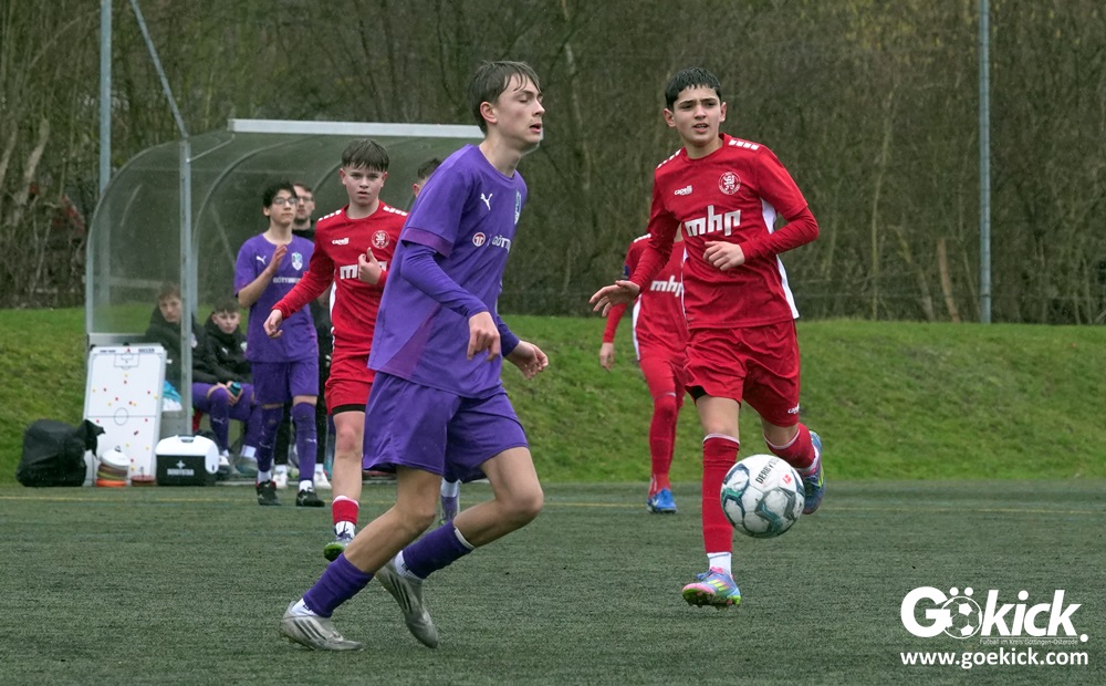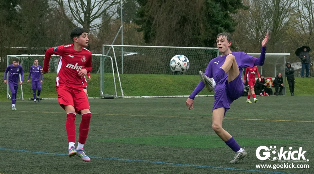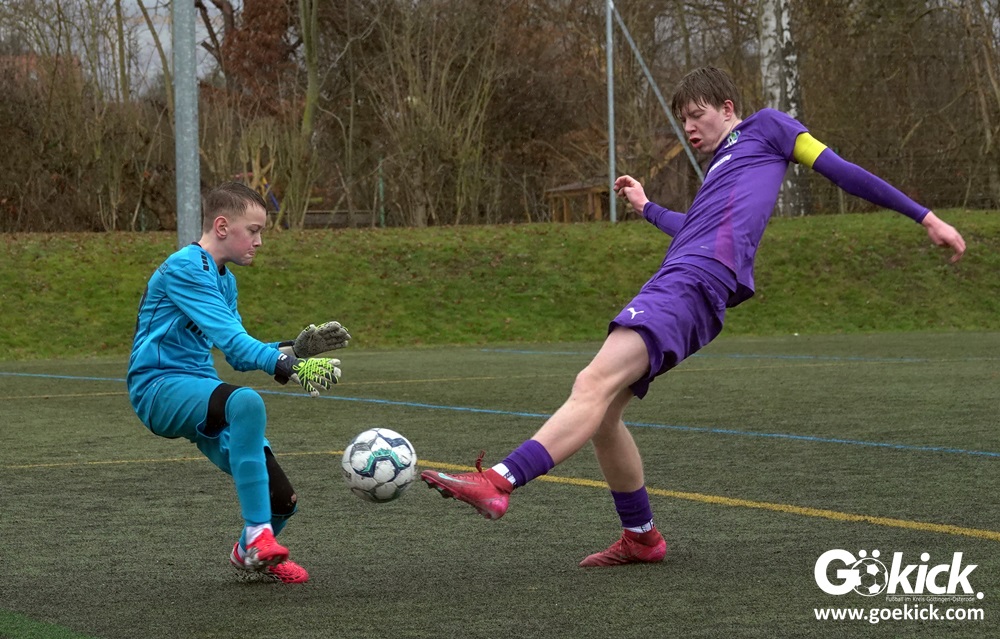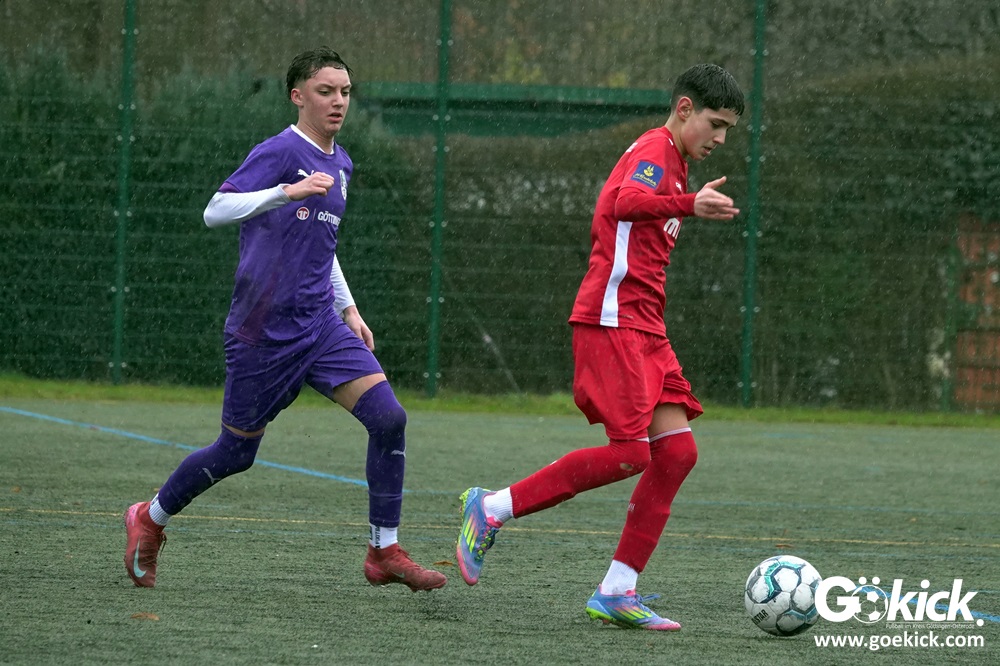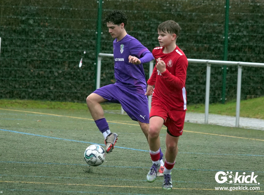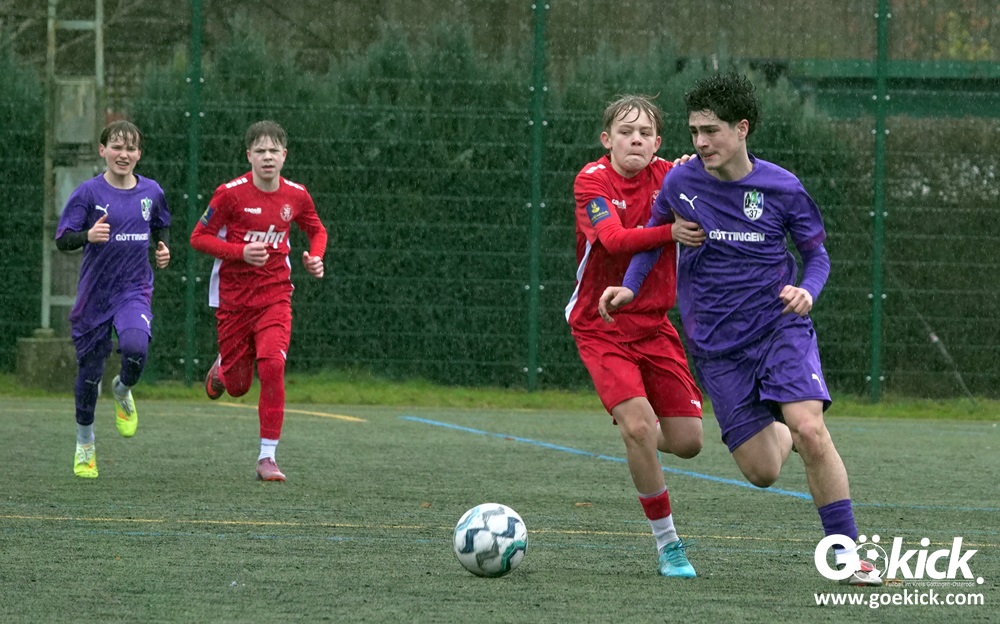 Von Beginn an trat der JFV 37 Göttingen U15 zielstrebig auf. In der 15. Minute brachte Johann Griese seine Mannschaft mit 1:0 in Führung. Nur sechs Minuten später erhöhte Kapitän Tomke Johannes Lein auf 2:0 (21.). Der Gastgeber nutzte seine Spielanteile konsequent: Johann Griese traf in der 23. Minute erneut und stellte auf 3:0.
