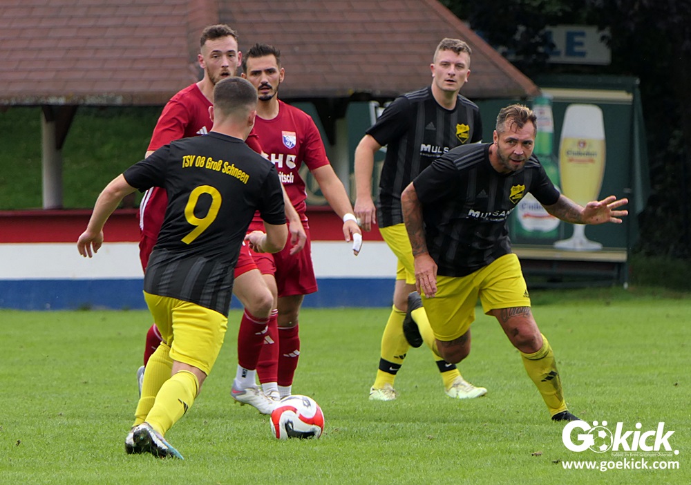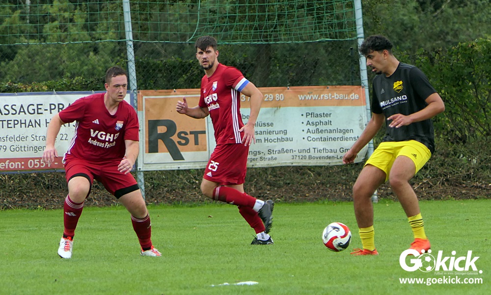 Der Gast aus Groß Schneen von Trainer Yusuf Beyazit ging nach 14 Minuten durch Lino Häger in Führung. Nach 27 Minuten musste Bent Zensen den Platz verlassen. Für ihn kam Vedat Kaplan, der dem Spiel später noch seinen Stempel aufdrücken sollte. Dass der Gast zum Pausenpfiff durch Schiedsrichter Dominik Ude noch mit 1:0 führte, lag am TSV-Schlussmann Paul Mikolajek, der die Offensiv-Abteilung der Hausherren mit seinen Paraden zur Verzweiflung brachte.