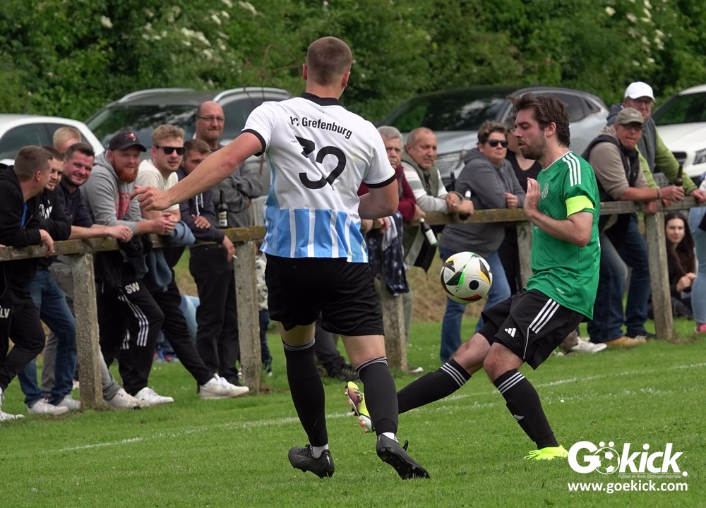 Nach dem Seitenwechsel blieb die Partie ausgeglichen mit leichten Vorteilen für den Gastgeber. Sieben Minuten nach dem Wiederanpfiff von Schiedsrichter Anthony Henne brauchte Matthes Giering den Ball aus sieben Metern nur noch über die Linie zum 2:0 zu drücken. Damit war die Partie entschieden, denn der Gast konnte, trotz fleißigem Bemühens, keine weitere Torgefahr heraufbeschwören. Am Ende feierte der FC Grefenburg seinen vierten Saisonsieg, der Gast vom Lohberg muss auf das letzte Saisonspiel hoffen, den zweiten Sieg der Spielzeit einfahren zu können.